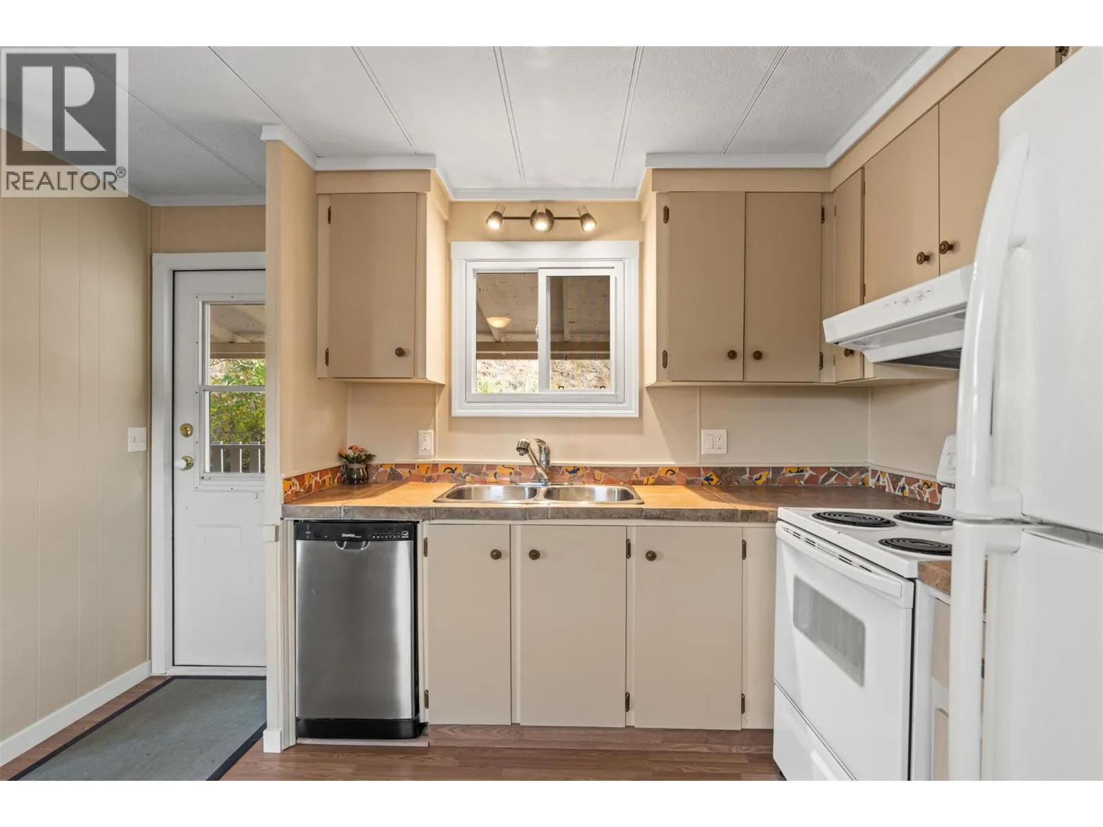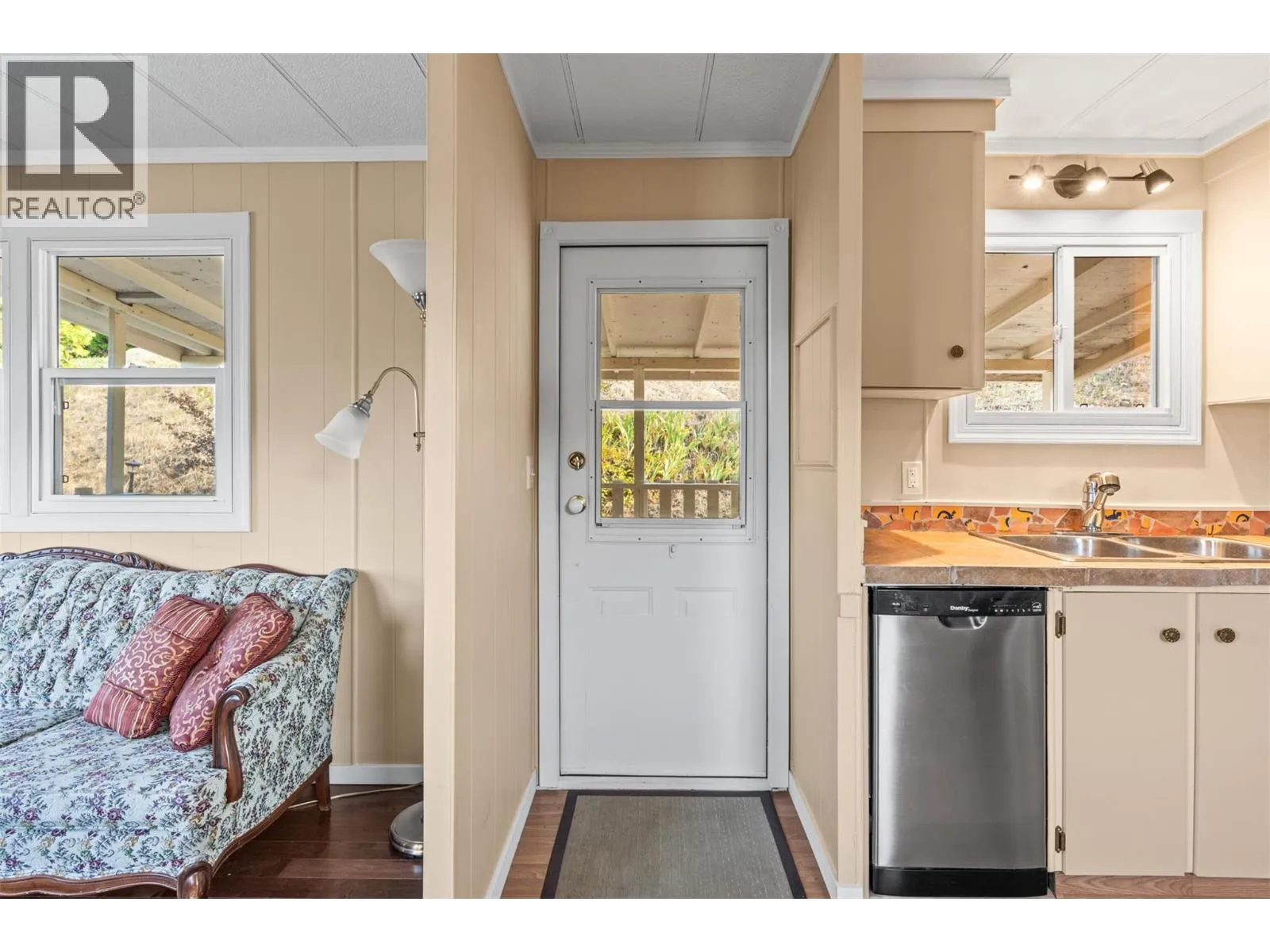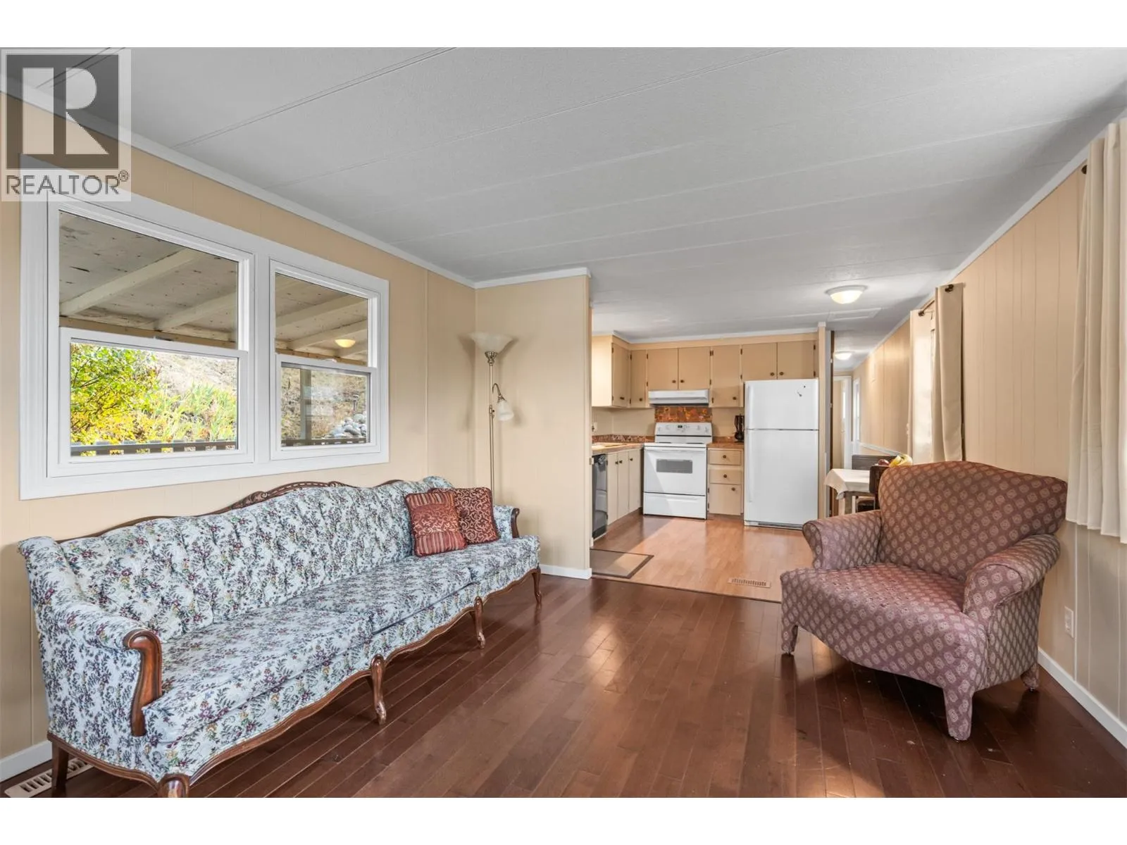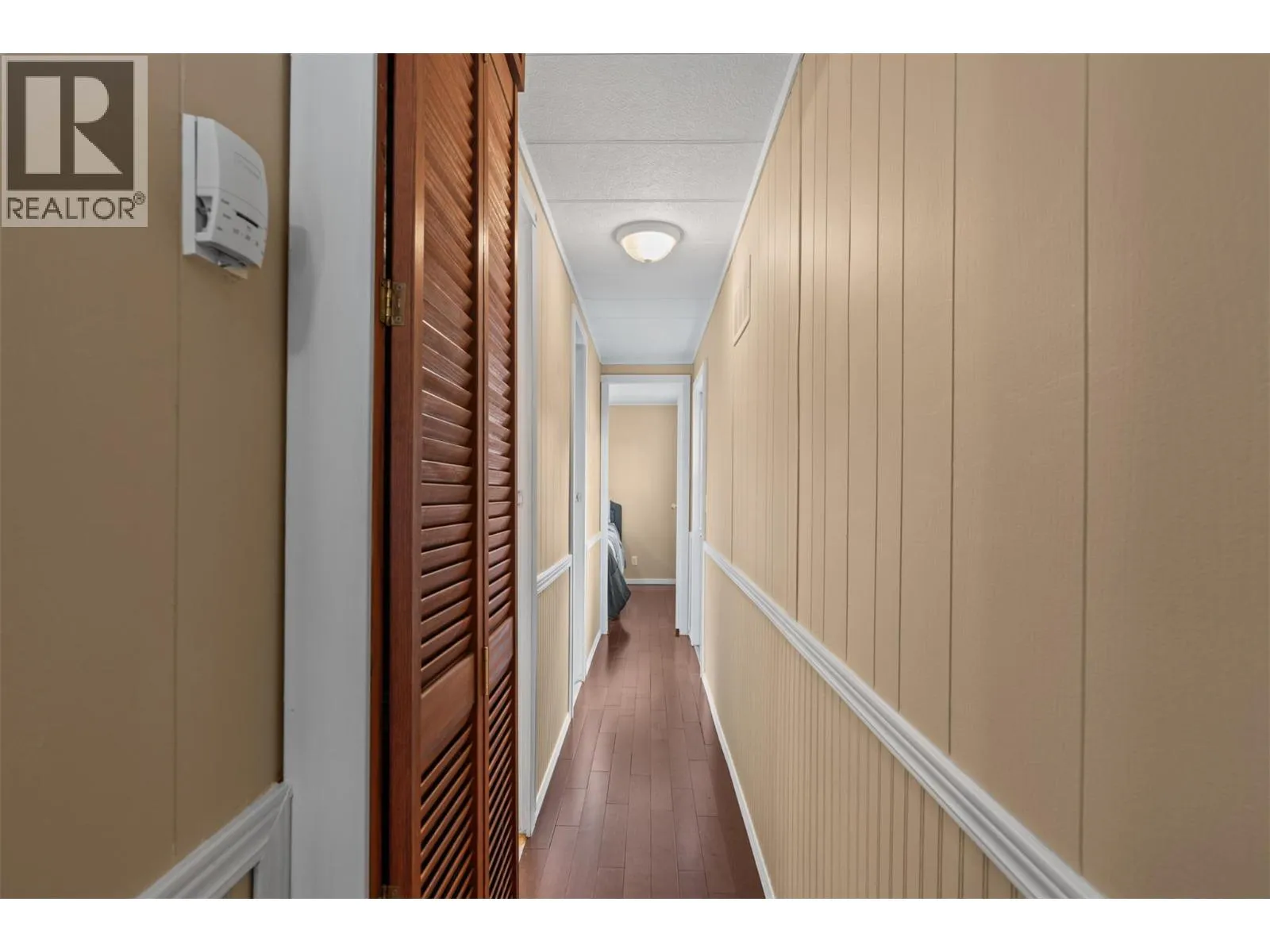 Welcome home to Unit #92 in Lakeway Mobile Home Park! Perfectly situated in a prime location, this home offers convenience and comfort in a well-maintained park. This home is in the 55+ Section. Public transit is right at the park entrance, and youâre just a short walk from Kal Beach, the Rail Trail, Middleton Mountain hiking trails, shopping, and dining â everything you need is close by! This bright and inviting 2-bedroom, 1-bathroom home has been lovingly cared for with updates including fresh paint and newer windows. The open-concept kitchen and living area create a warm, welcoming space filled with natural light. Stay cool all summer long with central air conditioning. Step outside to enjoy the spacious, covered deck â perfect for relaxing or entertaining. The side yard offers added privacy with no neighbor on one side, and two garden sheds provide plenty of extra storage for your tools and outdoor gear. Pets are welcome with park approval. Donât miss this affordable opportunity to enjoy the Okanagan lifestyle in a peaceful, well-kept community! (id:27476)