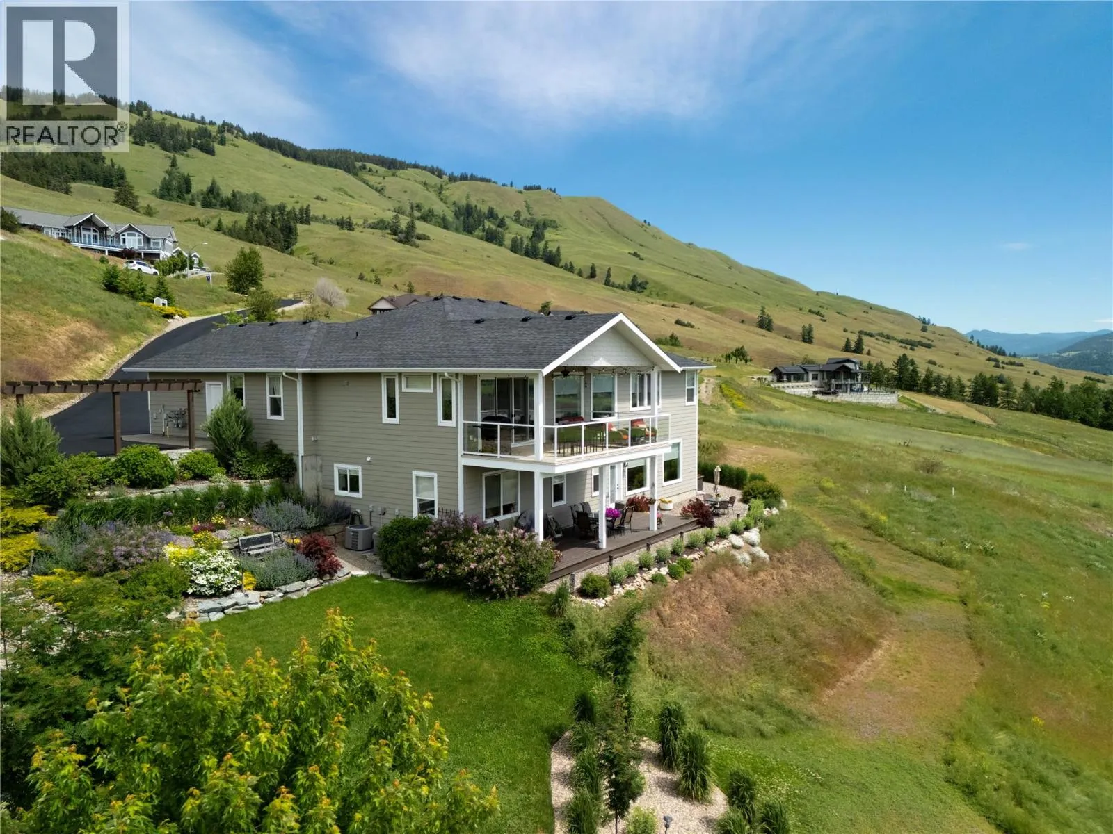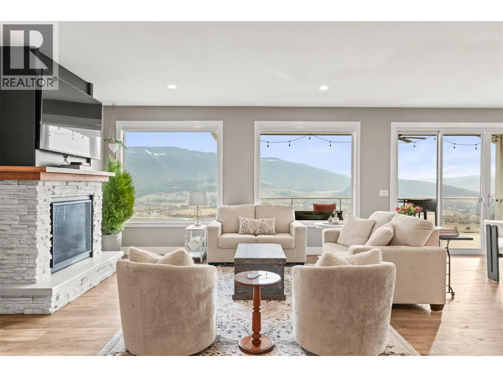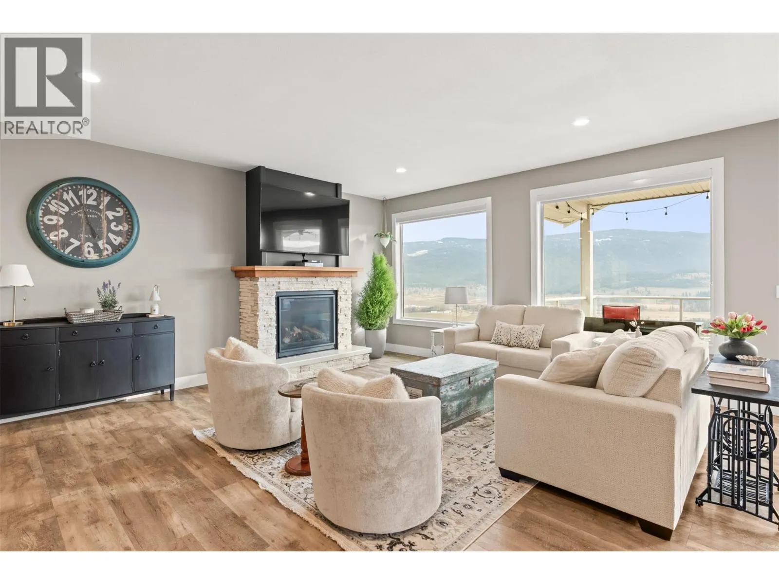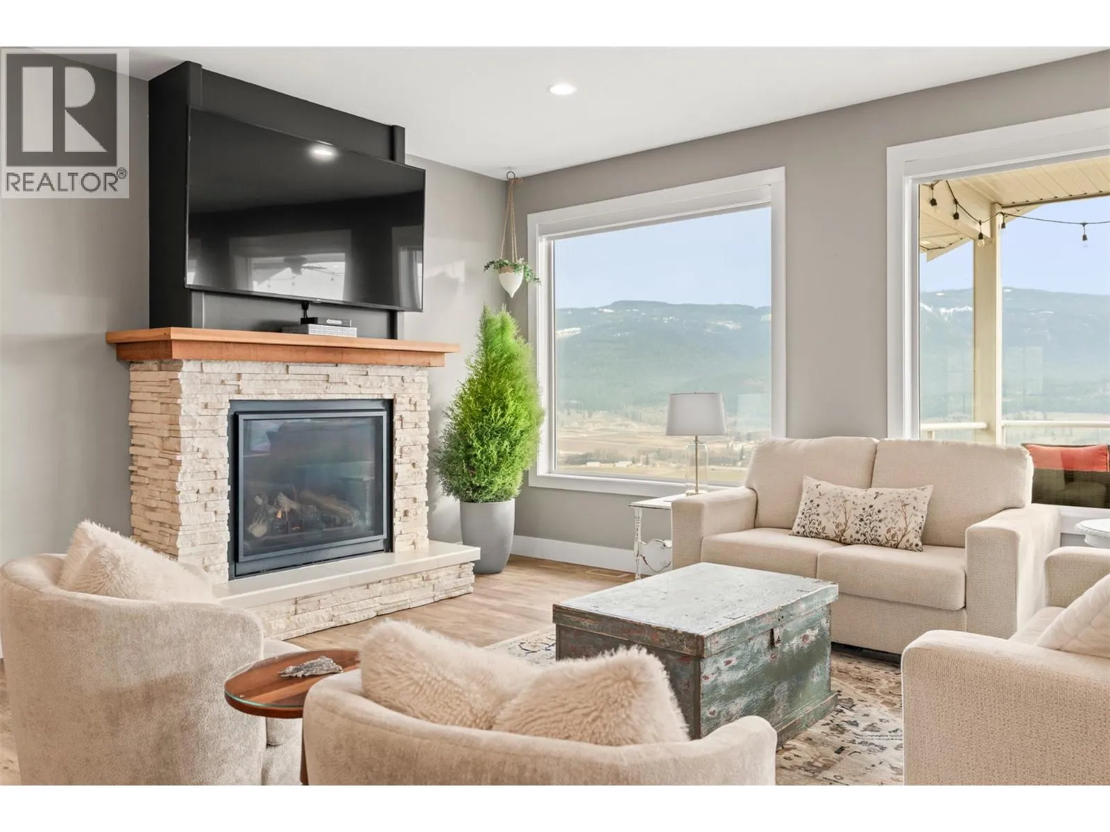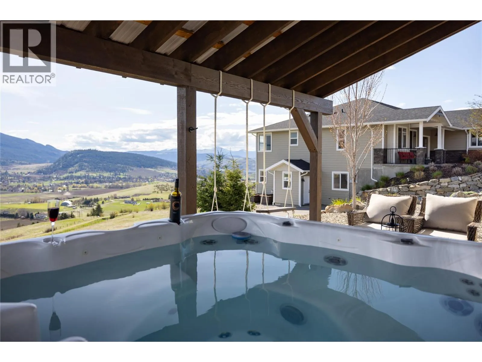 Stunning Coldstream Estate with Panoramic Views & Prime Location Situated on 5 pristine acres, this remarkable estate offers sweeping views of Kalamalka Lake and Park. Step inside to a bright, open-concept layout where the family room, dining area, and kitchen flow effortlesslyâideal for everyday living and entertaining. The living room is a showstopper, with floor-to-ceiling windows that frame the lake and park, flooding the space with natural light. The chefâs kitchen boasts a large island, quartz countertops, newer appliances, and a stylish backsplash. The primary bedroom is a luxurious retreat with stunning views, a spacious walk-in closet, and a spa-like 5-piece ensuite. Enjoy movie nights in the theatre room or stay fit in your private home gym. Outdoor living includes covered patios on both levels, a hot tub, fire pit, and space to entertain or unwind. The level-entry 2+1 bedroom legal suite offers separate living with its own furnace, hot water tank, AC, and utility metersâideal for extended family or rental income. A 24â x 32â shop with 14-foot ceilings adds function and flexibility, and the freshly seal-coated driveway enhances both curb appeal and durability. Just minutes from Kalamalka Park, with scenic trails and forested paths for hiking and running. The Grey Canal Trail borders the property, offering direct access to nature. With stunning surroundings and modern comforts, this isnât just a homeâitâs a lifestyle. (id:27476)