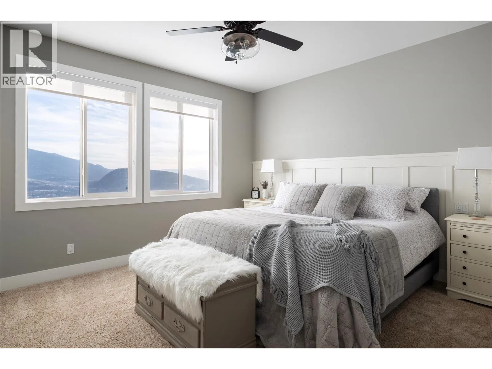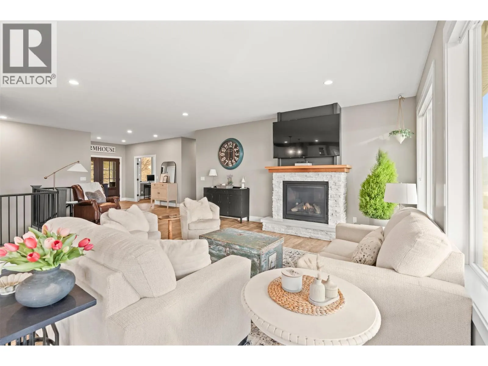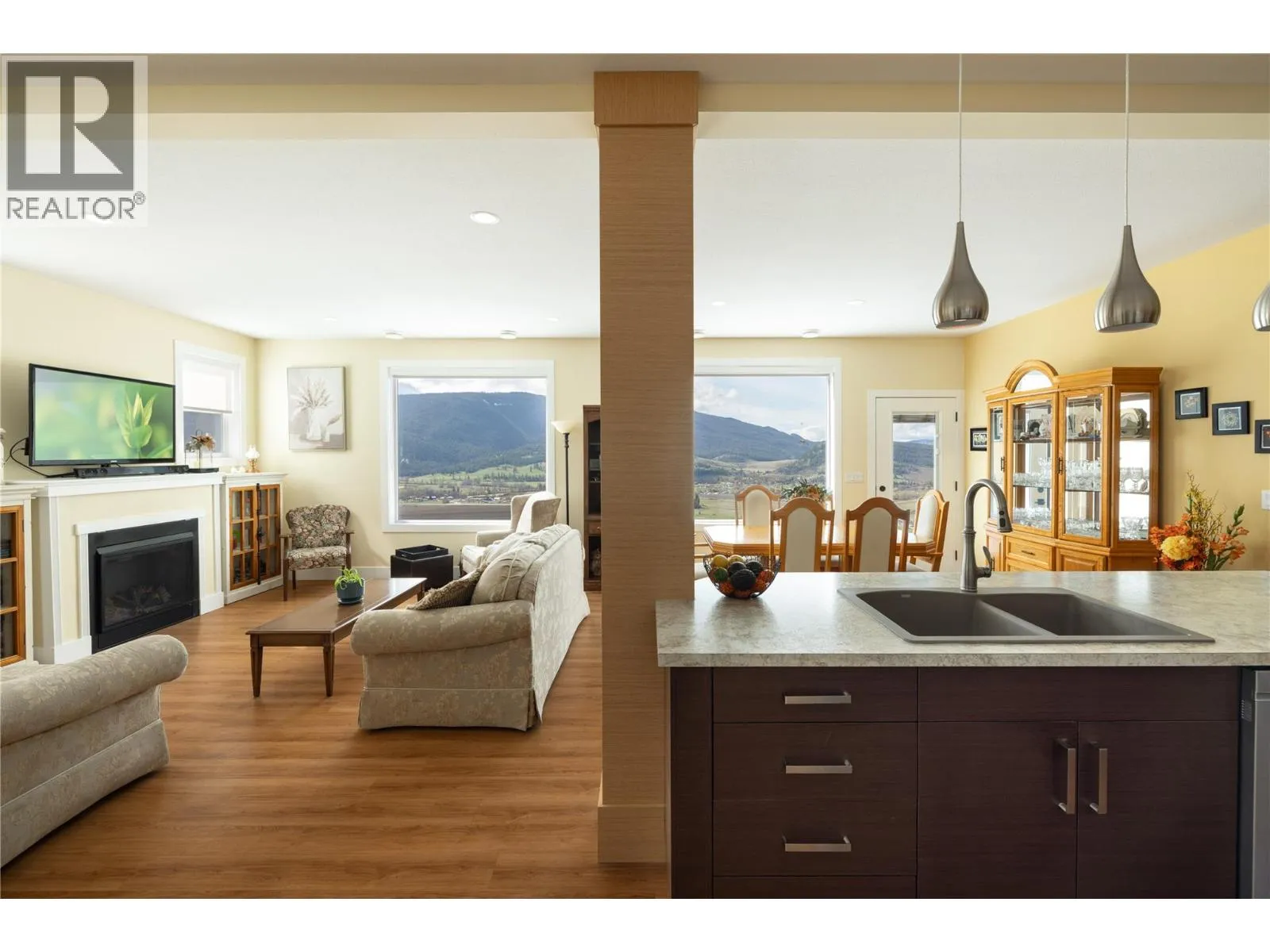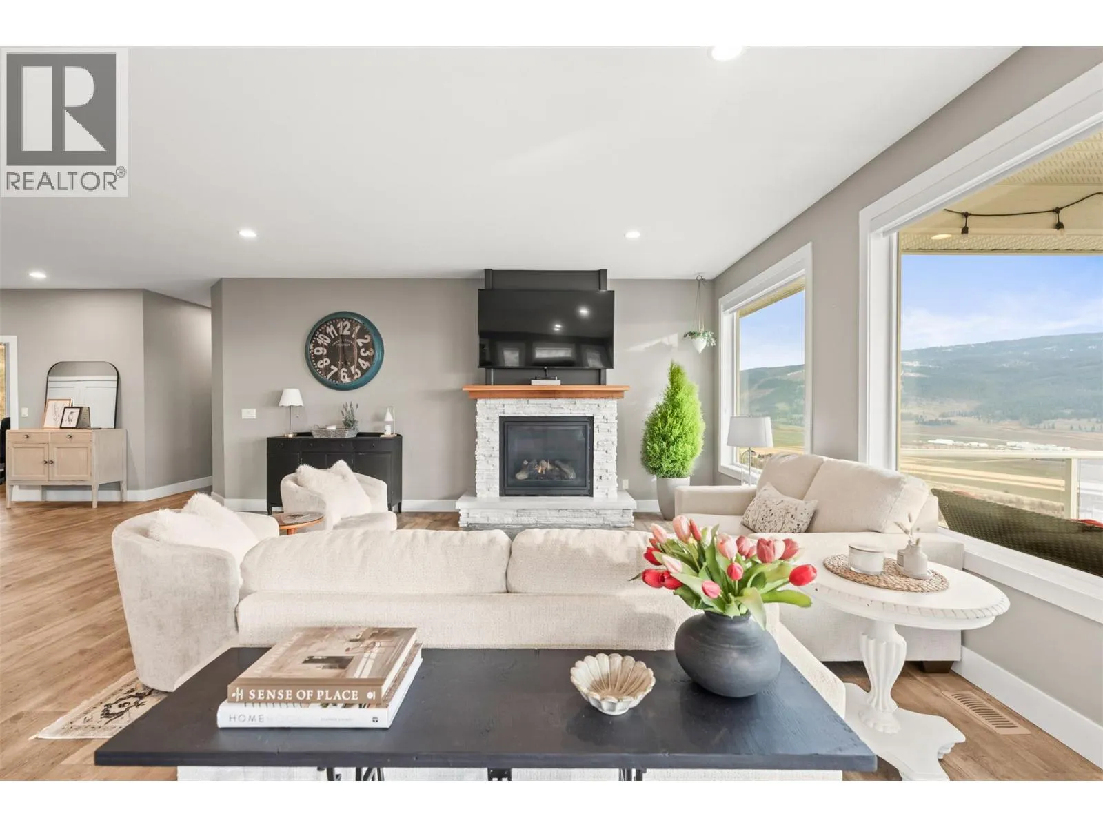 Stunning Coldstream Estate with Panoramic Views & Prime Location Situated on 5 pristine acres, this remarkable estate offers sweeping views of Kalamalka Lake and Park. Step inside to a bright, open-concept layout where the family room, dining area, and kitchen flow effortlesslyâideal for everyday living and entertaining. The living room is a showstopper, with floor-to-ceiling windows that frame the lake and park, flooding the space with natural light. The chefâs kitchen boasts a large island, quartz countertops, newer appliances, and a stylish backsplash. The primary bedroom is a luxurious retreat with stunning views, a spacious walk-in closet, and a spa-like 5-piece ensuite. Enjoy movie nights in the theatre room or stay fit in your private home gym. Outdoor living includes covered patios on both levels, a hot tub, fire pit, and space to entertain or unwind. The level-entry 2+1 bedroom legal suite offers separate living with its own furnace, hot water tank, AC, and utility metersâideal for extended family or rental income. A 24â x 32â shop with 14-foot ceilings adds function and flexibility, and the freshly seal-coated driveway enhances both curb appeal and durability. Just minutes from Kalamalka Park, with scenic trails and forested paths for hiking and running. The Grey Canal Trail borders the property, offering direct access to nature. With stunning surroundings and modern comforts, this isnât just a homeâitâs a lifestyle. (id:27476)