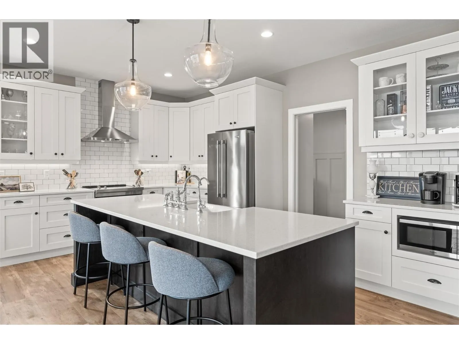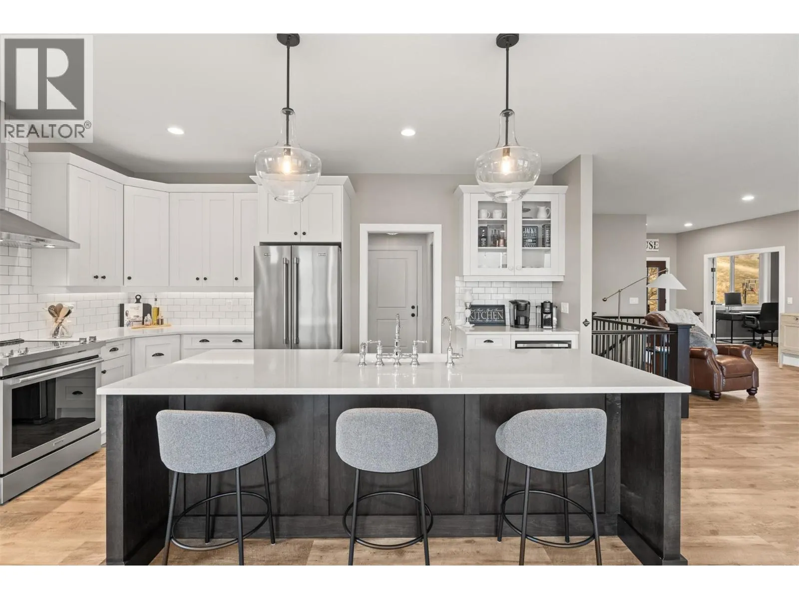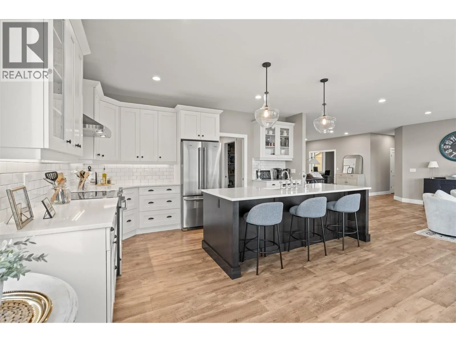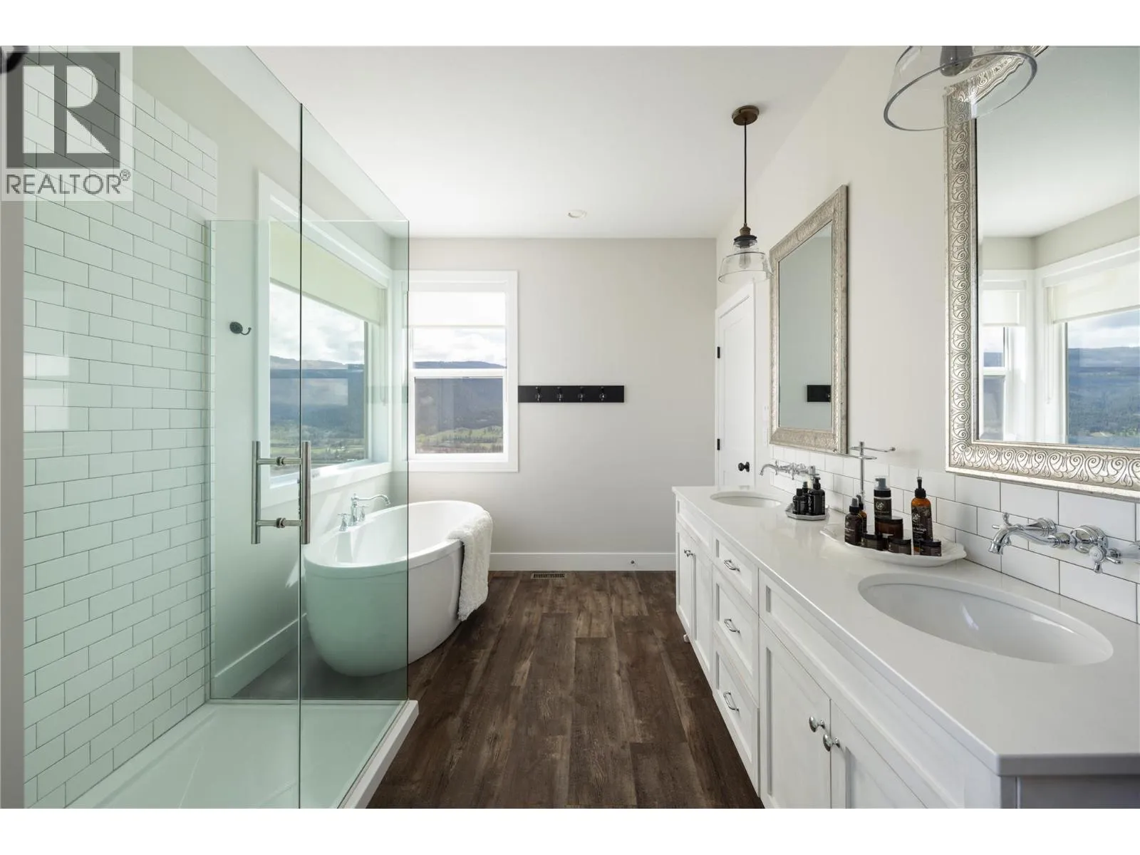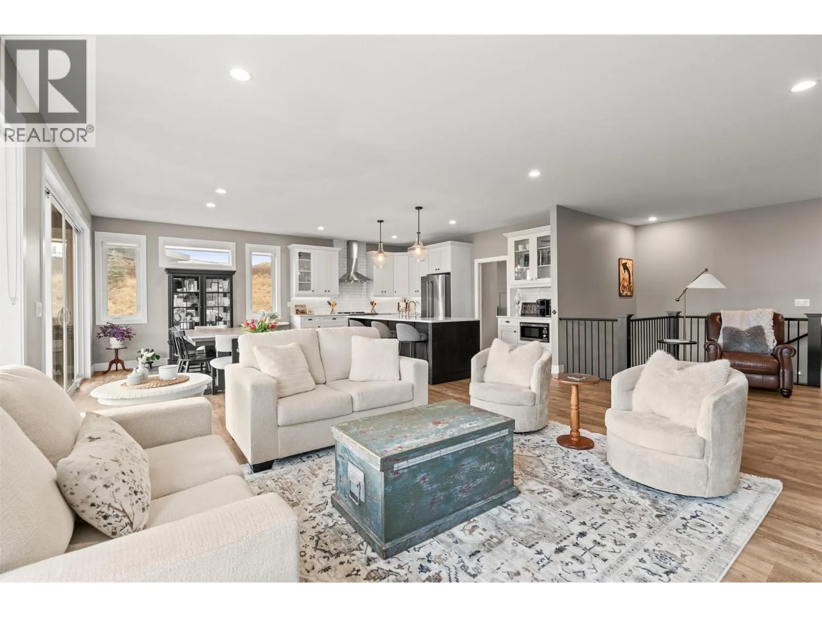 Stunning Coldstream Estate with Panoramic Views & Prime Location Situated on 5 pristine acres, this remarkable estate offers sweeping views of Kalamalka Lake and Park. Step inside to a bright, open-concept layout where the family room, dining area, and kitchen flow effortlesslyâideal for everyday living and entertaining. The living room is a showstopper, with floor-to-ceiling windows that frame the lake and park, flooding the space with natural light. The chefâs kitchen boasts a large island, quartz countertops, newer appliances, and a stylish backsplash. The primary bedroom is a luxurious retreat with stunning views, a spacious walk-in closet, and a spa-like 5-piece ensuite. Enjoy movie nights in the theatre room or stay fit in your private home gym. Outdoor living includes covered patios on both levels, a hot tub, fire pit, and space to entertain or unwind. The level-entry 2+1 bedroom legal suite offers separate living with its own furnace, hot water tank, AC, and utility metersâideal for extended family or rental income. A 24â x 32â shop with 14-foot ceilings adds function and flexibility, and the freshly seal-coated driveway enhances both curb appeal and durability. Just minutes from Kalamalka Park, with scenic trails and forested paths for hiking and running. The Grey Canal Trail borders the property, offering direct access to nature. With stunning surroundings and modern comforts, this isnât just a homeâitâs a lifestyle. (id:27476)