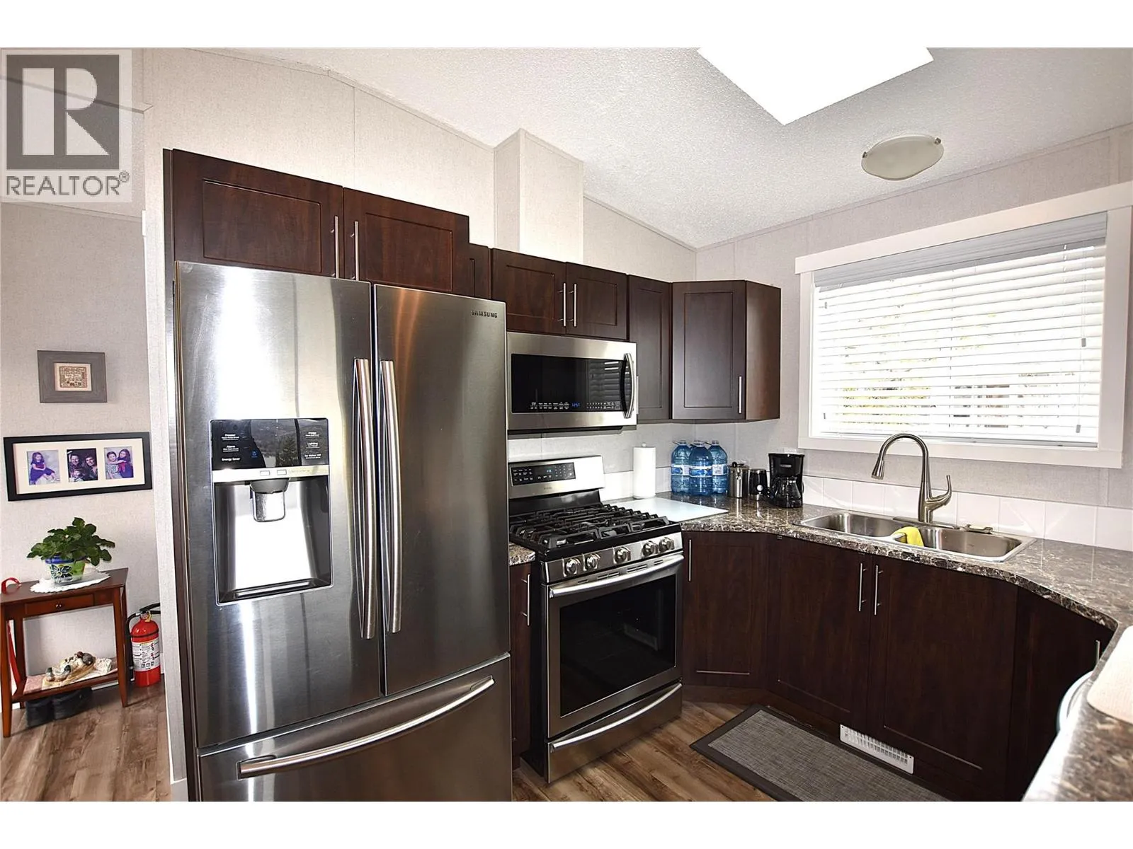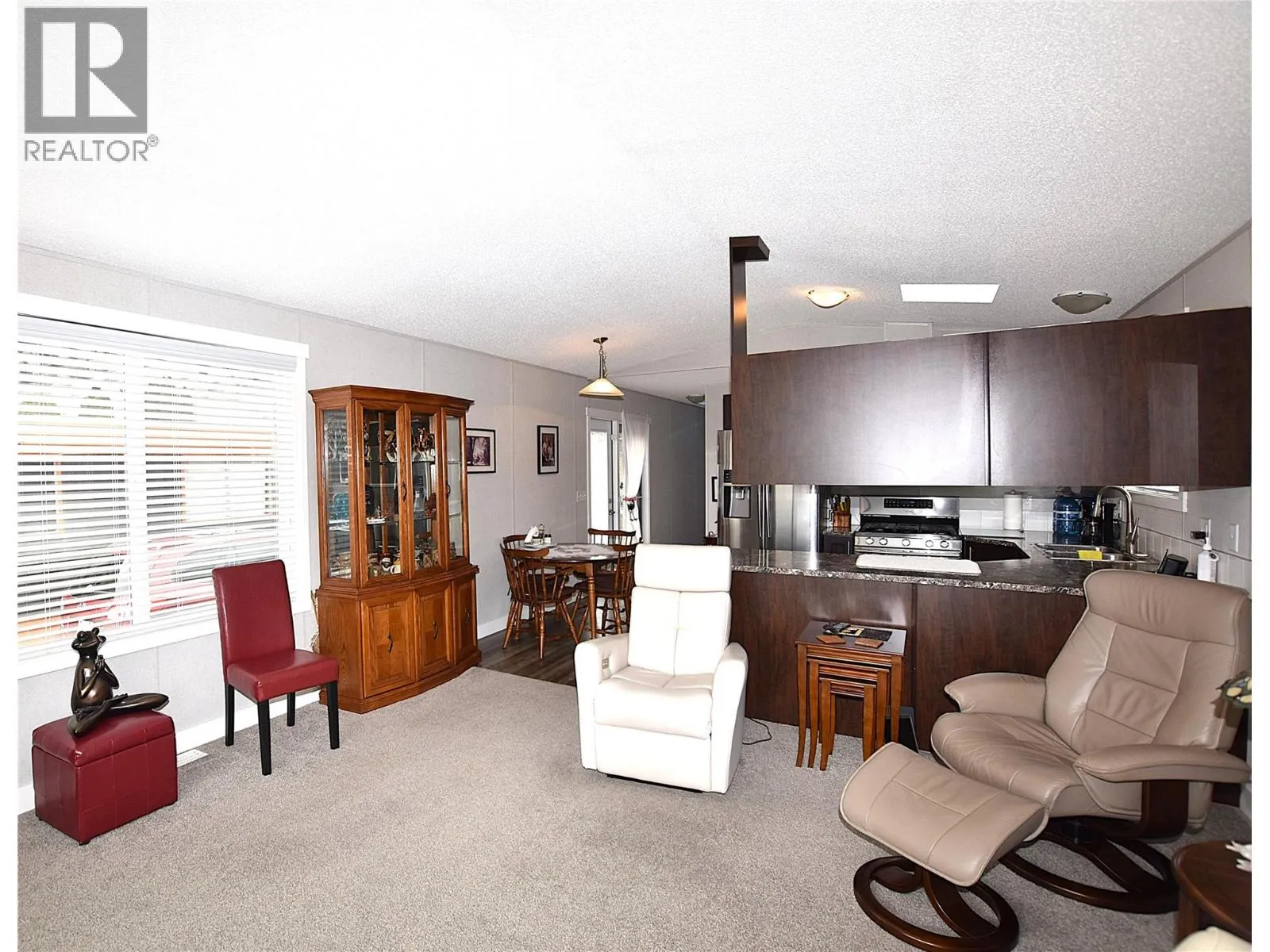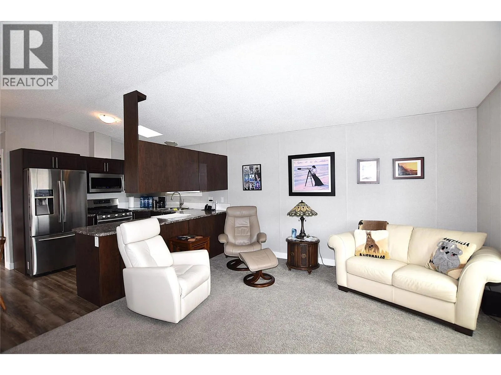 Welcome to Unit 23 in Kalview Mobile Home Park. This immaculate 9-year-old, 3-bedroom, 2-bathroom home offers comfortable living with a beautiful lake view. The bright open-concept main living area features vaulted ceilings ;and a large picture window perfectly positioned to capture the lake view. The fabulous kitchen is well appointed with stainless steel appliances, a gas range, and a skylight that fills the space with natural light. The spacious primary bedroom includes a generously sized walk-in closet and a full 4-piece ensuite with a relaxing jetted tub. Additional features include central air conditioning and a convenient storage shed. Located in a family-friendly park, this home is a fantastic opportunity for first-time buyers. Indoor caged pets permitted. No dogs, no cats, and no rentals allowed. Enjoy peaceful living just minutes from town. (id:27476)