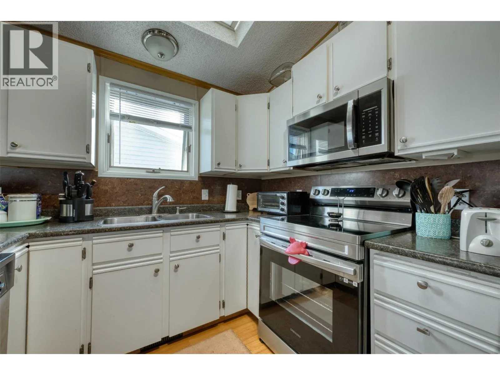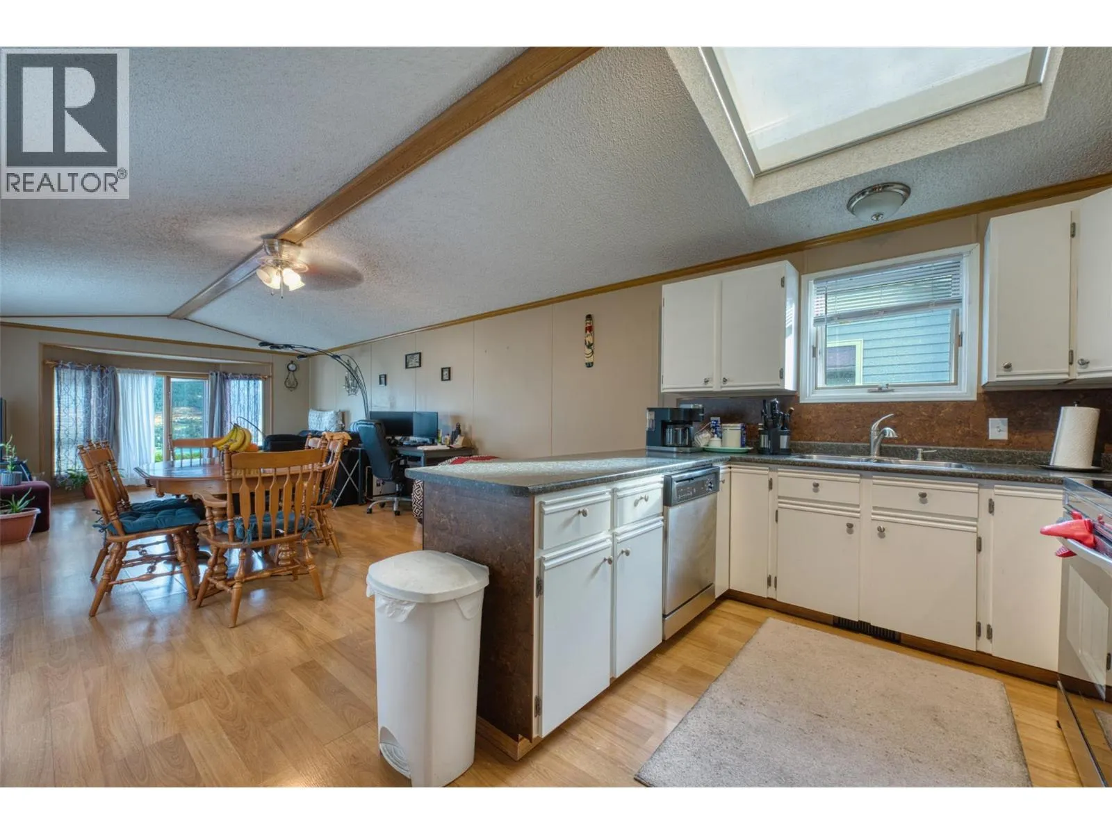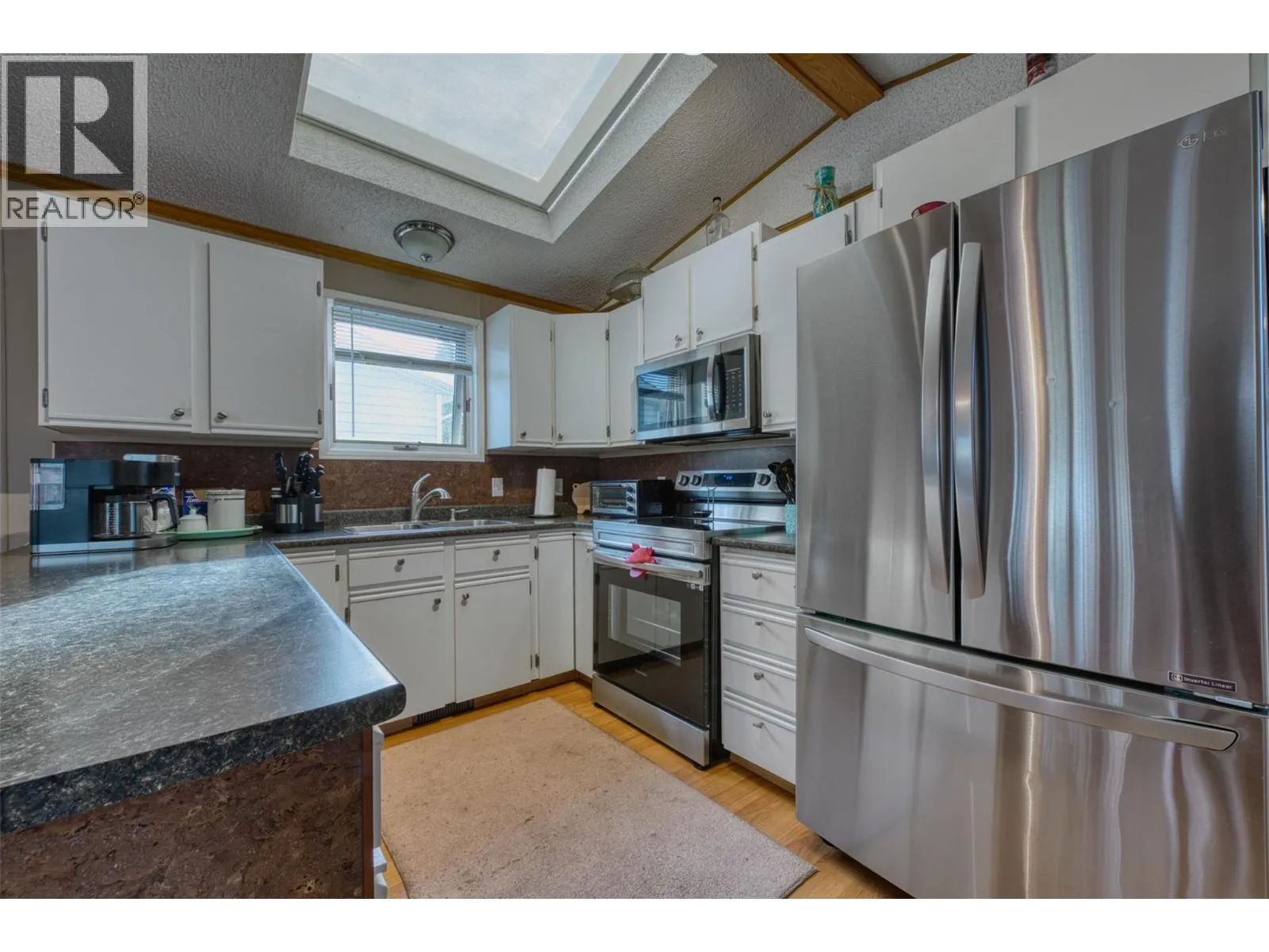 Discover this beautiful 2 bedroom, 2 bathroom home in Kalview MHP, a park with no age restrictions, perfectly situated to offer an amazing view of Kalamalka Lake. The home features an open-concept kitchen with stainless steel appliances, ideal for entertaining. Recently upgraded, the home also features a luxurious new master ensuite, complete with a stylish double-sink vanity and a relaxing, large soaker tub. The property is ideal for those who need extra space for hobbies and vehicles. You'll find tons of parking, with room for multiple cars or even your RV. Plus, there is a large detached 12'x21' workshop ready for any project. This is a fantastic opportunity to enjoy comfortable living with a stunning lake backdrop! (id:27476)