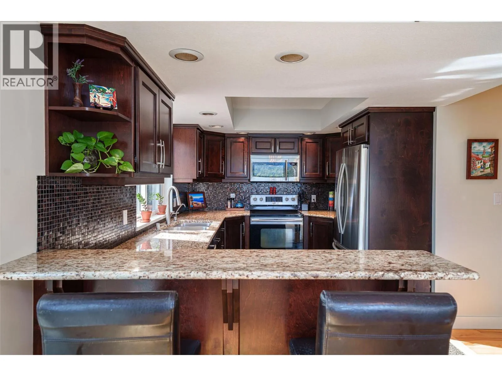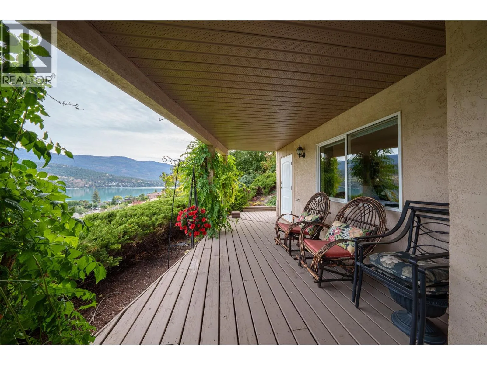 This stunning Coldstream home offers absolutely breathtaking, unobstructed views of Kalamalka Lake & the Monashee Mountains. Enjoy the best lake views in the neighborhood from nearly every room in the house. Step outside to take in the scenery from the expansive sundeck or through the homeâs large windows. Because the property faces east, you'll be shaded from the intense summer heat by late afternoon. Ideally located just steps from Kal Beach, Okanagan College & the Rail Trail, this 3-bedroom, 3-bathroom home has been completely updated with high-end finishes throughout, including a 1-bedroom suite on the lower level. Inside, you'll find gleaming hardwood floors extending through the open-concept living area, complemented by vaulted ceilings, high end remote window coverings & a beautifully updated kitchen with granite countertops, butler pantry & stainless steel appliances. The spacious primary bedroom boasts a luxurious ensuite with marble tile, a separate tile shower & tub, & heated floors. The suite features a private patio, gas fireplace & tons of natural light it could easily be converted into a bachelor or used to add another bedroom. Outside, the home features a large driveway with 27 ft RV parking & a large double garage. The yard is neatly landscaped with drip line irrigation & is low maintenance. Additionally, there is a unique covered breezeway ideal for outdoor entertaining & an additional covered storage room under the garage. This is a must see home! (id:27476)