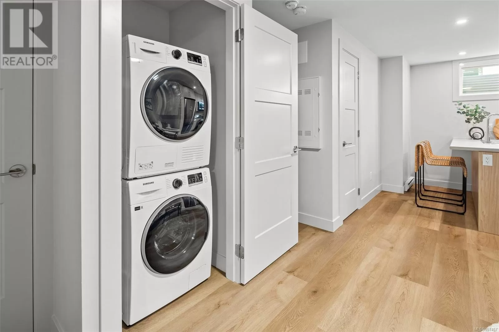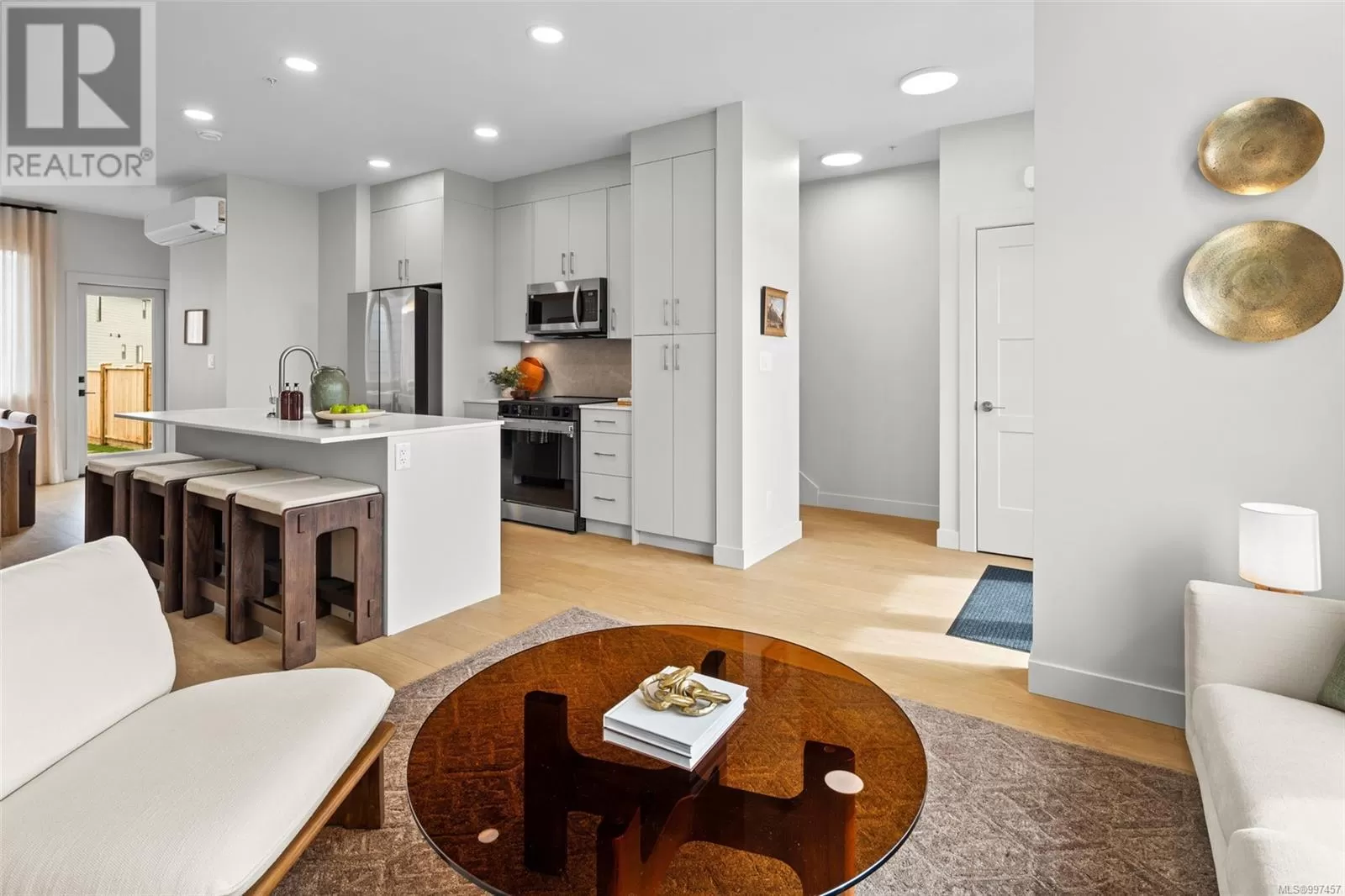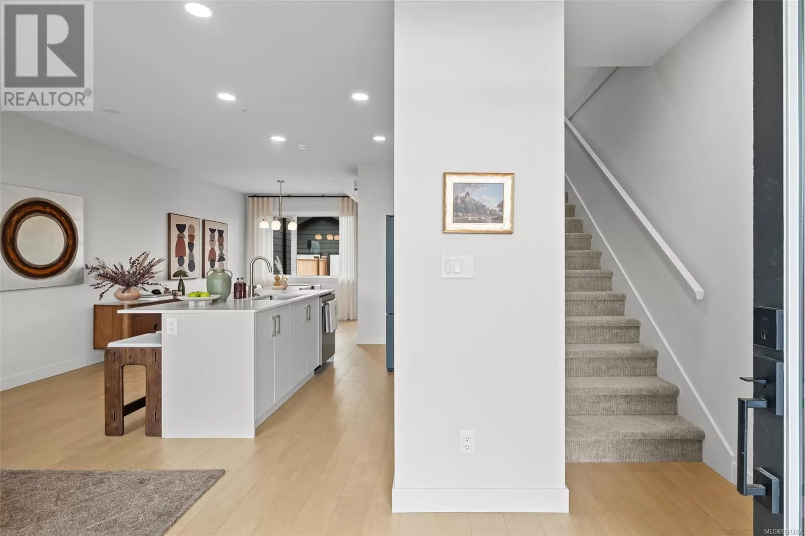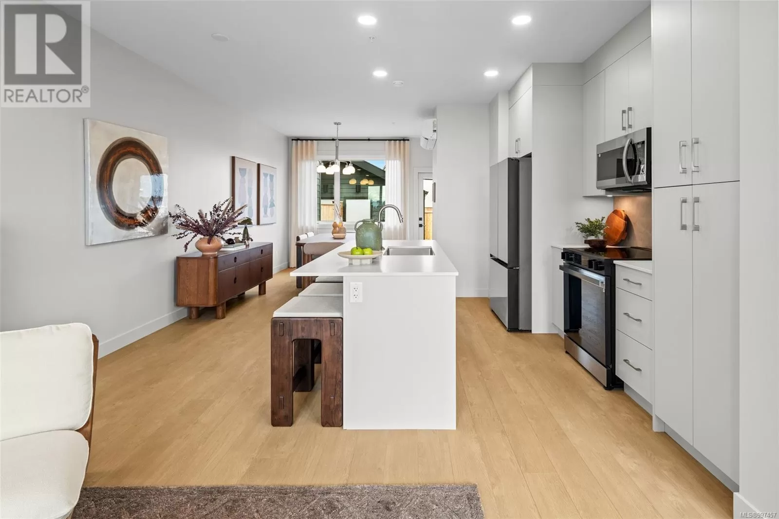 Producers Rowhomes â Peyton Layout, Lot 32 - where contemporary design meets coastal living. This light-filled, designer interior features an open-concept layout that blends style and function. The modern kitchen is a chefâs dream with premium appliances, generous prep space, and sleek finishes. Upstairs, the primary suite impresses with a walk-in closet and elegant ensuite, alongside two spacious bedrooms, a luxe main bath, and upstairs laundry. A separate entrance at the rear leads to a self-contained 1-bed suite with private entry and laundryâperfect for guests or rental income. EV charger rough-in included! Just minutes to the beach, parks, and trails, and steps to the vibrant Commons Retail Village, offering the best of nature and convenience. Visit the HomeStore at 394 Tradewinds Ave, open SatâThurs, 12â4 pm. All measurements approx. Price plus GST. Photos are of a similar show home. (Est. Completion - Nov 2025) (id:27476)
