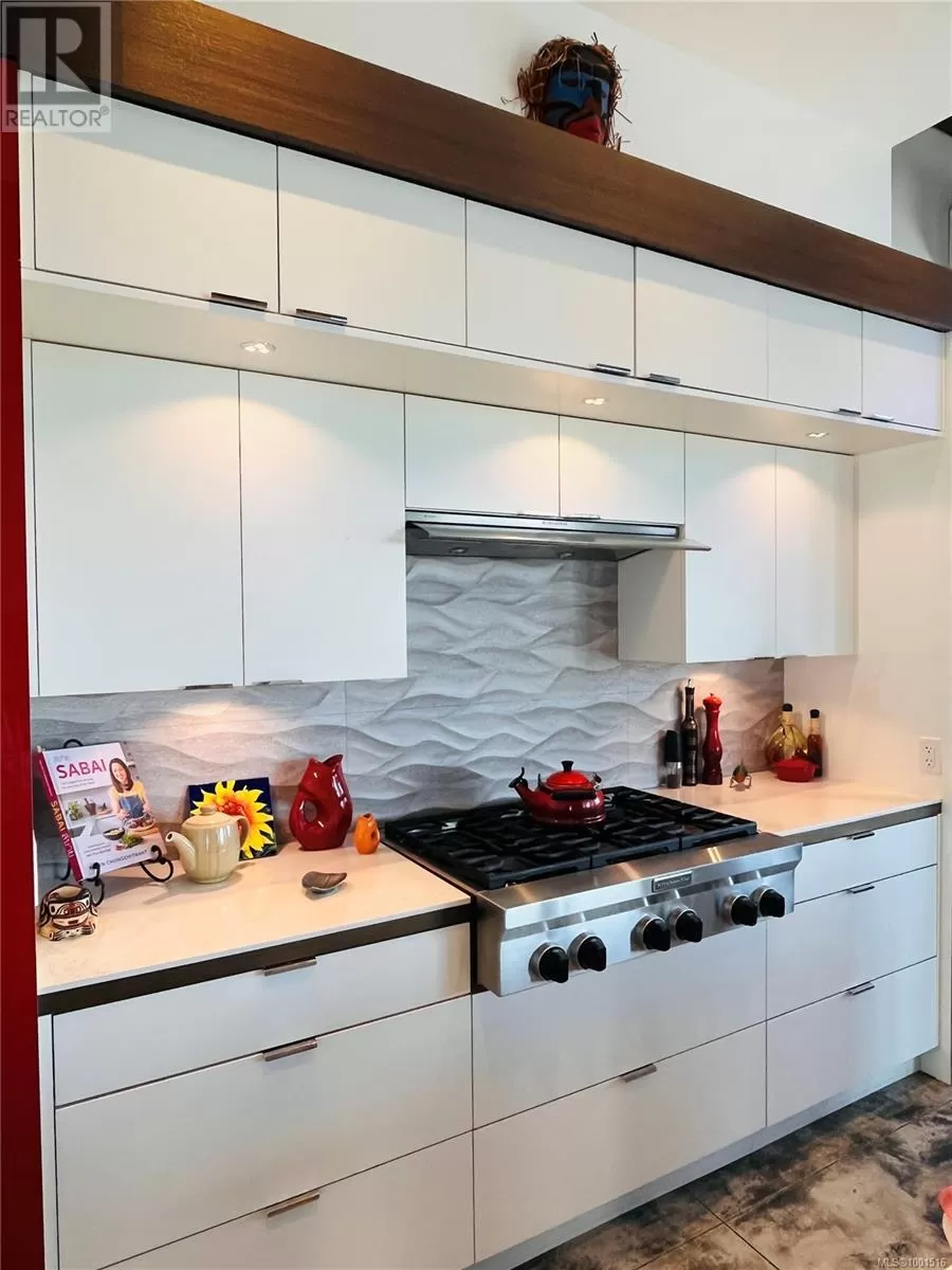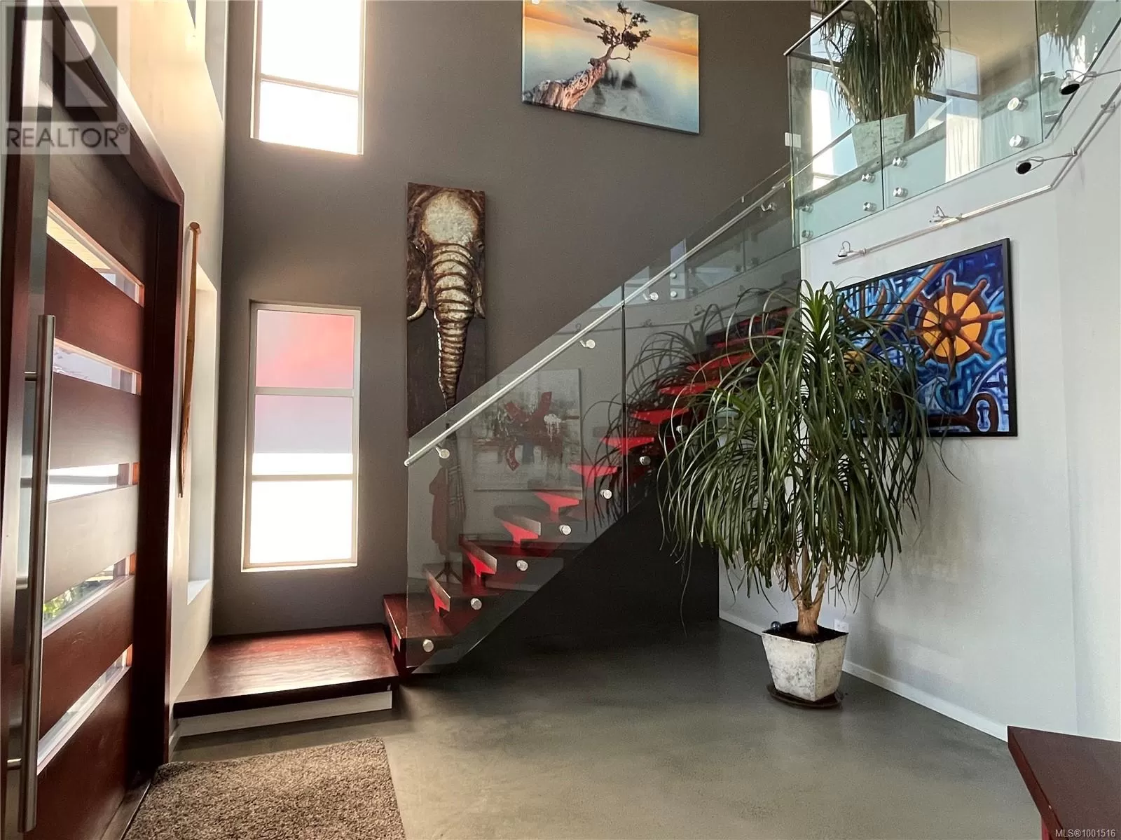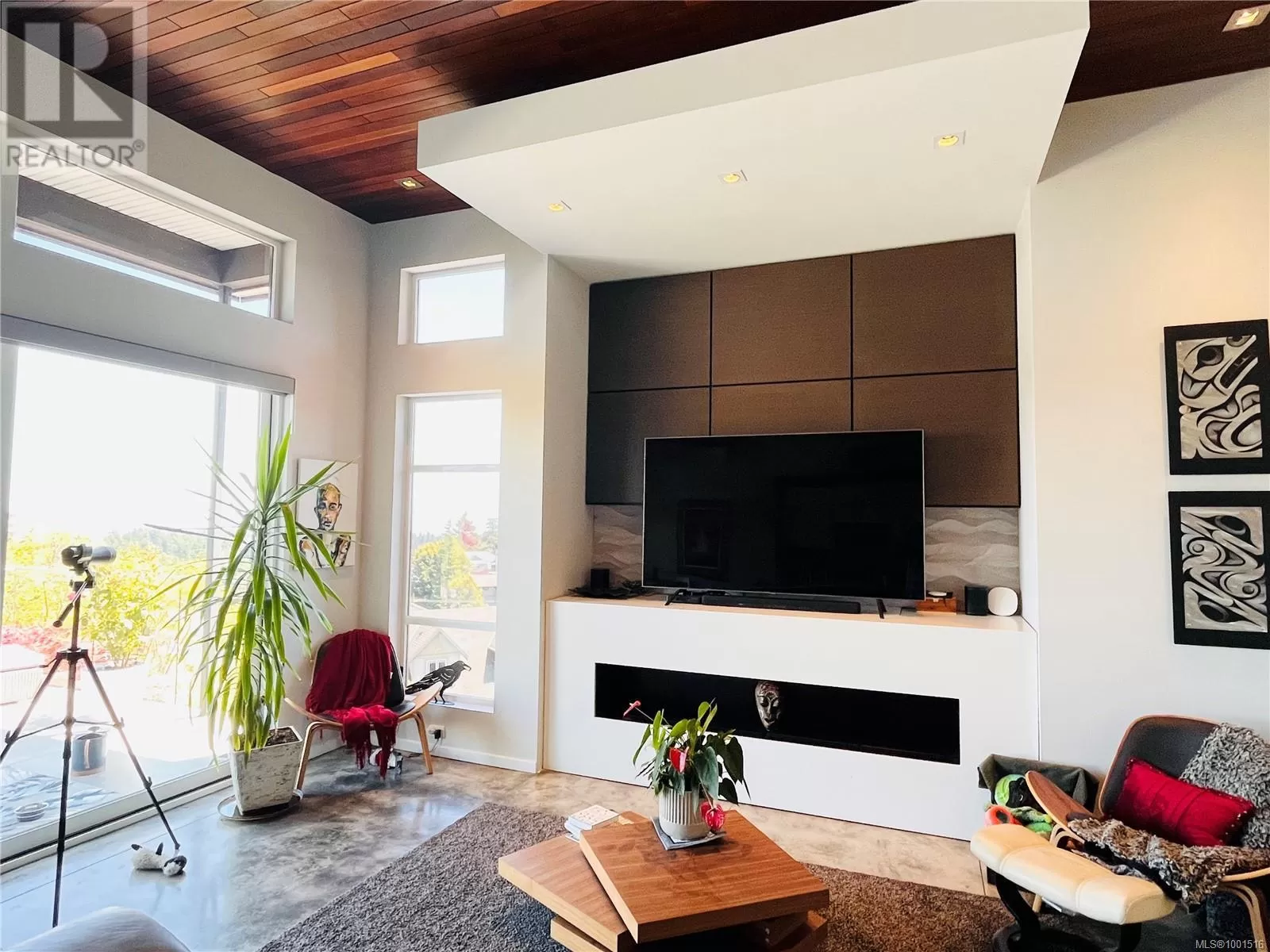 Experience elevated west coast living in this custom-built 2016 home offering stunning panoramic views of downtown Victoria, the Juan de Fuca Strait, and the Olympic Mountains. With over 3,200 sq ft of finished space, this 2-level residence is designed for flexibility, comfort and multigenerational living. Upper Level: The heart of the home features soaring 12-foot ceilings, a dramatic waterfall quartz island, 5-burner natural gas stove, and a modern water fireplace anchoring the open-concept living area. This level also includes the kitchen, dining area, home office, powder room, laundry room, and a spacious primary bedroom with a walk-in closet and a beautifully appointed en-suite. Lower Level: Perfect for guests, family, or private retreat, the lower level offers a second primary bedroom with ensuite, a third bedroom, and a versatile media room currently used as a hot yoga studio. A dedicated wine room and adjacent mechanical room provide added function and storage. Additional features include 4 bathrooms in total, a oversized double car garage, and the balance of the new home warranty. Located in a peaceful enclave, this home delivers breathtaking views, refined finishes, and thoughtful design throughout. (id:27476)