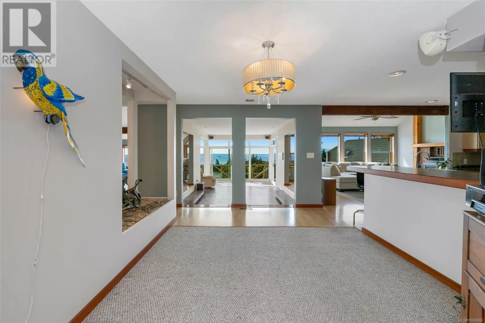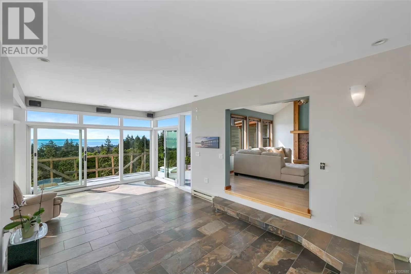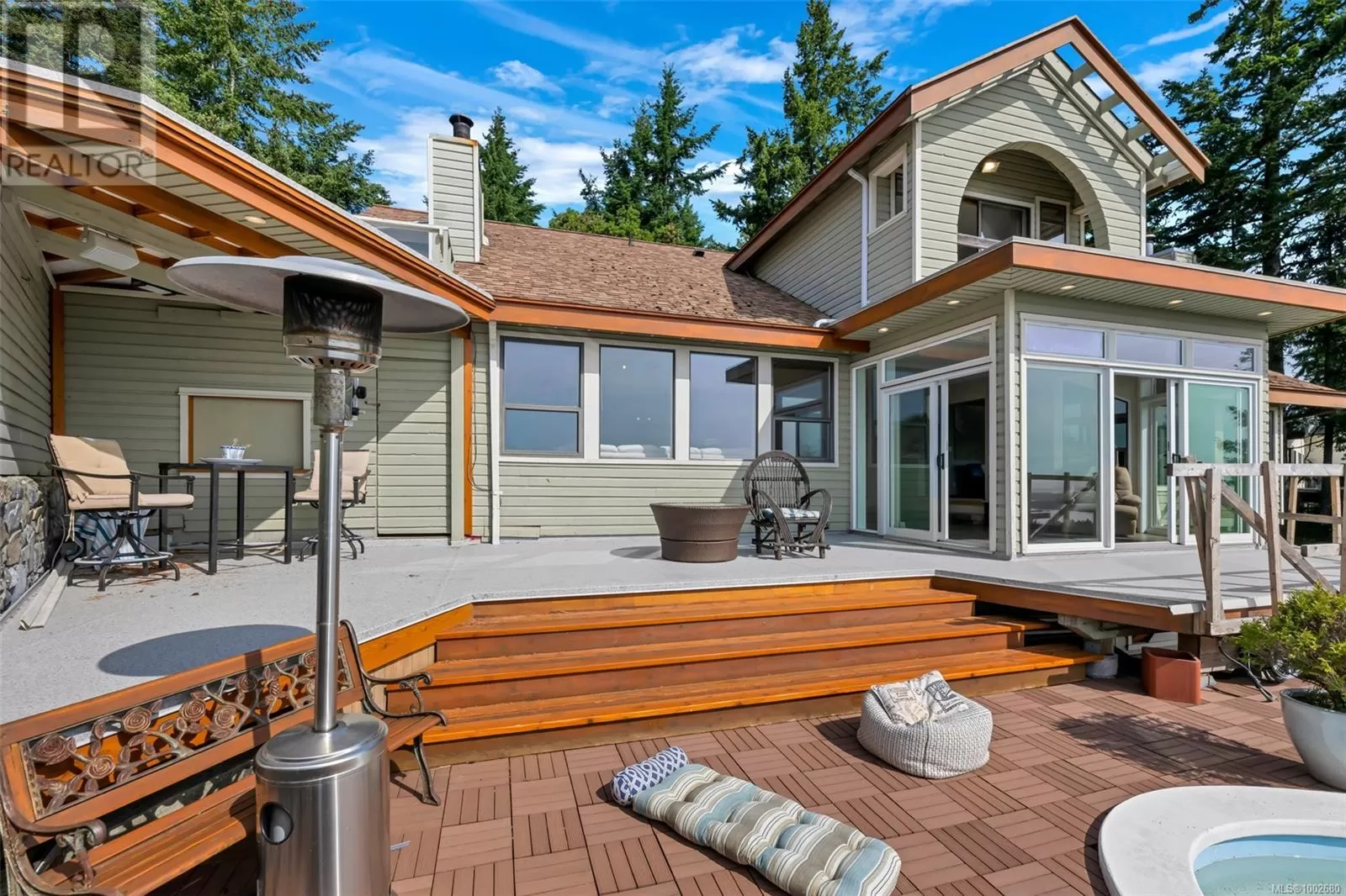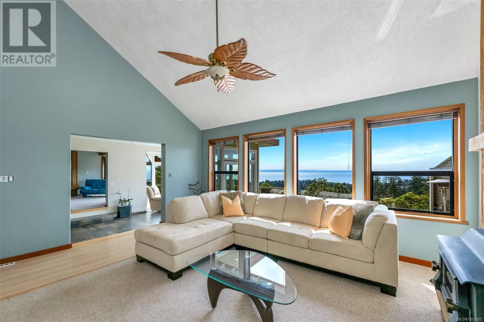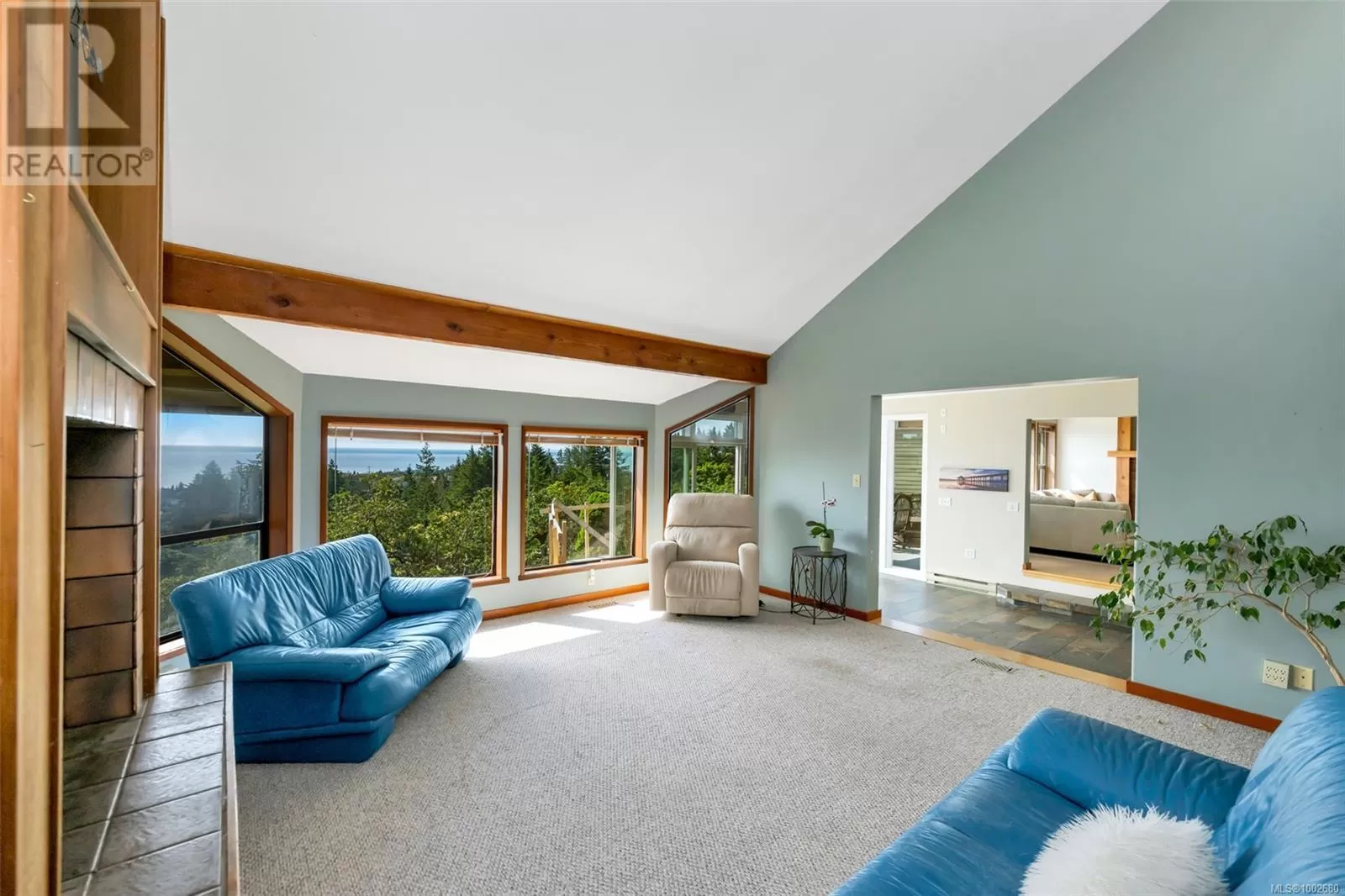 Perched at the peak of prestigious Triangle Mountain, where sky and sea converge, this one-of-a-kind West Coast home situated on .94 acre-offers an unrivaled vantage point with panoramic views stretching from the Olympic Mountains, across the Salish Sea, to the twinkling skyline of downtown Victoria. Thoughtfully designed to maximize natural light and the ever-changing coastal backdrop, the main level showcases a striking dining area framed by floor-to-ceiling windows and set on elegant slated tile. The upper gallery landing overlooks the bright, spacious living areas below, with a skylight feature flooding the home in warm light. Wood-burning fireplaces throughout provide cozy character, while tiled flooring offers both function and West Coast flair. Upstairs, several bedrooms are thoughtfully arranged, with the primary suite offering a private sanctuary complete with walk-in closet, ensuite bath, enclosed sunroom, and an intimate deck with front-row seats to Victoriaâs night lights. A convenient top-floor laundry area enhances functionality. Outside, serenity unfolds in layered garden terraces, hidden nooks, and a peaceful water feature beside a mature palm tree. The private plunge pool is an unexpected luxuryâperfect for soaking in the sun and the scene. Sundecks and patios flow naturally, creating an ideal blend of outdoor living and inspiration. Yes, some deferred maintenance and updates are neededâbut the bones, design, and location are truly extraordinary. This is a rare opportunity for the discerning buyer to restore and personalize a masterpiece in an elite location. Properties with these views and this potential do not come along often. Let your vision breathe new life into something truly special. (id:27476)