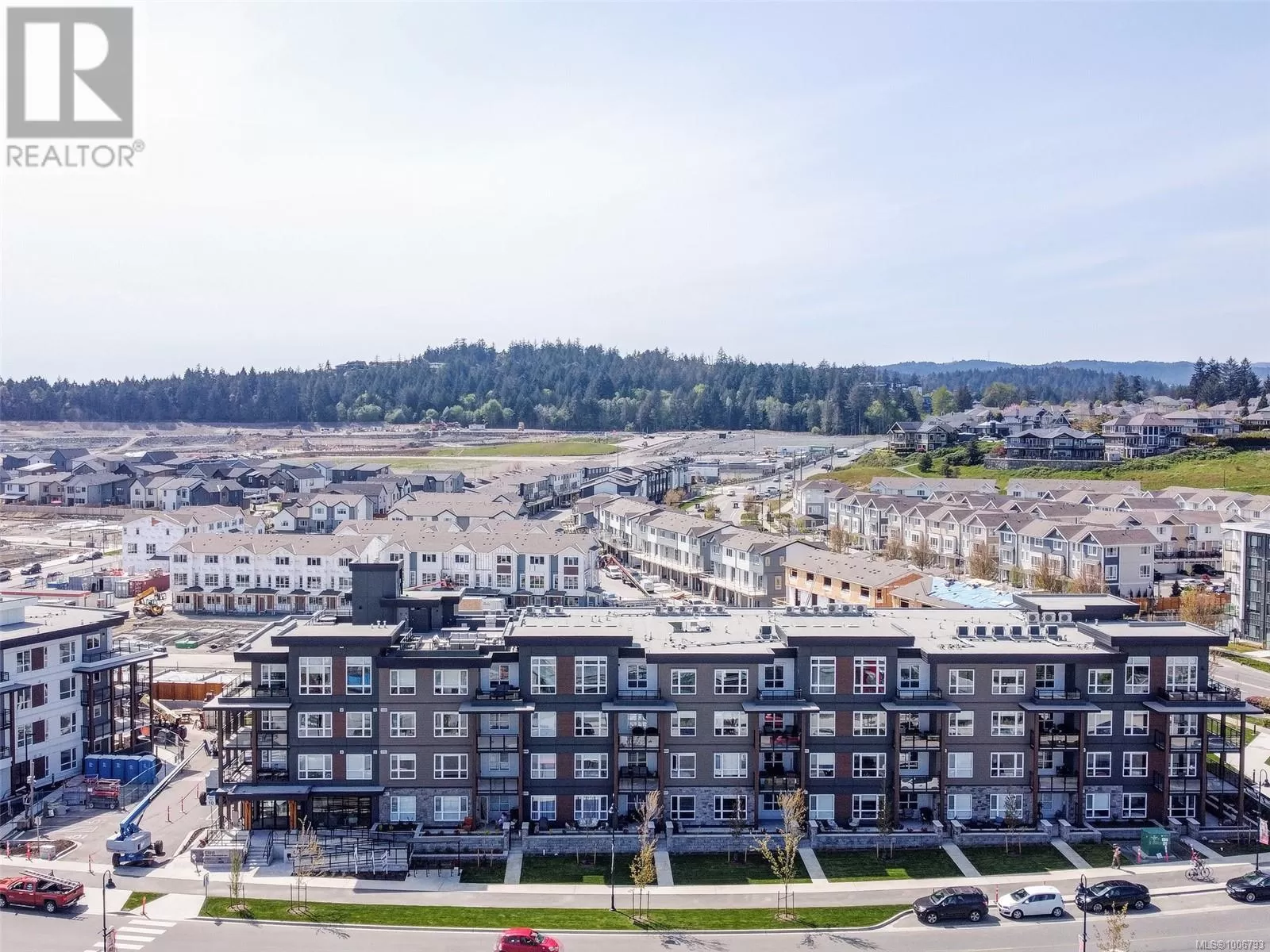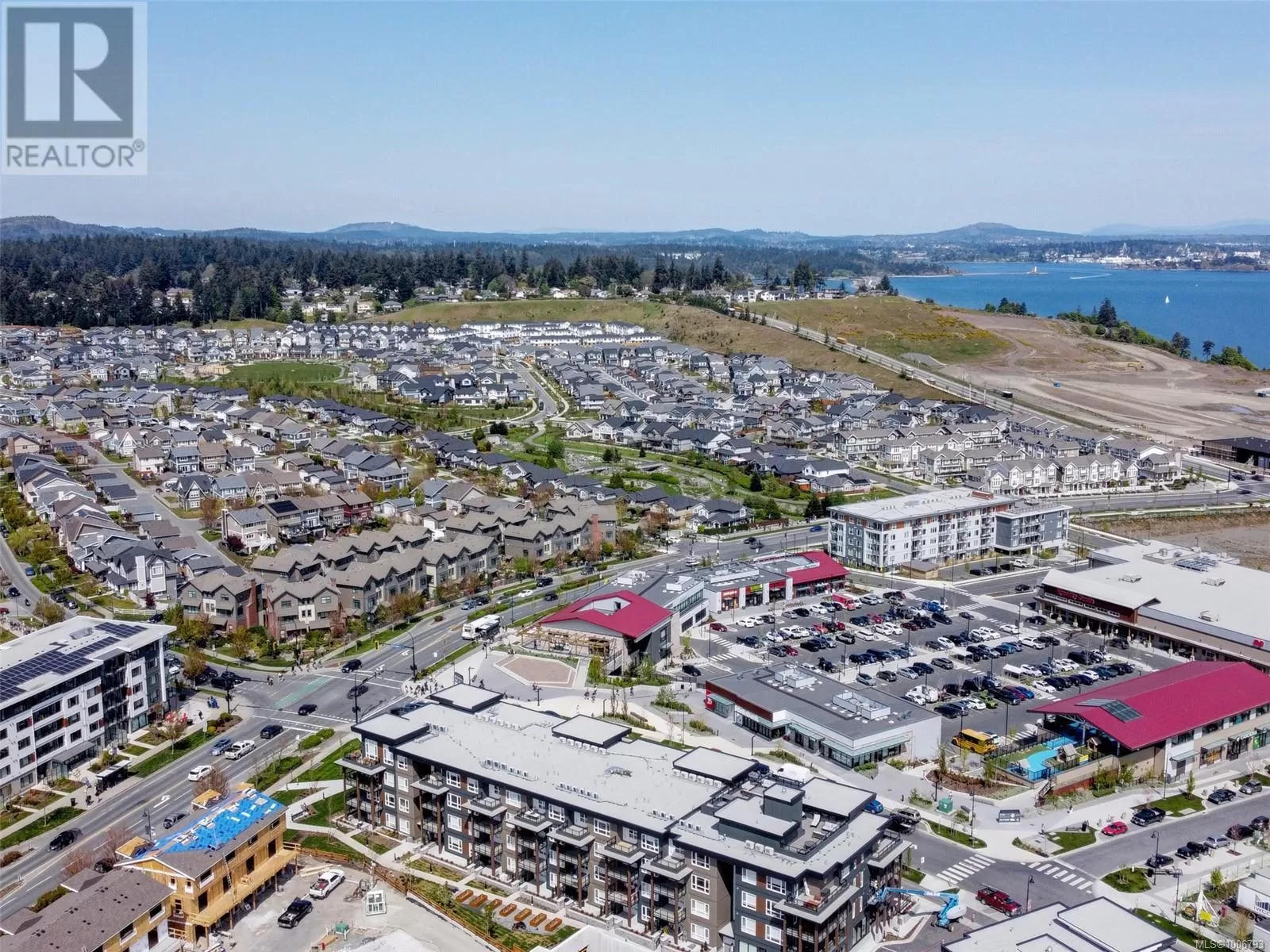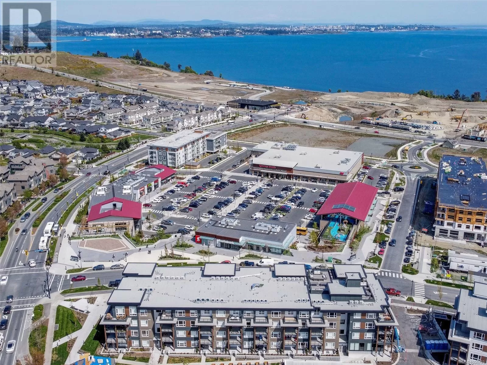TOP FLOOR, ENDLESS OCEAN & OLYMPIC MOUNTAIN VIEWS! Your dream lifestyle awaits you at recently completed Eliza where you'll enjoy not only this building's GREAT amenities but just cross the street to buy your groceries, visit the dentist or meet your friends for coffee or a pint! Select few units have the 14' vault ceilings with an unimpeded view over the low-rise COMMONS commercial block - open your door to the ever-changing marine vista, be captivated from sunrise to sunset by light, weather & ships from your balcony, your Bedroom or as you move through your gorgeous space. Open, bright, quality finishes & BRAND NEW, never lived in! Underground parking, bike storage, dog wash/grooming station, Owners' Lounge, Gym, well furnished Rooftop Patio with BBQ Kitchen. Located in master-planned & community-minded Royal Bay, walking distance to the beach, shops, schools, trails & more. Unlike most competitors that are Plus GST, NO GST HERE, PRICED TO SELL! (id:27476)