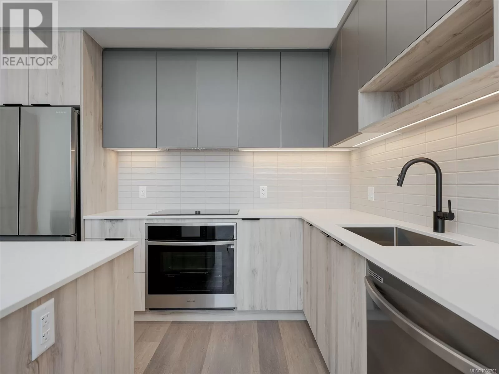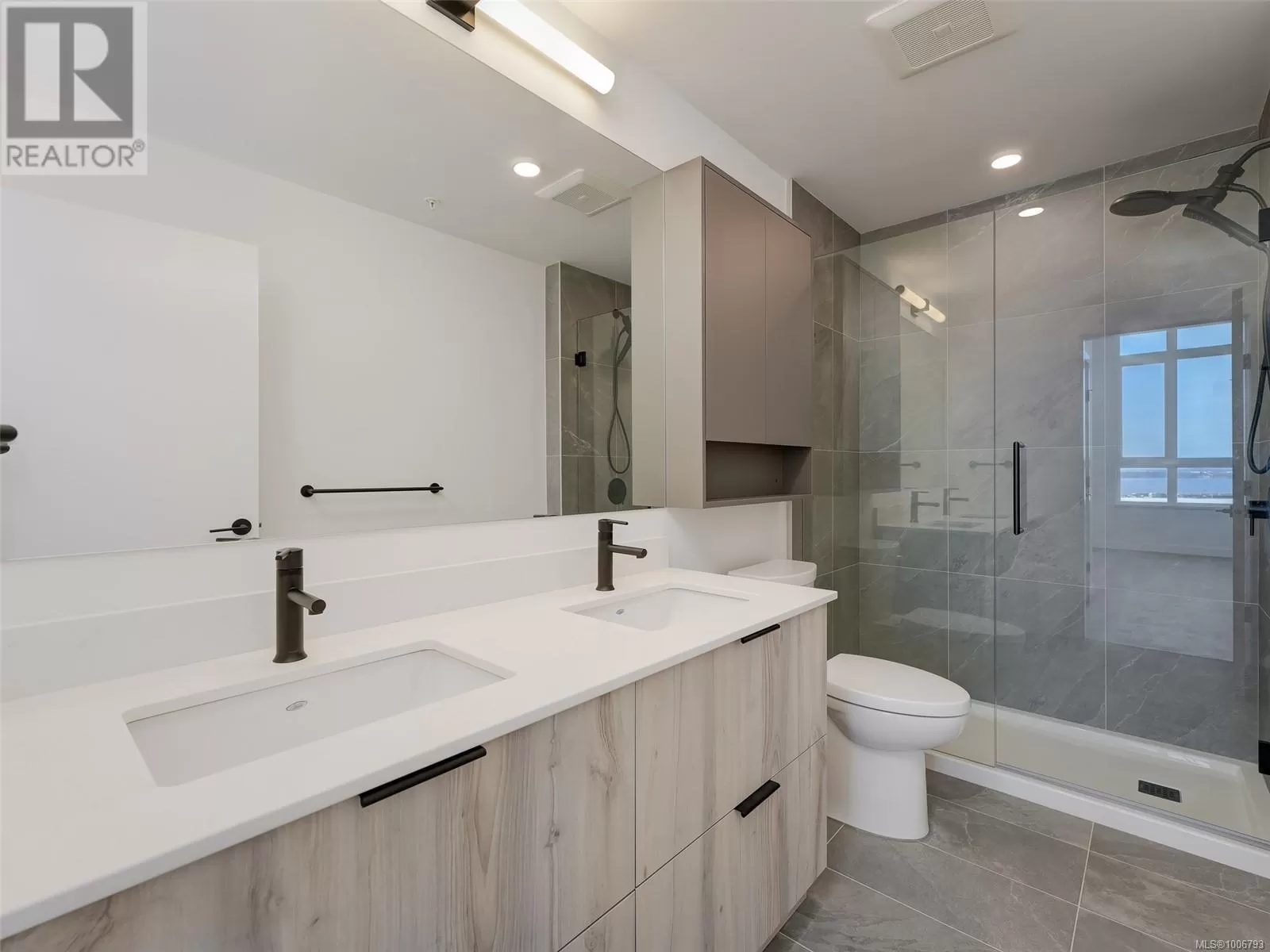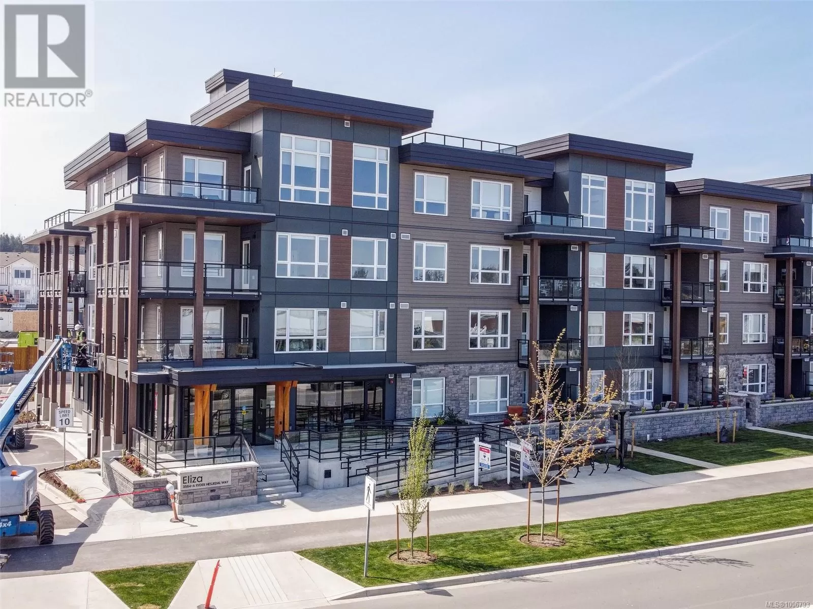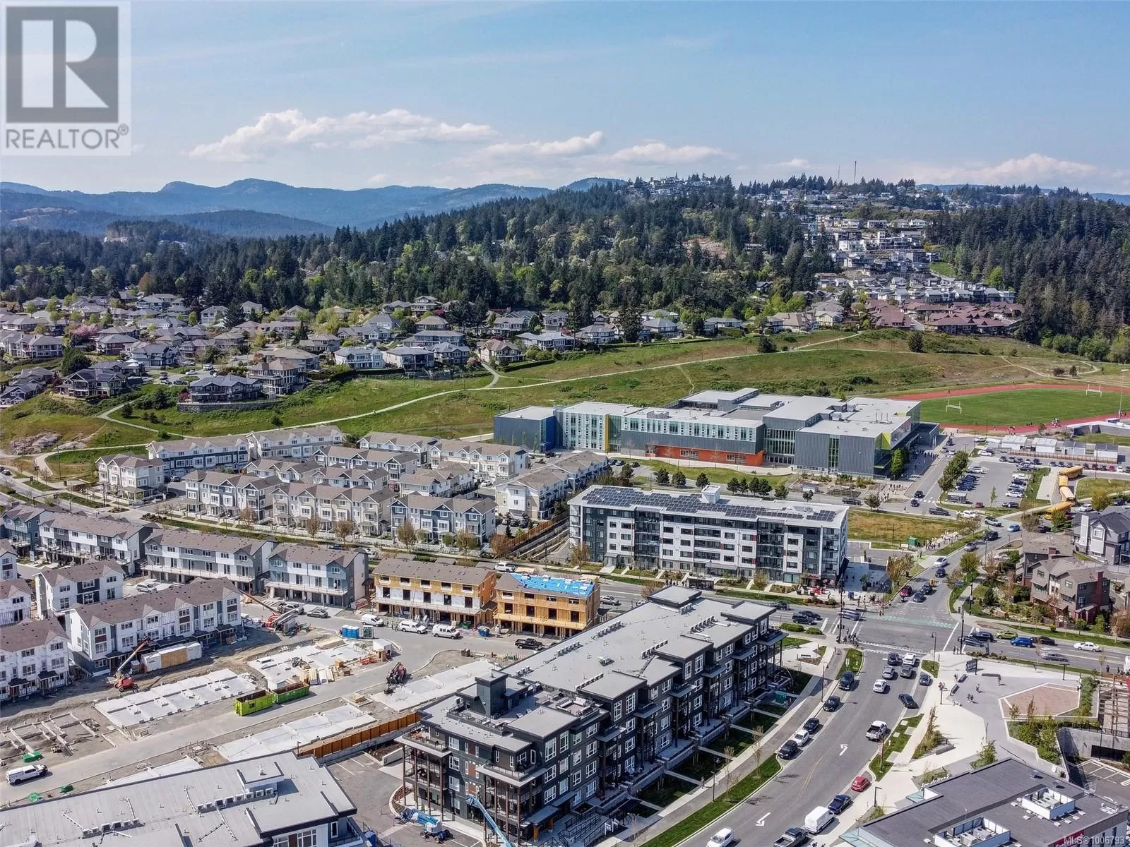 TOP FLOOR, ENDLESS OCEAN & OLYMPIC MOUNTAIN VIEWS! Your dream lifestyle awaits you at recently completed Eliza where you'll enjoy not only this building's GREAT amenities but just cross the street to buy your groceries, visit the dentist or meet your friends for coffee or a pint! Select few units have the 14' vault ceilings with an unimpeded view over the low-rise COMMONS commercial block - open your door to the ever-changing marine vista, be captivated from sunrise to sunset by light, weather & ships from your balcony, your Bedroom or as you move through your gorgeous space. Open, bright, quality finishes & BRAND NEW, never lived in! Underground parking, bike storage, dog wash/grooming station, Owners' Lounge, Gym, well furnished Rooftop Patio with BBQ Kitchen. Located in master-planned & community-minded Royal Bay, walking distance to the beach, shops, schools, trails & more. Unlike most competitors that are Plus GST, NO GST HERE, PRICED TO SELL! (id:27476)