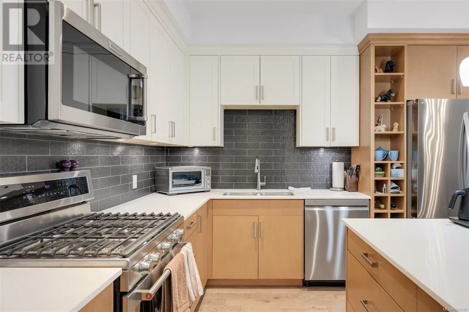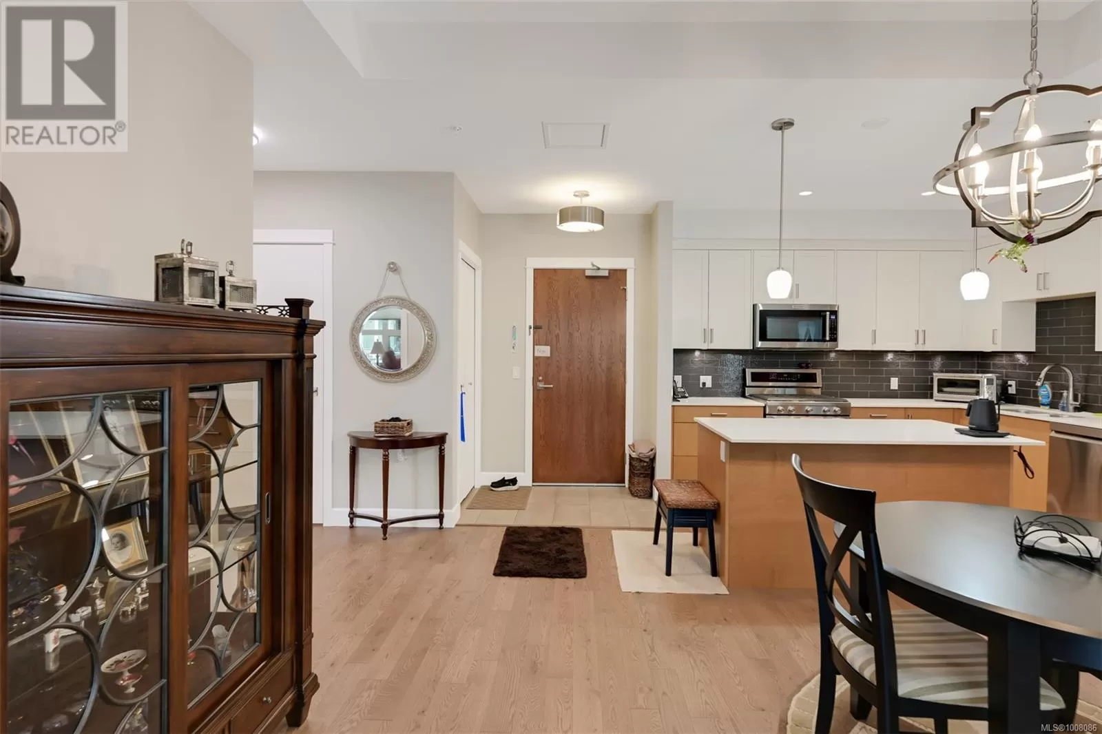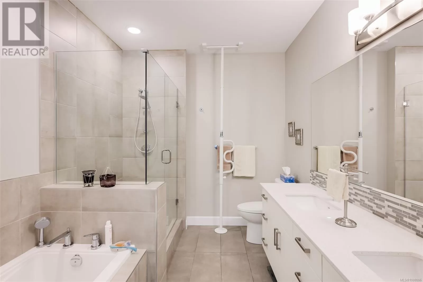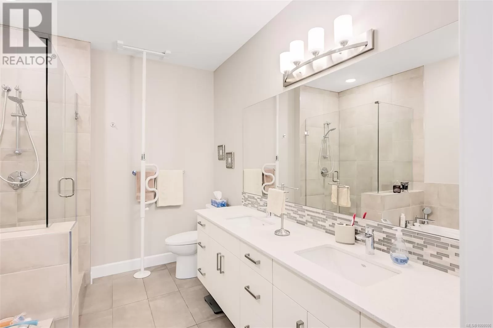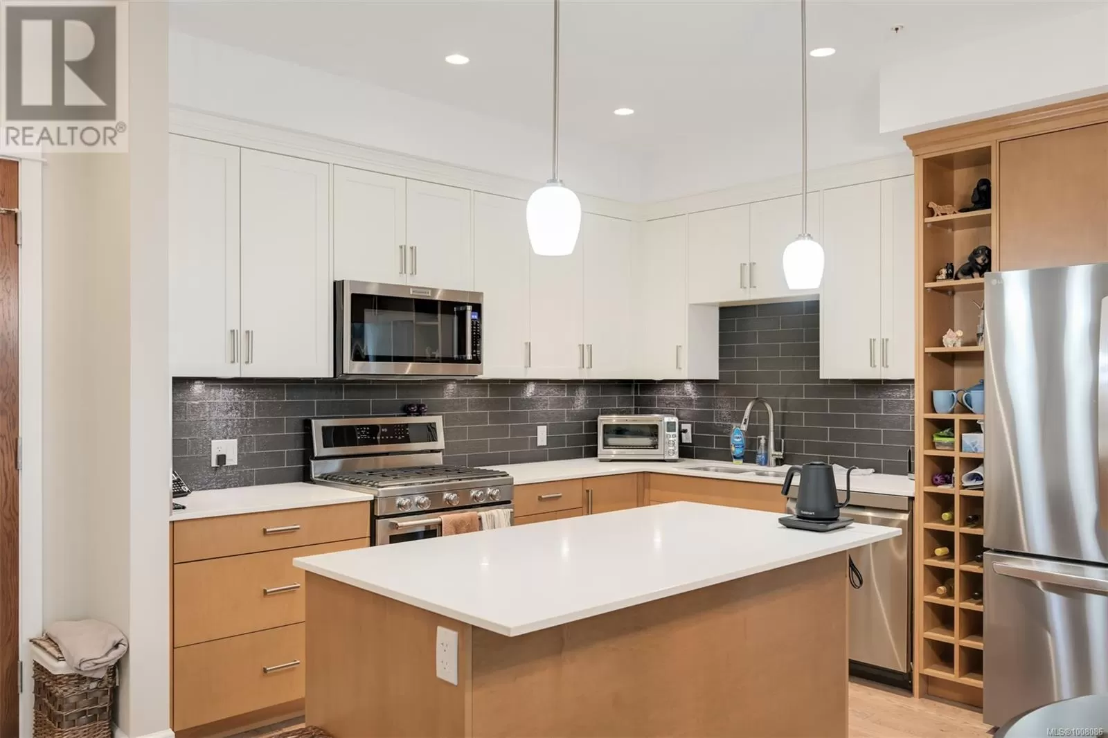OPEN HOUSE SATURDAY 1-3 PM - SELLER RELOCATION ! IMMACULATE CONDITION - NO GST -PRICED $70K BELOW ASSESSED VALUE - Pacific Landing is an Award Winning Waterfront Development just steps to a Sandy Beach with Accessable 650 ft of Shoreline, Bird Sanctuary (Blue Herons/Bald Eagles) , Hatley Castle, Royal Roads University with beautiful gardens & forested trails and nearby Galloping Goose Trail ! Spacious and Bright (1124 sq ft) Gorgeous 2nd Floor Suite has 10 ft ceilings, 2 Beautiful Large Bedrooms , 2 Full Bathrooms, open floor plan, Gourmet Kitchen w/ Designer Cabinetry, Quartz Countertops, Stylish Appliances BONUS ! Heat Pump - AIR CONDITIONING and Hot Water On Demand ! List of Features include Hardwood Flooring, Cozy Gas Fireplace, Heated Ceramic Floors, & Many Wonderful Upgrades ... Secure Underground Parking, Rentable, Pets and Separate Storage and Bike Storage. Large Deck (16X12) to Relax with gas hook up. Gardeners will appreciate the community garden. Seller is Very Motivated ! (id:27476)