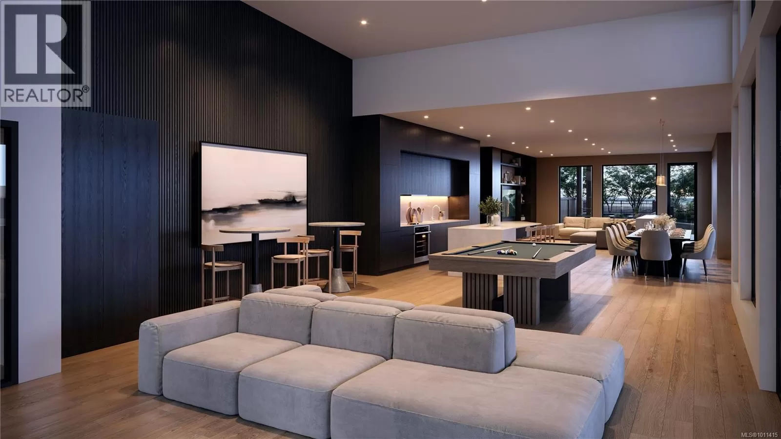 Elevate your lifestyle in the walkable seaside community of Royal Bay! This modern 3-bedroom, 2-bathroom corner unit by award-winning PATH Developments offers nearly 1,200 sq ft of thoughtfully designed living space. Enjoy a bright east-facing patio, perfect for morning coffee, and over-height ceilings. The gourmet kitchen is a chef's dream with Silestone quartz countertops, stainless steel appliances, an induction cooktop, soft close cabinetry and ample storage. Residents enjoy exclusive access to the Clubhouse, complete with a social lounge, fitness center, yoga studio, outdoor spa, hot tub, cold plunge, and sauna. Bella Park offers over 2 acres of green space complete with community gardens and a bocce court. Includes EV-ready parking and a convenient guest suite to comfortably host visiting family and friends. Steps from the Royal Bay Commons, groceries, amenities and the ocean! Price + GST. (id:27476)