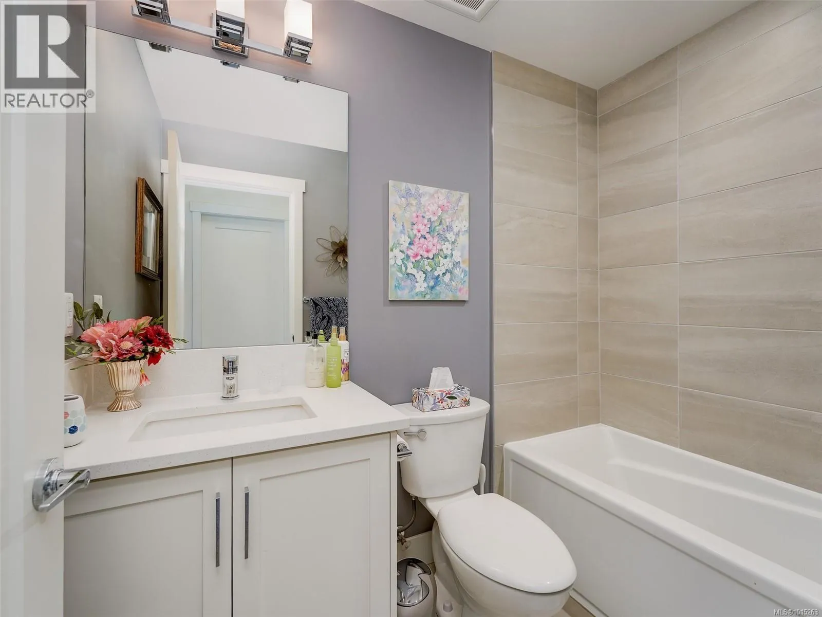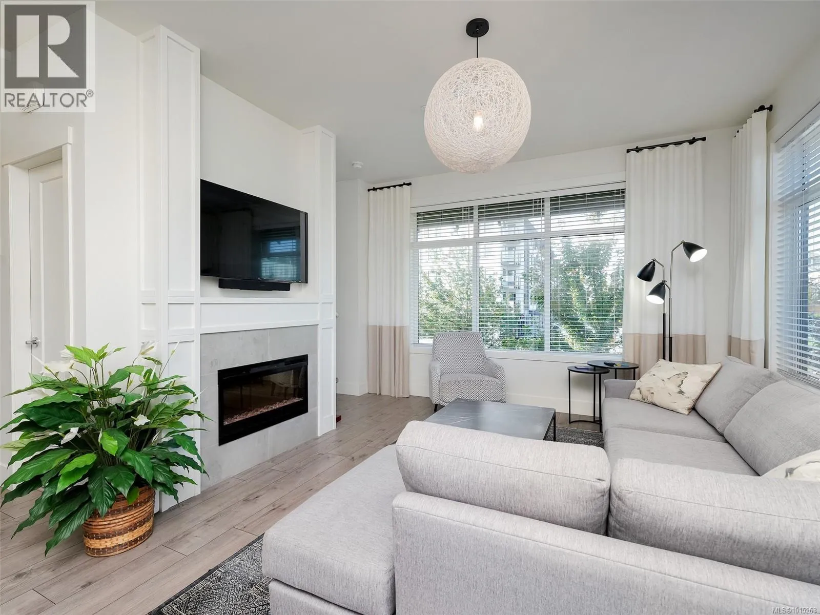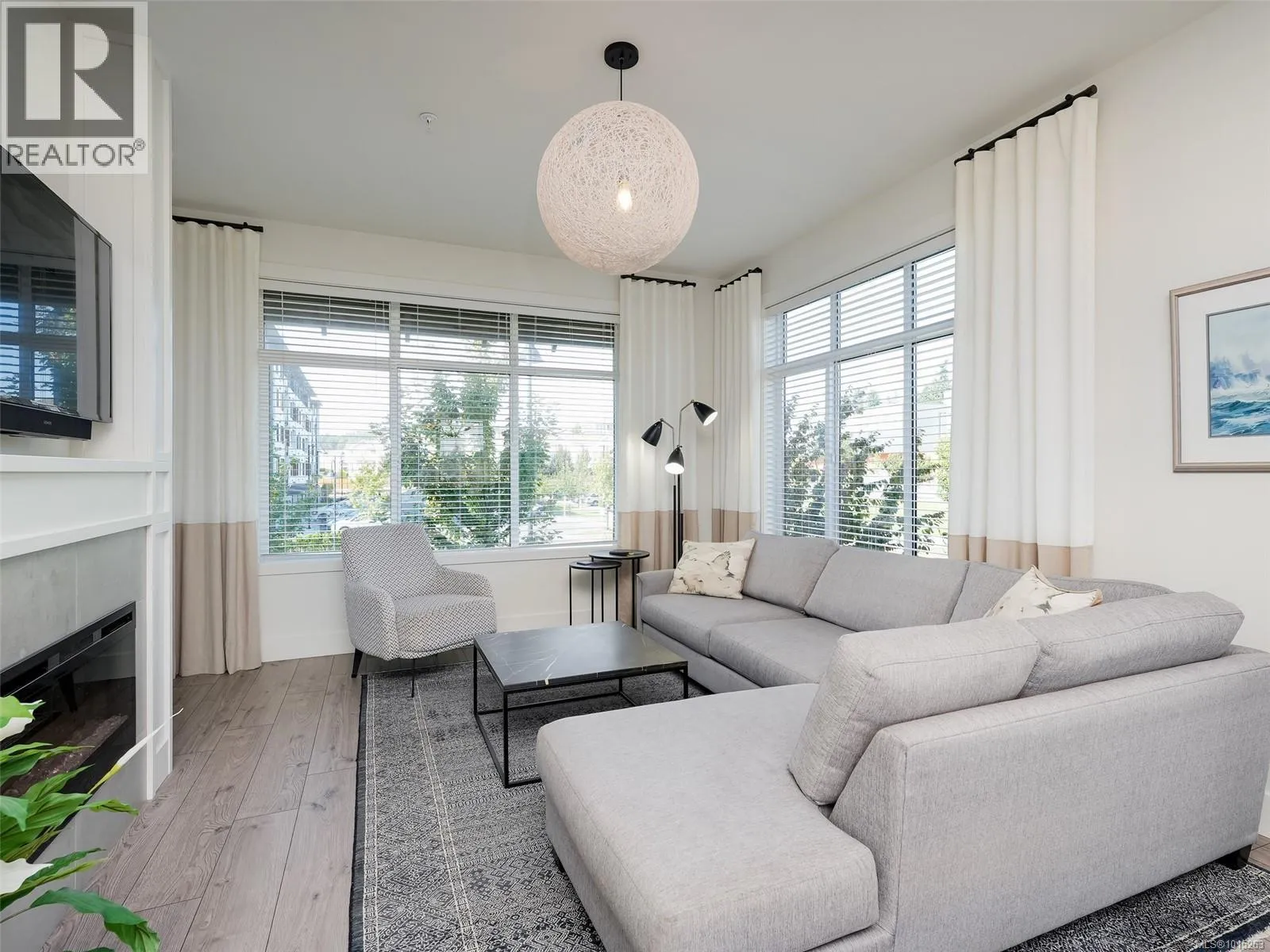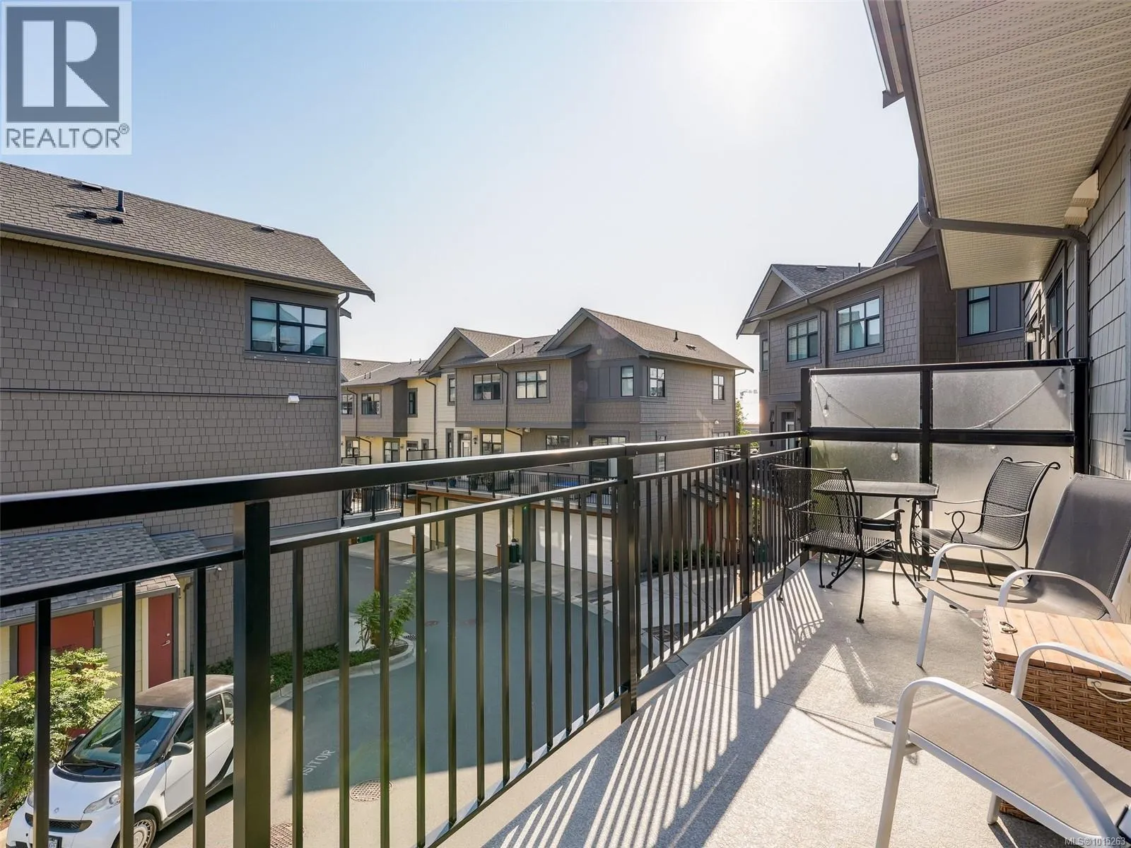 CORNER UNIT 4 bed, 3 bath townhome with 2 CAR GARAGE at the highly sought after Mariner at Royal Bay! The original Show Home with BRAND NEW HEAT PUMP! Inside you will get a true sense of quality with 9' ceilings on the main, large & open luxurious kitchen with quartz countertops, natural gas stove, stainless steel appliances, & beautiful electric fireplace with floor to ceiling feature wall! Excellent layout - 3 BEDROOMS UPSTAIRS including side by side laundry & double sink ensuite for primary bedroom. Downstairs has 4th bedroom that gives you lots of options such as home office or guest bedroom. Very well-maintained with extras such as heated 2 car garage, gas BBQ outlet, forced-air heat pump & large kitchen island. Outside you'll find a fenced private yard with covered entry & deck off kitchen. Enjoy the seaside community of Royal Bay & the Beach lands with beach side parks, trails, Royal Bay HS & the convenience of shopping at âThe Commonsâ Retail Village Centre just steps away. (id:27476)