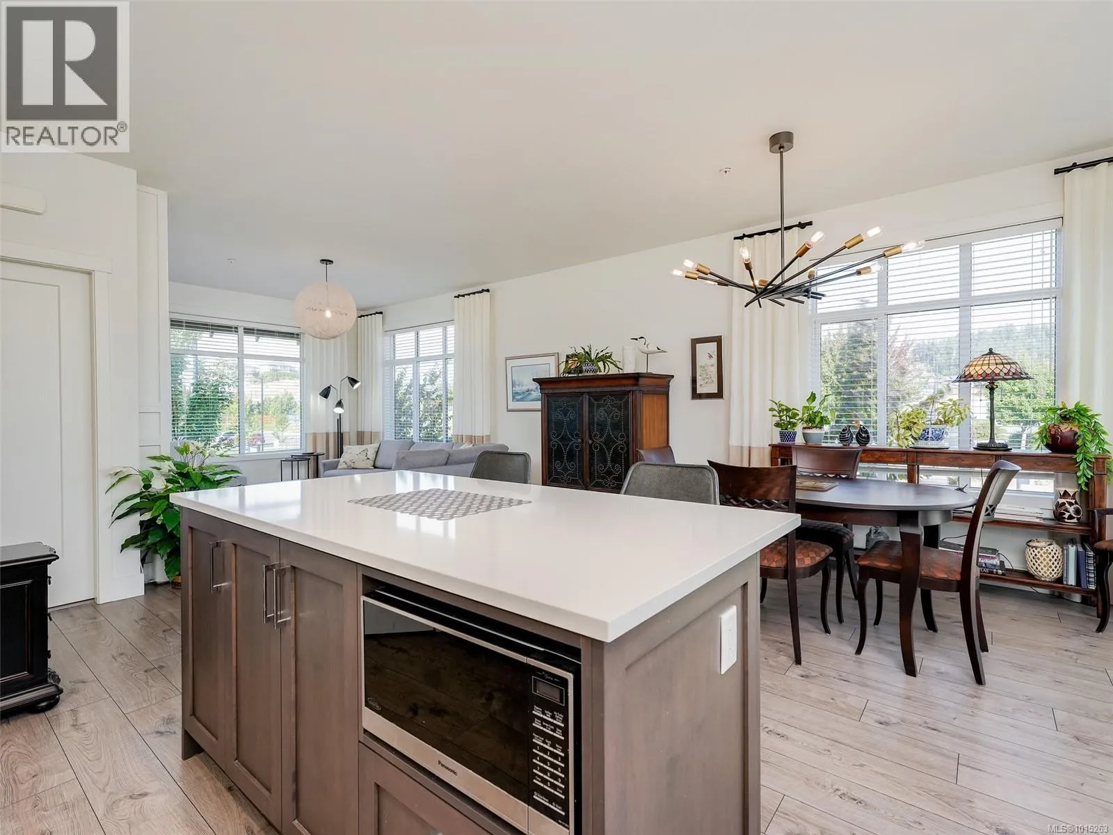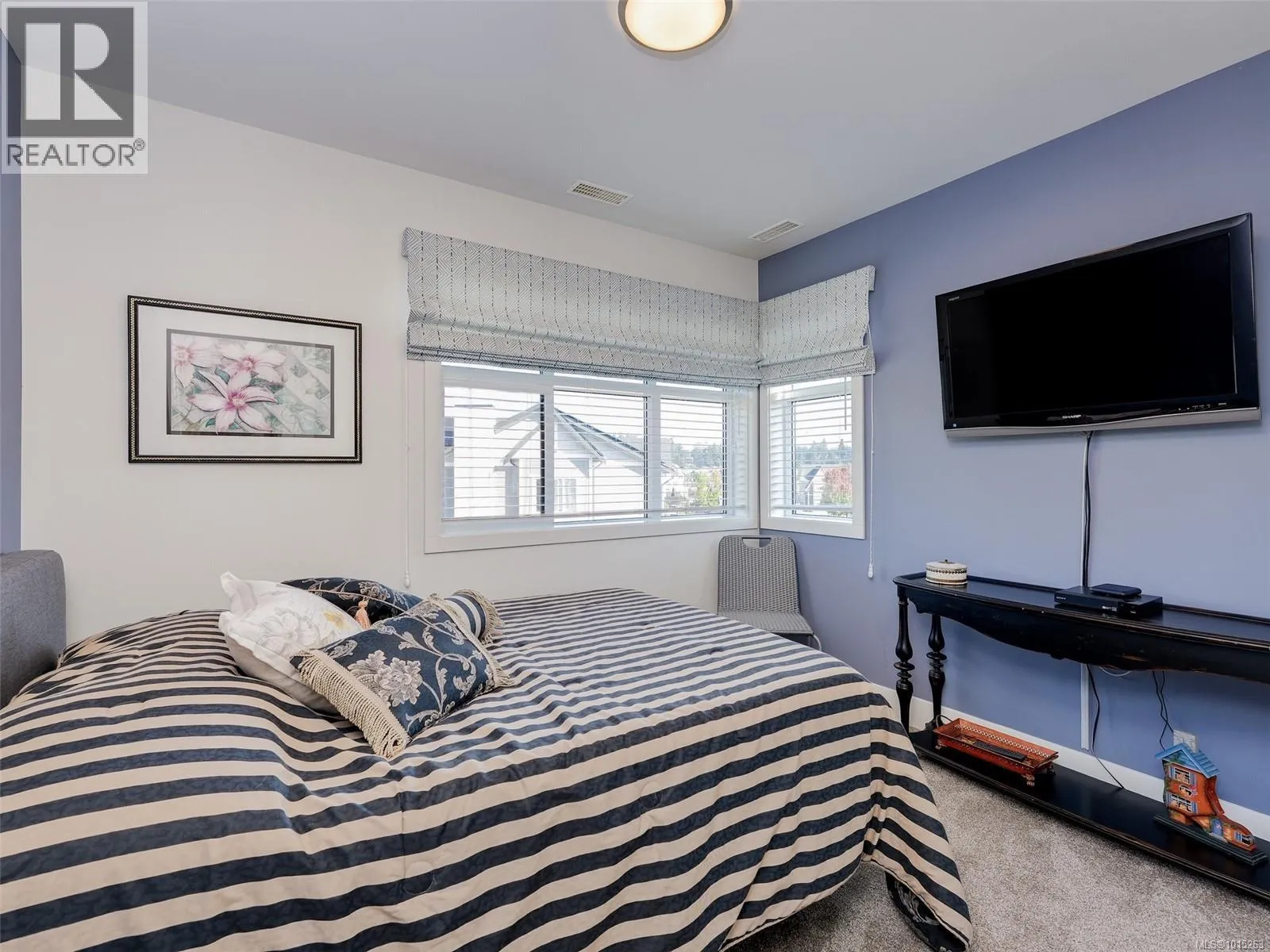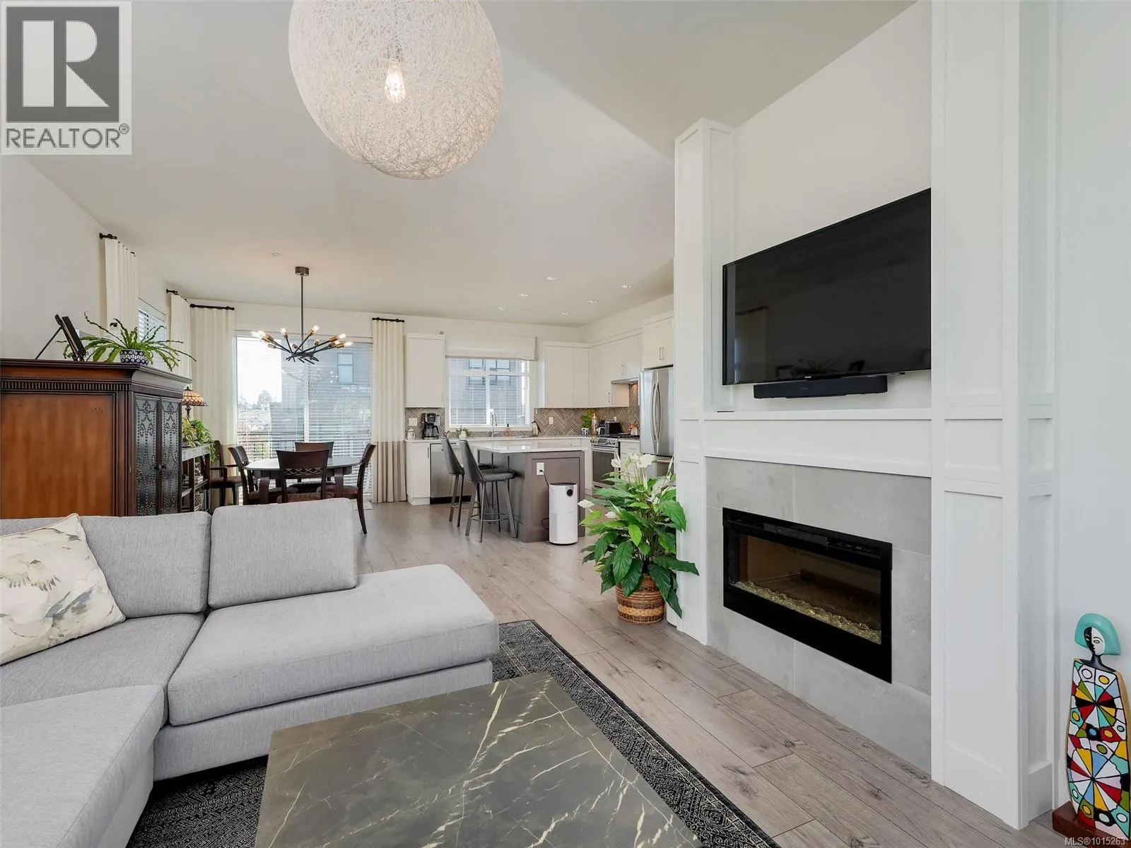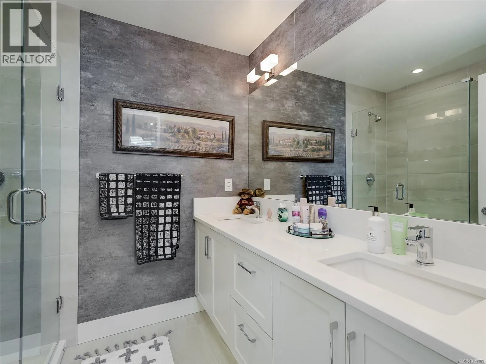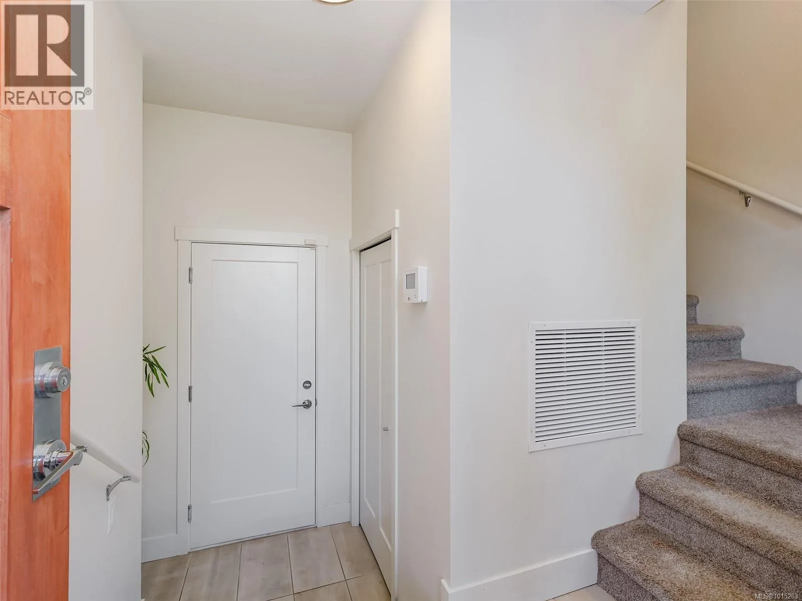 CORNER UNIT 4 bed, 3 bath townhome with 2 CAR GARAGE at the highly sought after Mariner at Royal Bay! The original Show Home with BRAND NEW HEAT PUMP! Inside you will get a true sense of quality with 9' ceilings on the main, large & open luxurious kitchen with quartz countertops, natural gas stove, stainless steel appliances, & beautiful electric fireplace with floor to ceiling feature wall! Excellent layout - 3 BEDROOMS UPSTAIRS including side by side laundry & double sink ensuite for primary bedroom. Downstairs has 4th bedroom that gives you lots of options such as home office or guest bedroom. Very well-maintained with extras such as heated 2 car garage, gas BBQ outlet, forced-air heat pump & large kitchen island. Outside you'll find a fenced private yard with covered entry & deck off kitchen. Enjoy the seaside community of Royal Bay & the Beach lands with beach side parks, trails, Royal Bay HS & the convenience of shopping at âThe Commonsâ Retail Village Centre just steps away. (id:27476)