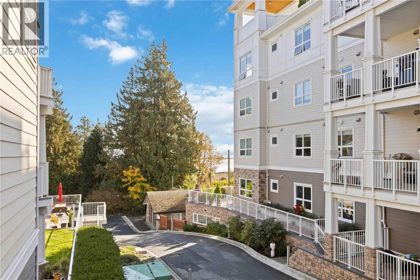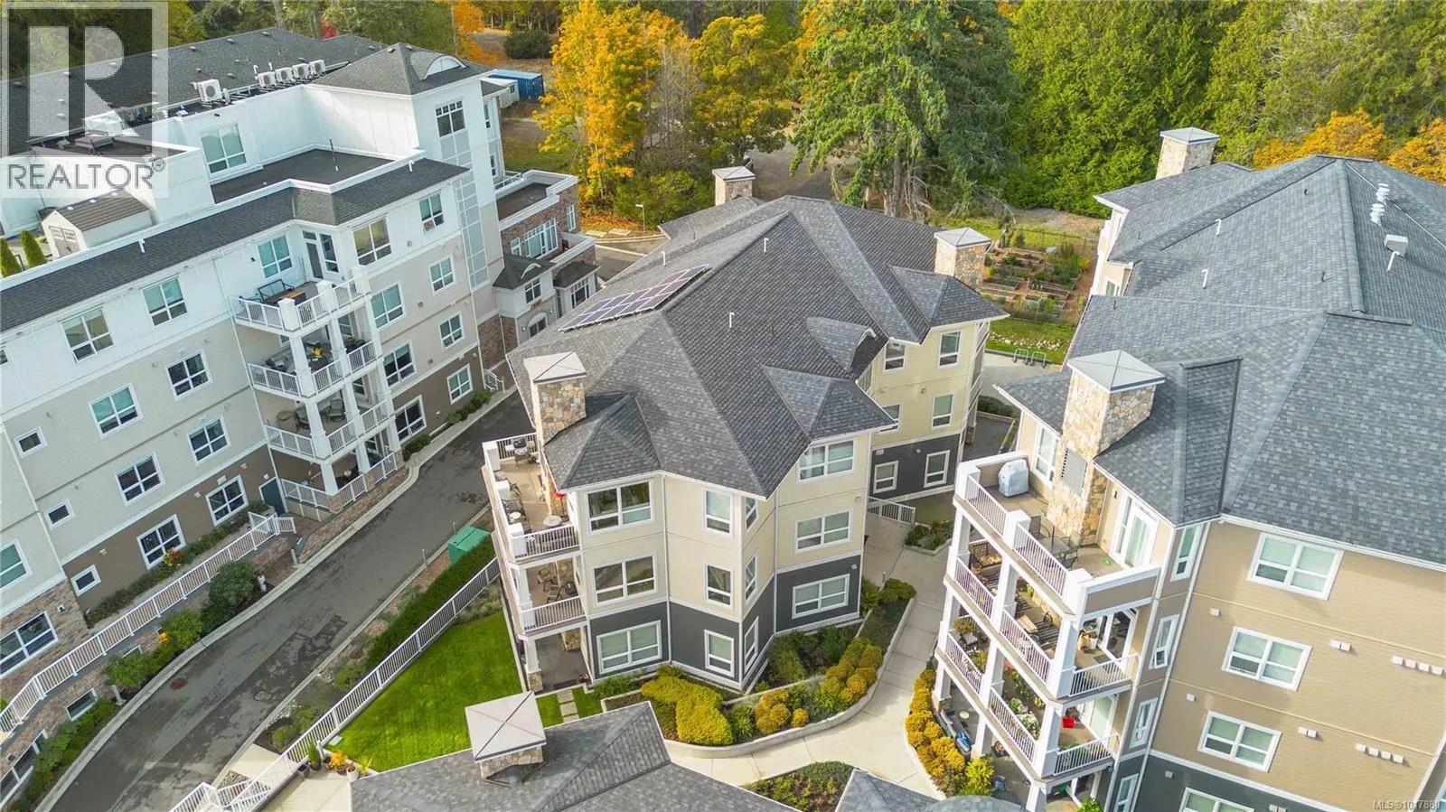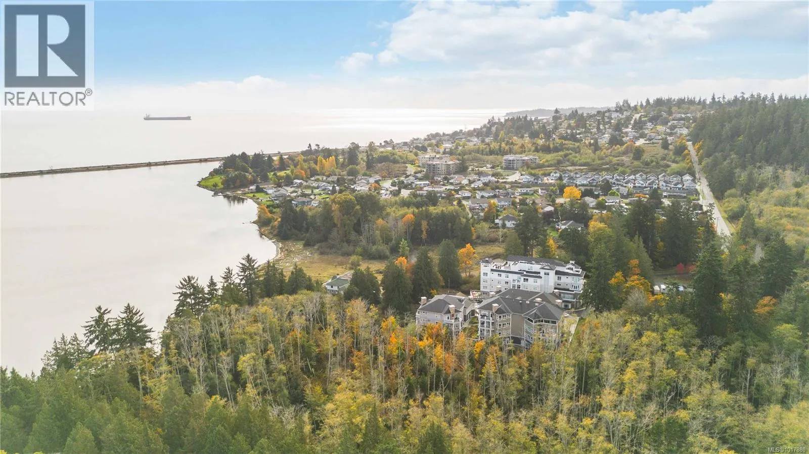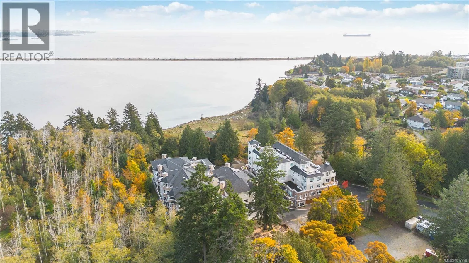 Experience elevated coastal living in this luxurious 2 bed, 2 bath condo with forest-framed ocean views at the sought-after Pacific Landing. Thoughtfully designed with overheight ceilings, a gas fireplace, heated bathroom floors, and a gourmet kitchen with quartz countertops, gas range, and large island for prep and entertaining. The covered balcony with gas BBQ hookup extends your living space outdoors, perfect for year-round West Coast enjoyment. The serene primary suite offers a walk-in closet and spa-style ensuite, while a full laundry room adds rare functionality. Secure underground parking, storage locker, and modern construction ensure peace of mind. Surrounded by walking trails, community gardens, and just steps to the sandy Esquimalt Lagoon, this vibrant seaside community sits minutes from Royal Roads University, Hatley Castle, the Galloping Goose Trail, and everyday amenities. A perfect blend of nature, luxury, and convenience â West Coast living at its finest. (id:27476)