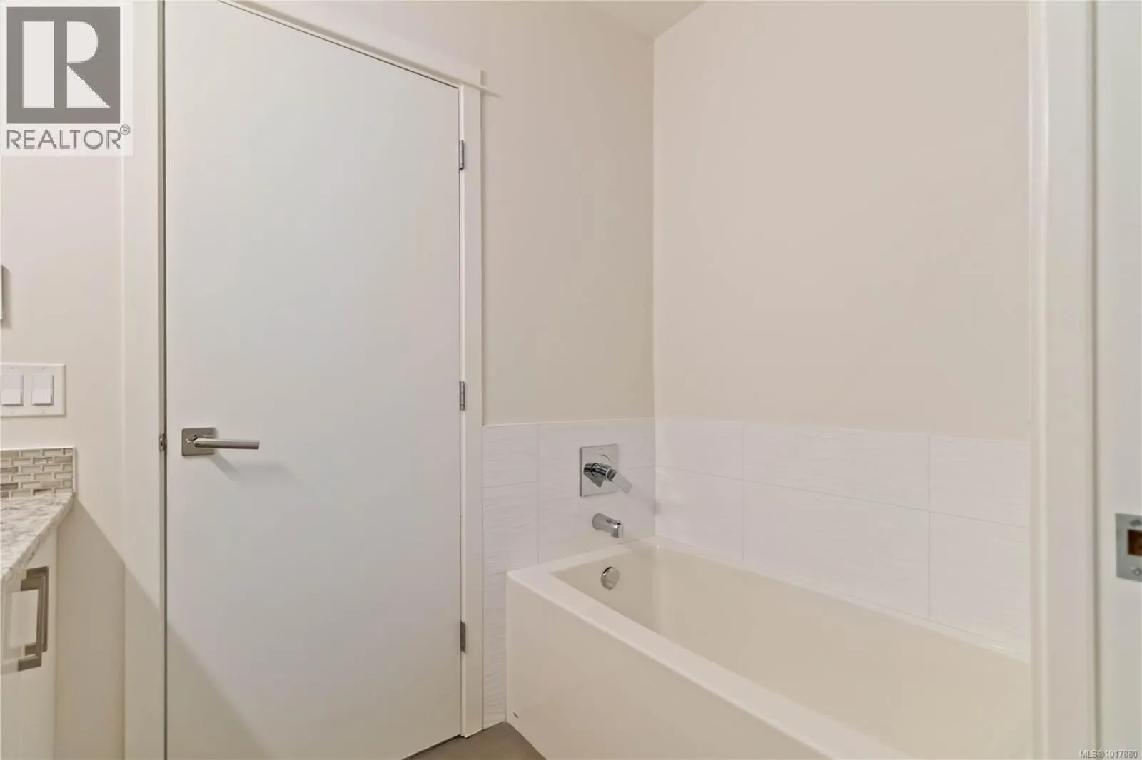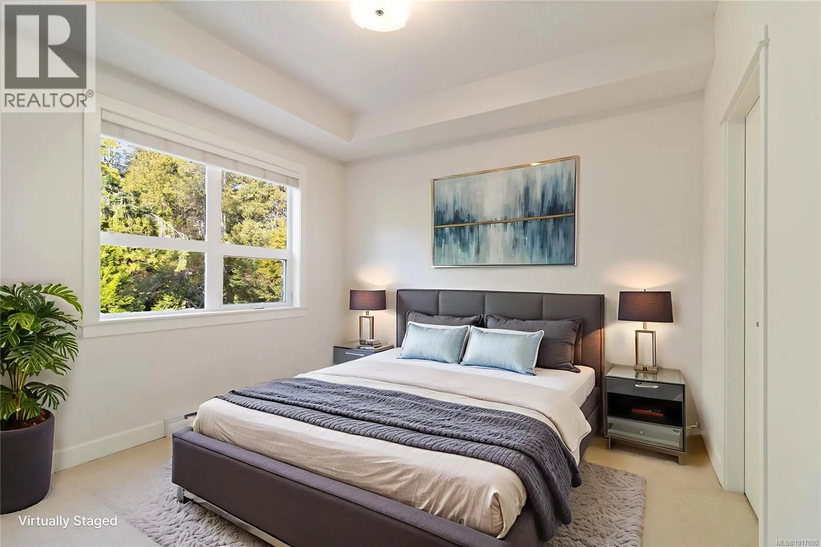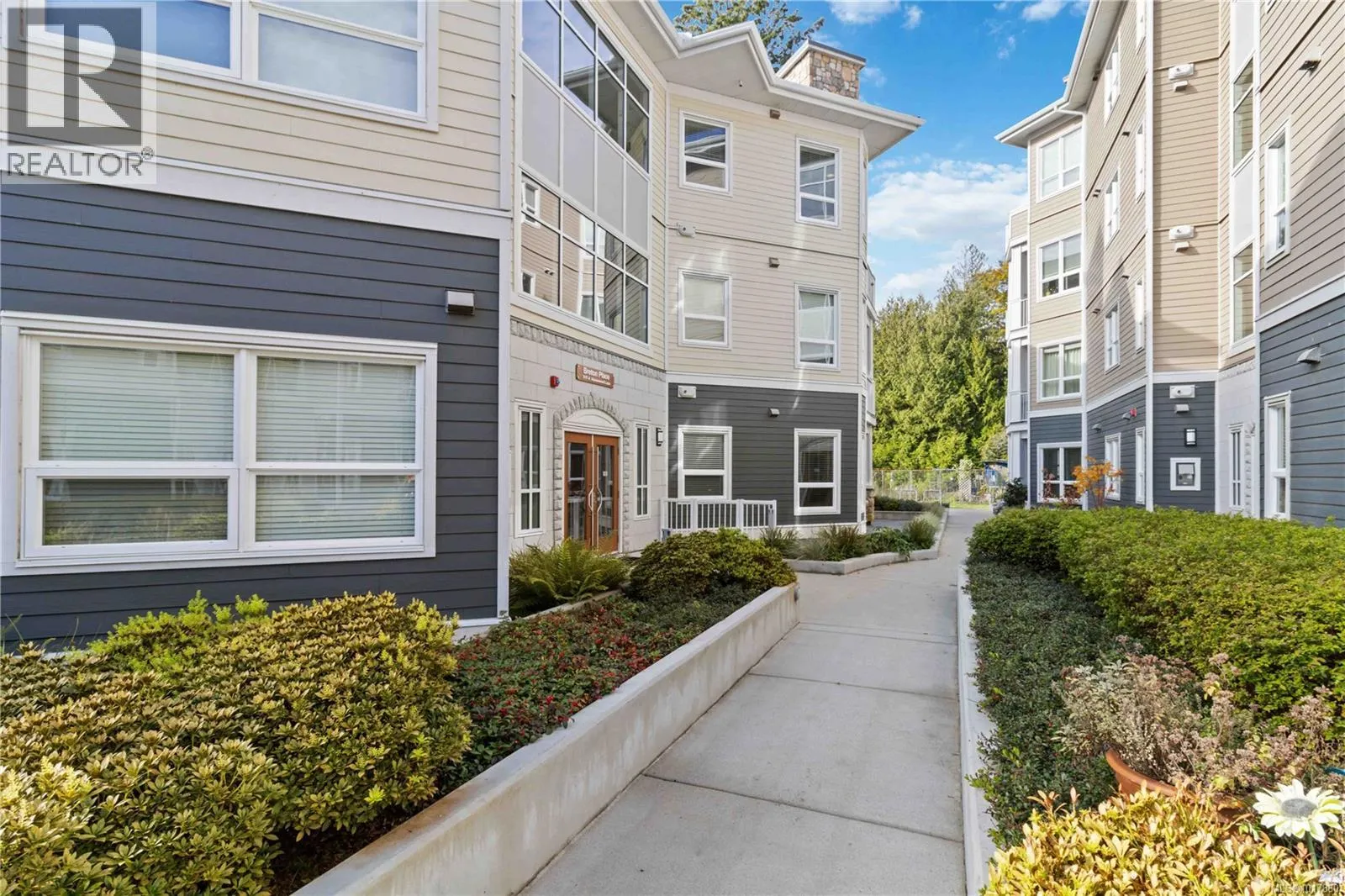 Experience elevated coastal living in this luxurious 2 bed, 2 bath condo with forest-framed ocean views at the sought-after Pacific Landing. Thoughtfully designed with overheight ceilings, a gas fireplace, heated bathroom floors, and a gourmet kitchen with quartz countertops, gas range, and large island for prep and entertaining. The covered balcony with gas BBQ hookup extends your living space outdoors, perfect for year-round West Coast enjoyment. The serene primary suite offers a walk-in closet and spa-style ensuite, while a full laundry room adds rare functionality. Secure underground parking, storage locker, and modern construction ensure peace of mind. Surrounded by walking trails, community gardens, and just steps to the sandy Esquimalt Lagoon, this vibrant seaside community sits minutes from Royal Roads University, Hatley Castle, the Galloping Goose Trail, and everyday amenities. A perfect blend of nature, luxury, and convenience â West Coast living at its finest. (id:27476)