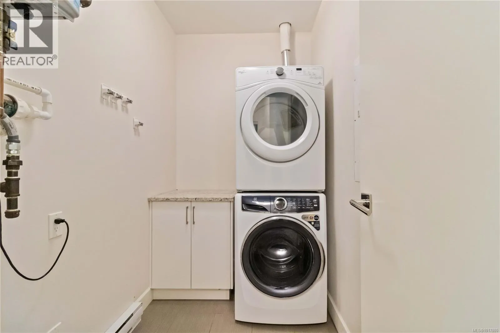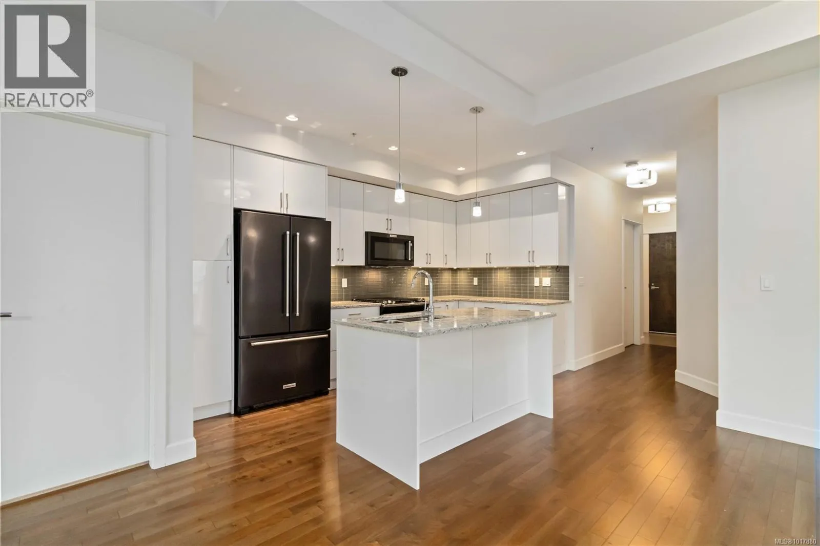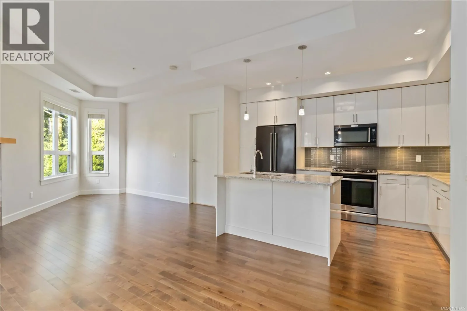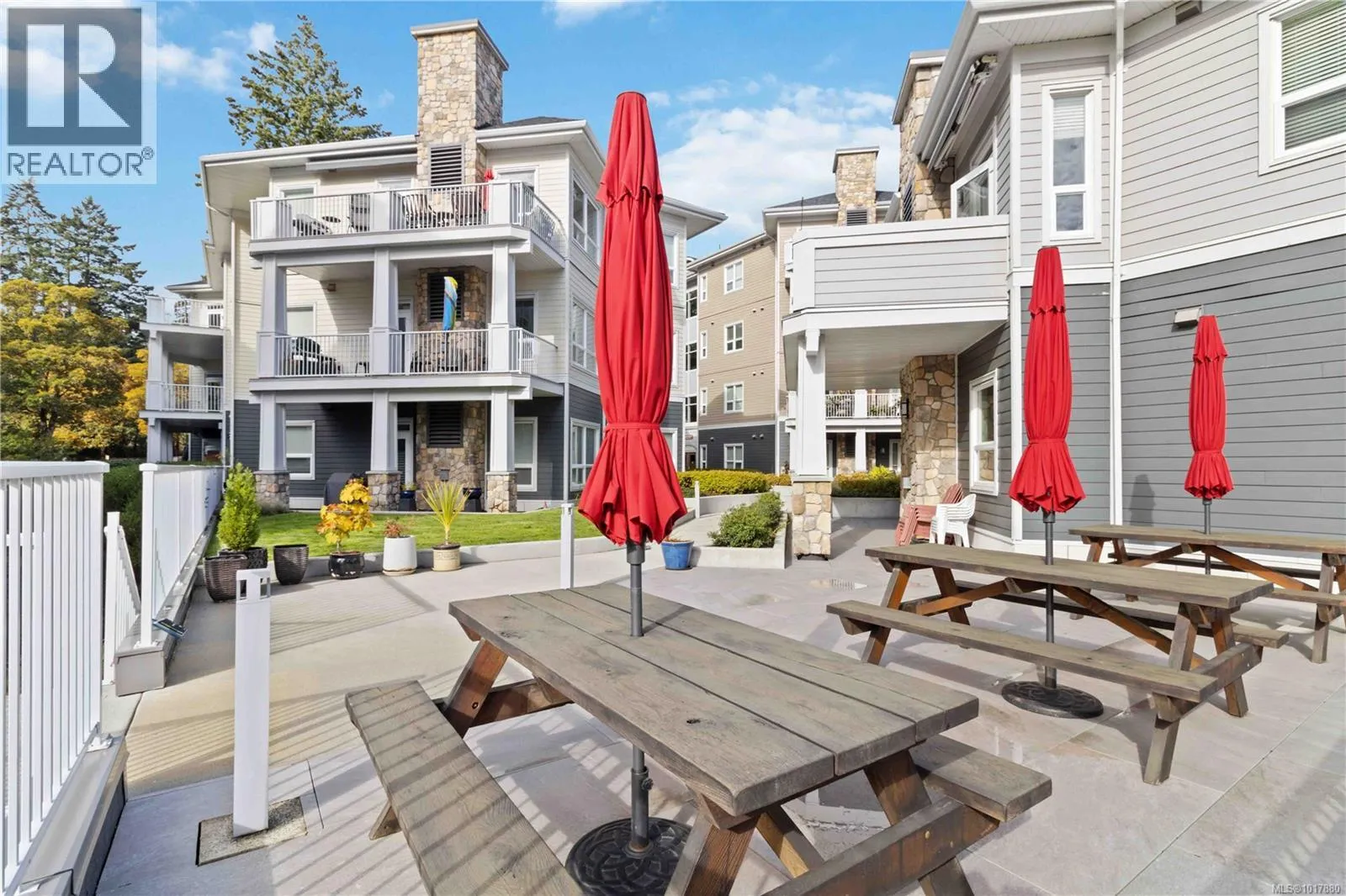 Experience elevated coastal living in this luxurious 2 bed, 2 bath condo with forest-framed ocean views at the sought-after Pacific Landing. Thoughtfully designed with overheight ceilings, a gas fireplace, heated bathroom floors, and a gourmet kitchen with quartz countertops, gas range, and large island for prep and entertaining. The covered balcony with gas BBQ hookup extends your living space outdoors, perfect for year-round West Coast enjoyment. The serene primary suite offers a walk-in closet and spa-style ensuite, while a full laundry room adds rare functionality. Secure underground parking, storage locker, and modern construction ensure peace of mind. Surrounded by walking trails, community gardens, and just steps to the sandy Esquimalt Lagoon, this vibrant seaside community sits minutes from Royal Roads University, Hatley Castle, the Galloping Goose Trail, and everyday amenities. A perfect blend of nature, luxury, and convenience â West Coast living at its finest. (id:27476)