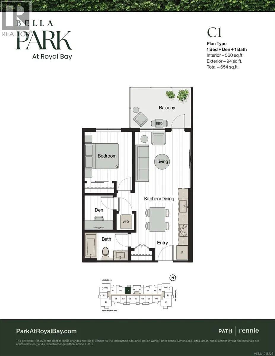 Discover the best of Royal Bay living at Bella Park, where thoughtful design, coastal beauty, and community come together. This lovely 1-bedroom + den, west-facing home overlooks the courtyard and captures the best of Royal Bayâs stunning sunsets, offering the perfect blend of style, functionality, and comfort with over-height ceilings and a sunny balcony. The sleek kitchen features Silestone quartz countertops, stainless steel appliances, an induction cooktop, and generous storage. Indulge in resort-style amenities, including a Clubhouse with a full kitchen and social lounge, fitness centre and yoga space, a wellness spa with an outdoor hot tub, sauna, cold plunge, and shower. Set on 2+ acres of landscaped green space with walking paths and community gardens, Bella Park offers thoughtful touches such as bike and kayak storage, and two inviting guest suites for visiting friends and family. Just steps to the beach, walking trails and your everyday amenities at the Commons. Price + GST. (id:27476)