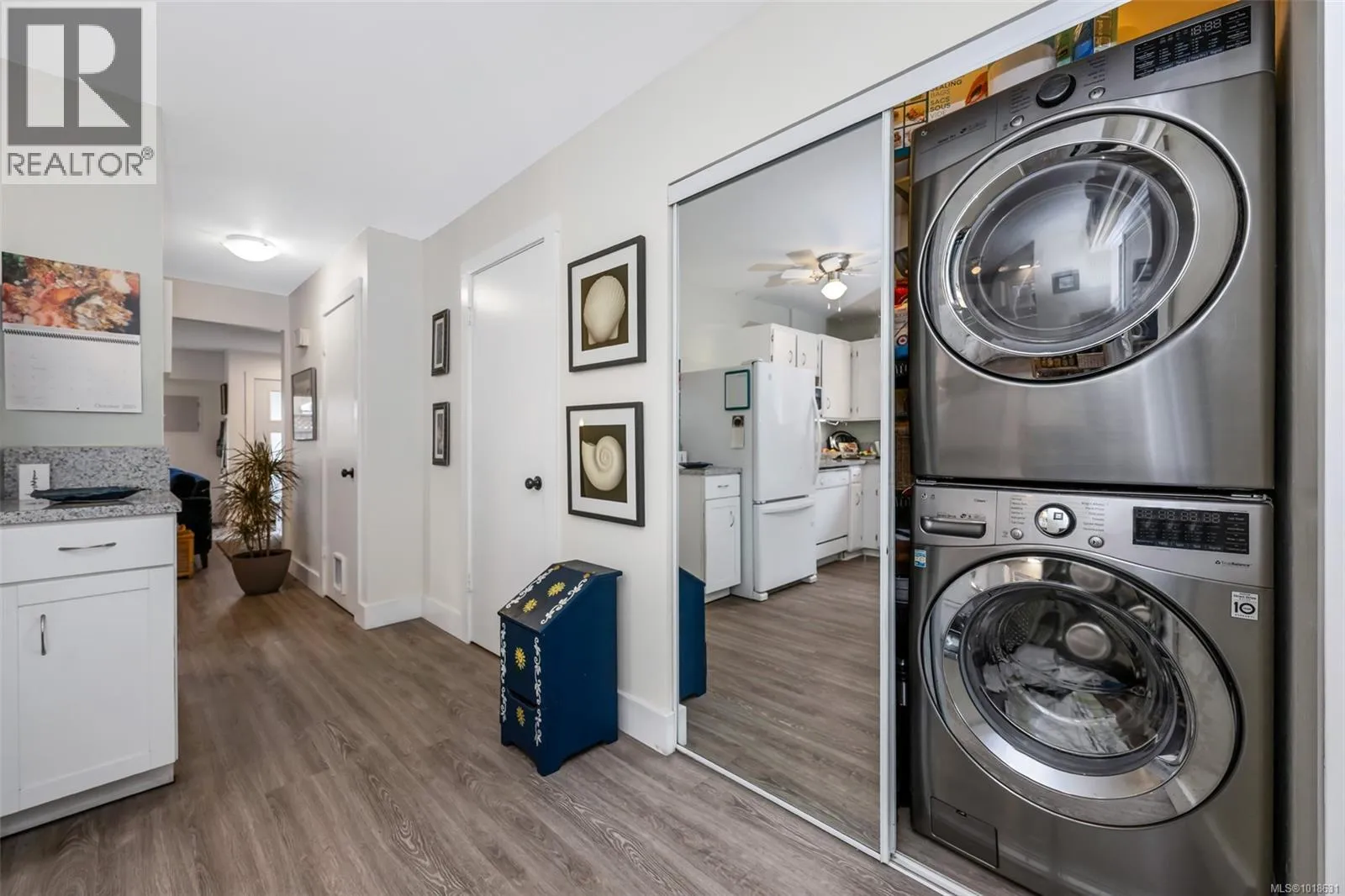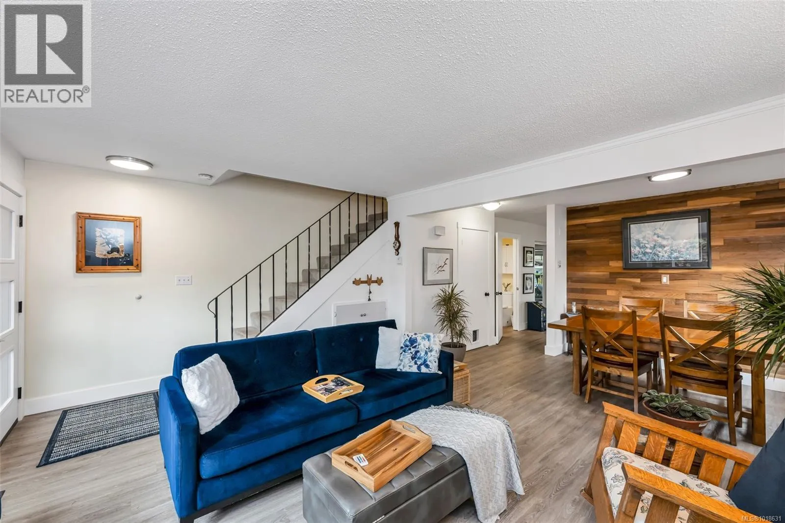 NO STRATA FEES â The lush, landscaped gardens are the star of this updated 3-bed, 2-bath half duplex. Enjoy 9 fruit varieties, 4+ veggie beds, hydrangeas, and a dreamy moonlight flower garden. Inside, youâll find fresh vinyl plank flooring, new baseboards, lighting, and two fully renovated bathrooms. The crisp âSimply Whiteâ paintâan award-winning shade that flatters both cool and warm tonesâbrightens every room. The main level features a spacious, open layout with a cozy gas fireplace, a dining area, and a kitchen that opens to a large deck and a fenced backyard. Bonus features include a 3-season Oasis, RV parking, a movable rear gate, and even room for a chicken coop. Two storage sheds, quiet neighbours, and a short walk to shops and parks complete the picture. All thisâfor the price of a condo! (id:27476)
