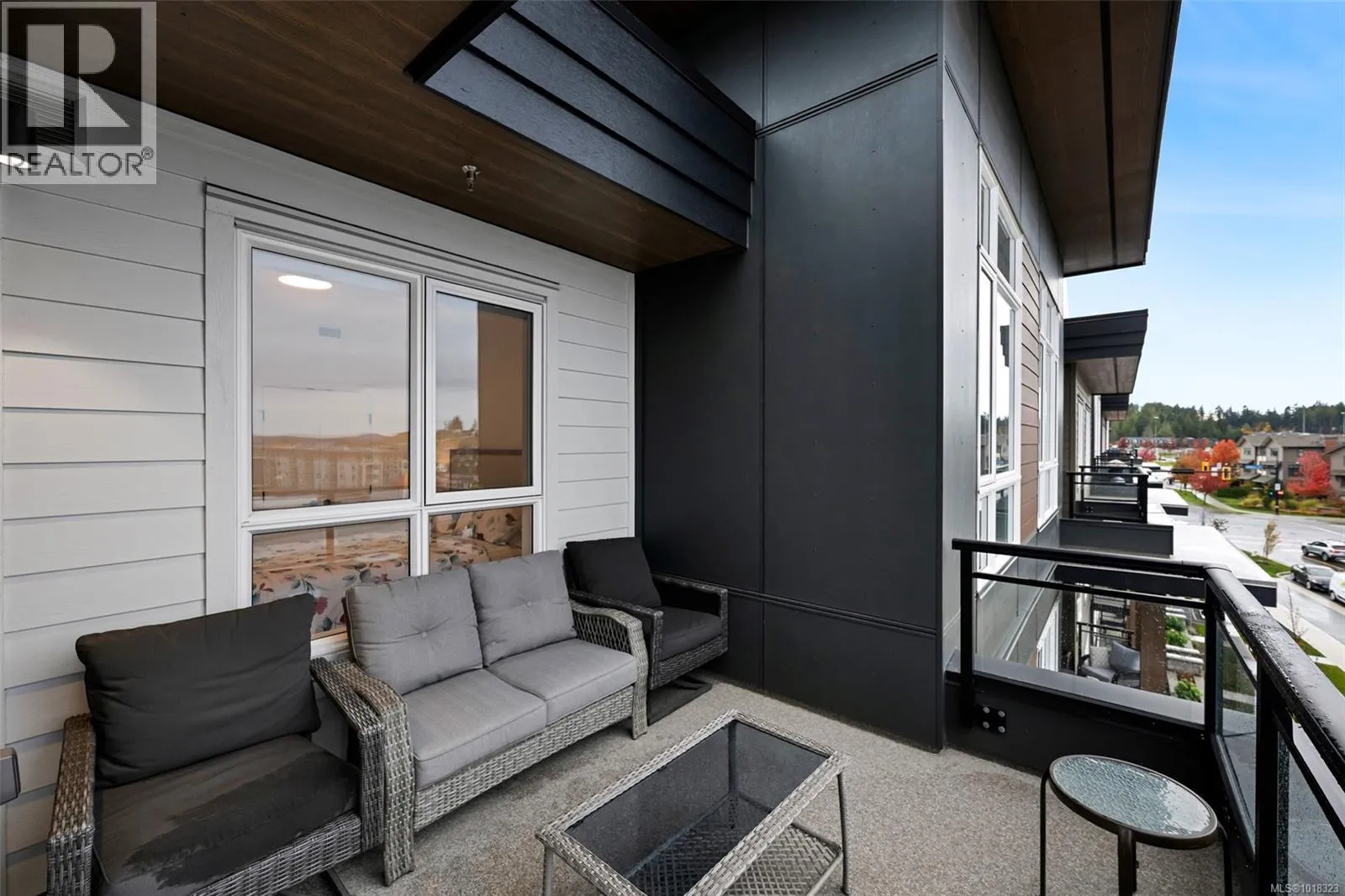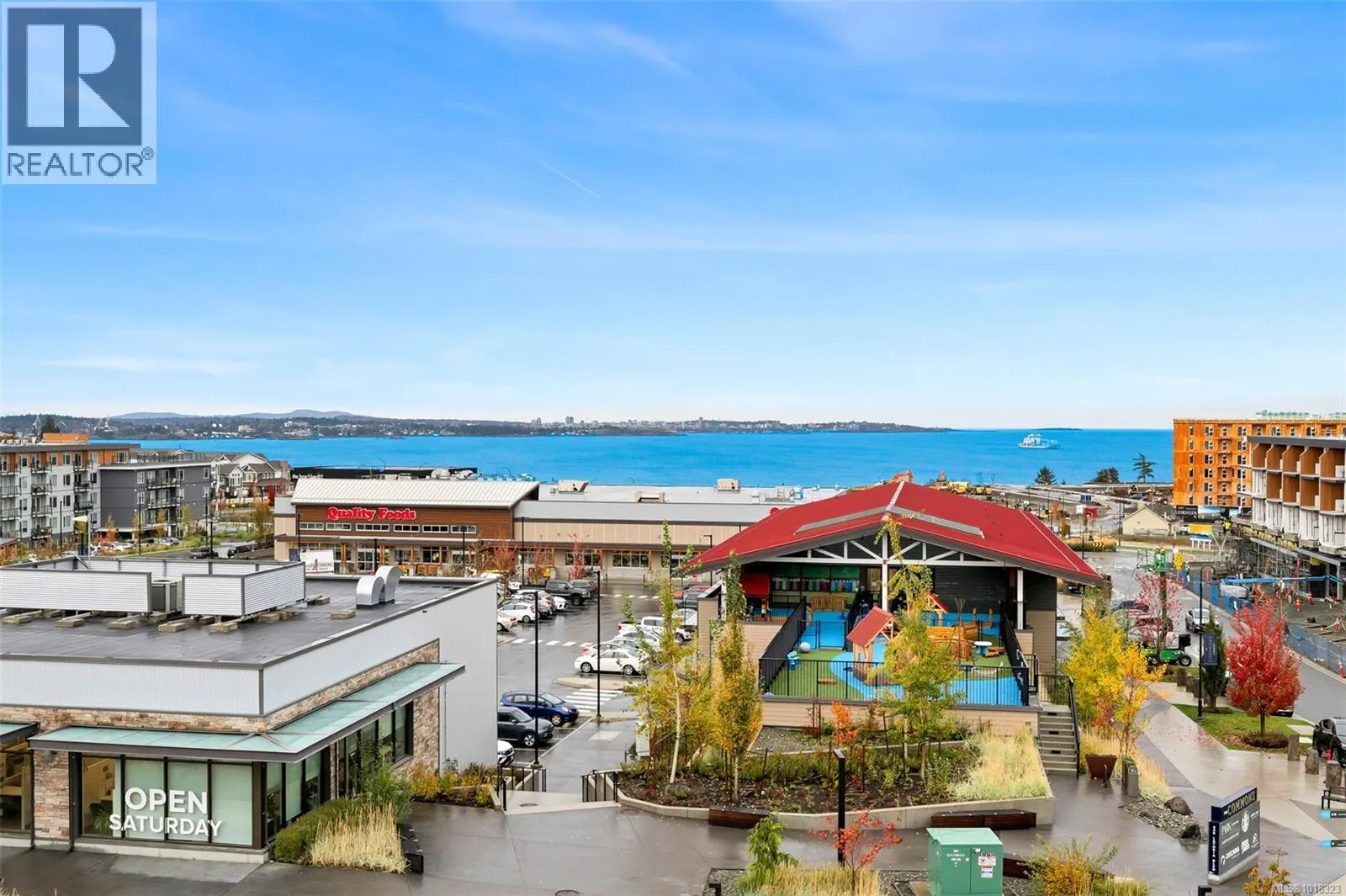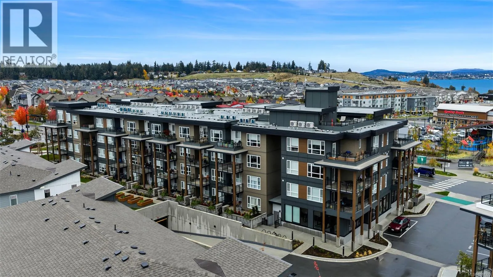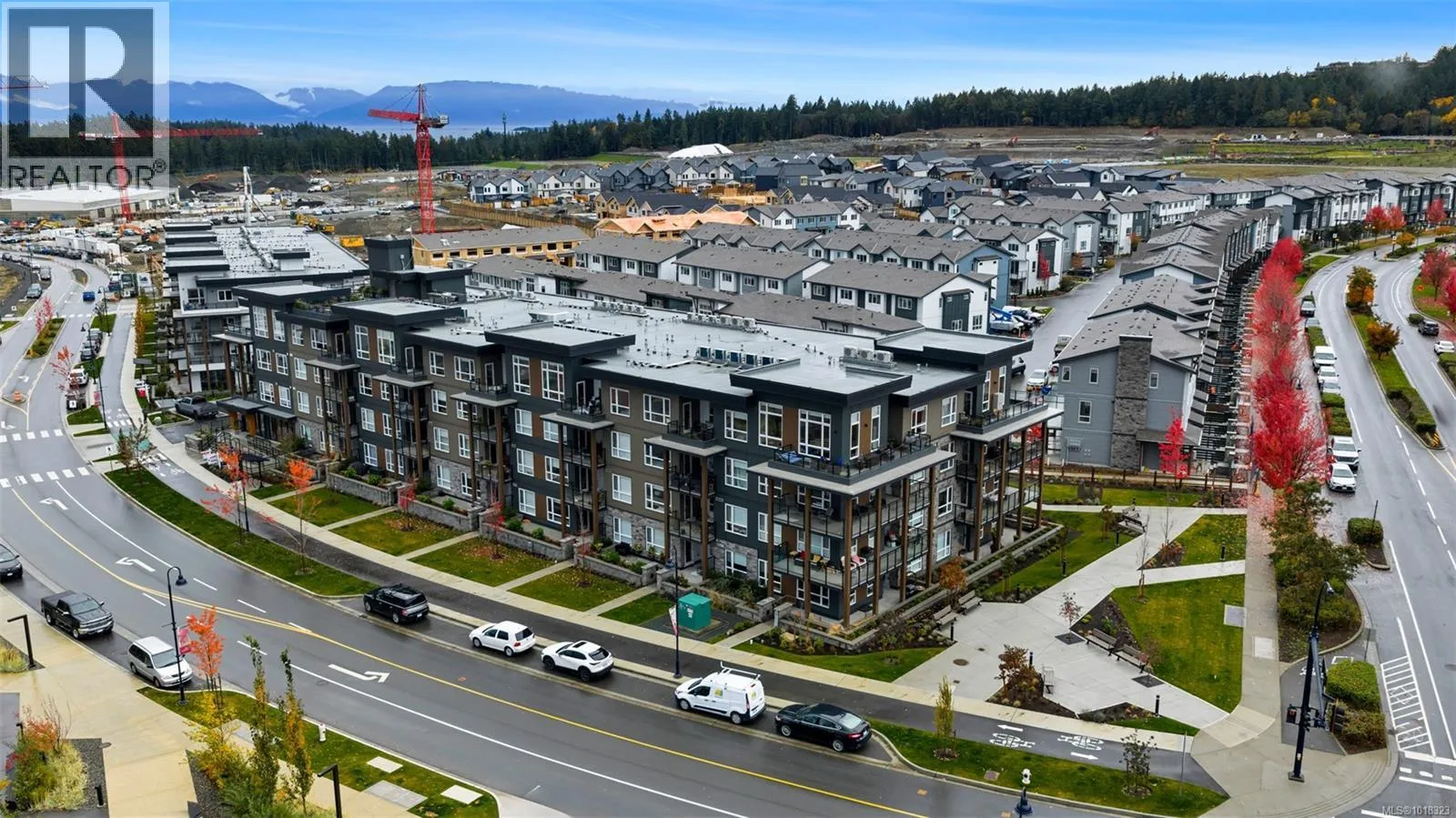Better Than New, No GST! Welcome to Eliza at Royal Bay where contemporary design meets coastal lifestyle. Top floor, 2 bedroom, 2 bathroom, 2 parking stalls ready for you to move on in. Enjoy panoramic ocean and mountain views from your private deck and inside enjoy modern finishes and large windows that flood the space with natural light. Entertain friends on the rooftop terrace with lounge areas, outdoor kitchen and common bbq, or in the owner's lounge complete with kitchen for larger gatherings. After your workout in the gym, take your dog (no size restrictions) for a wander through the beautiful community of Royal Bay or down to the beach and then stop in at the dog wash station to get fido clean fresh for the day. Groceries, cafes, dining, and so much more just out the lobby doors, everything you need is steps away. Life at Eliza is about ease, connection and the best of West Coast Living, all wrapped up into one perfect package. (id:27476)