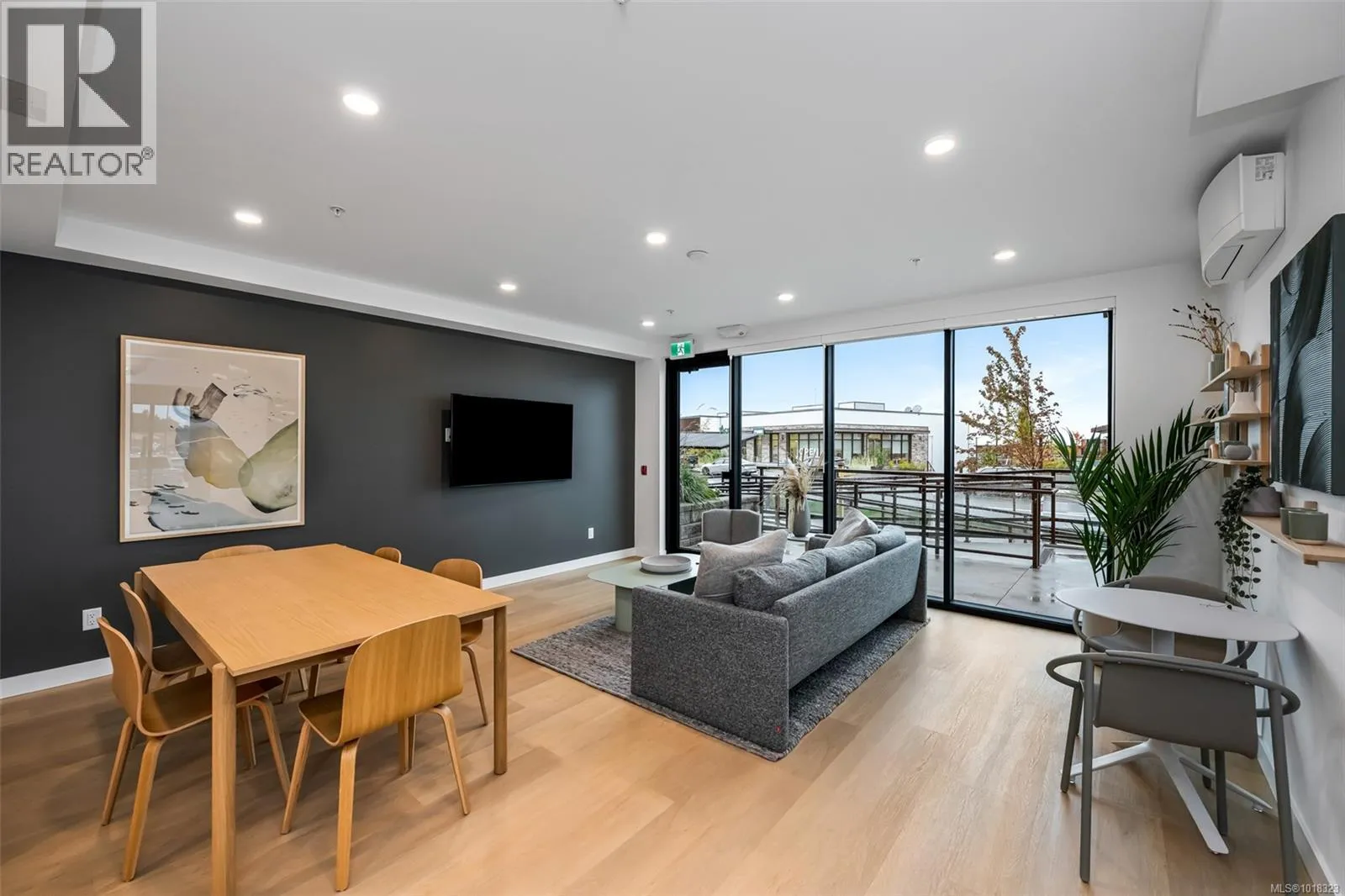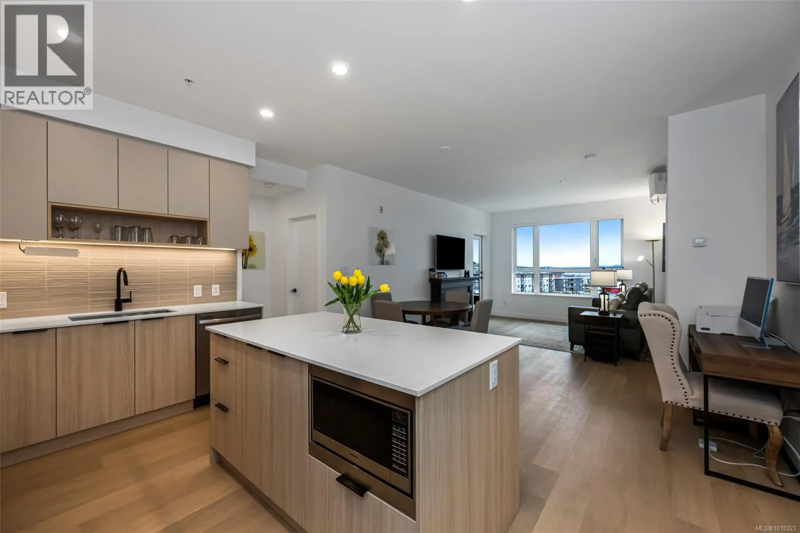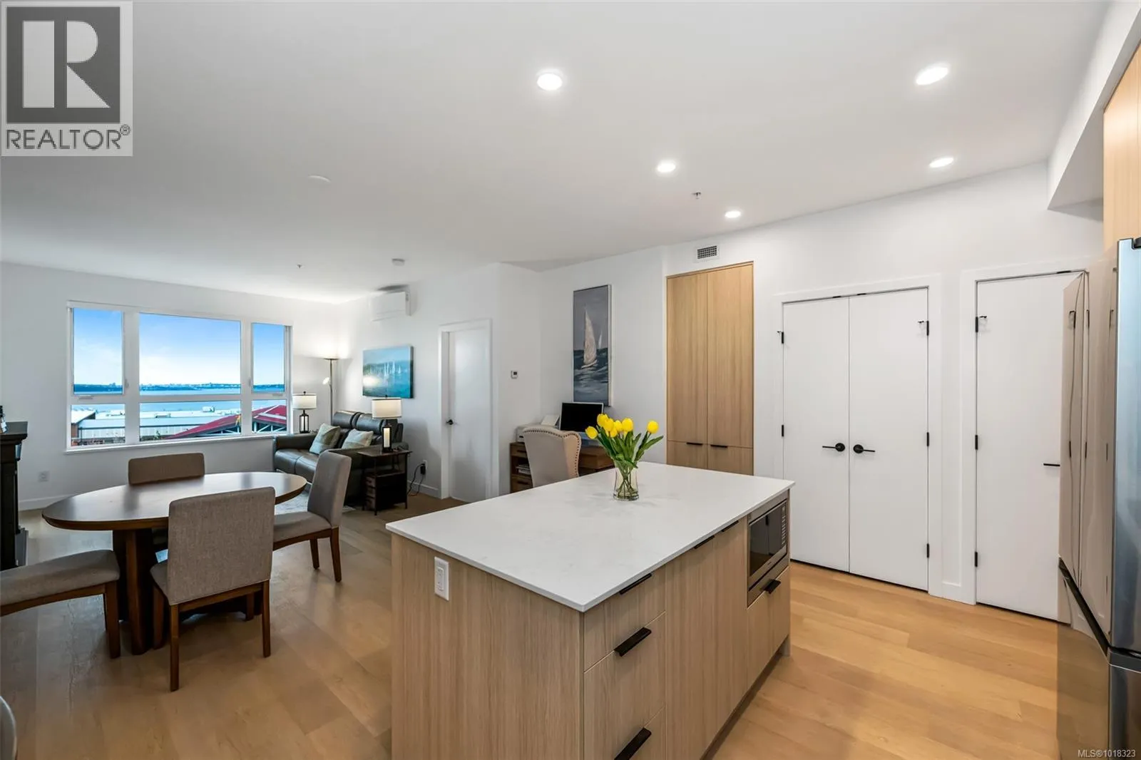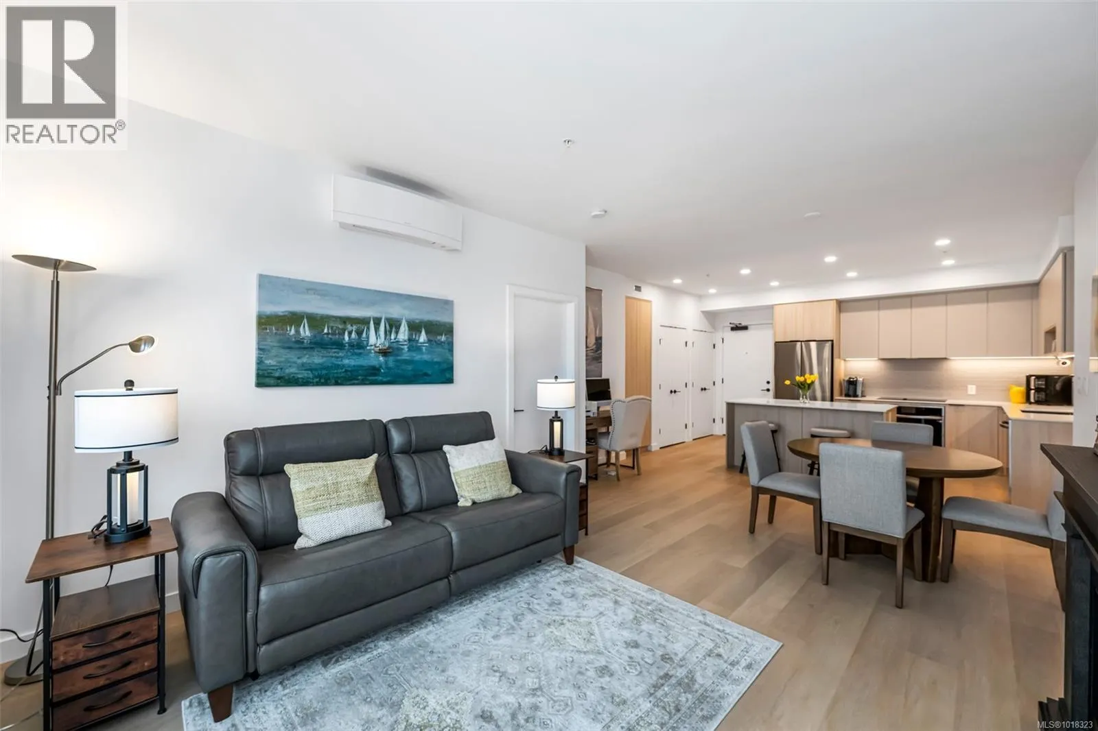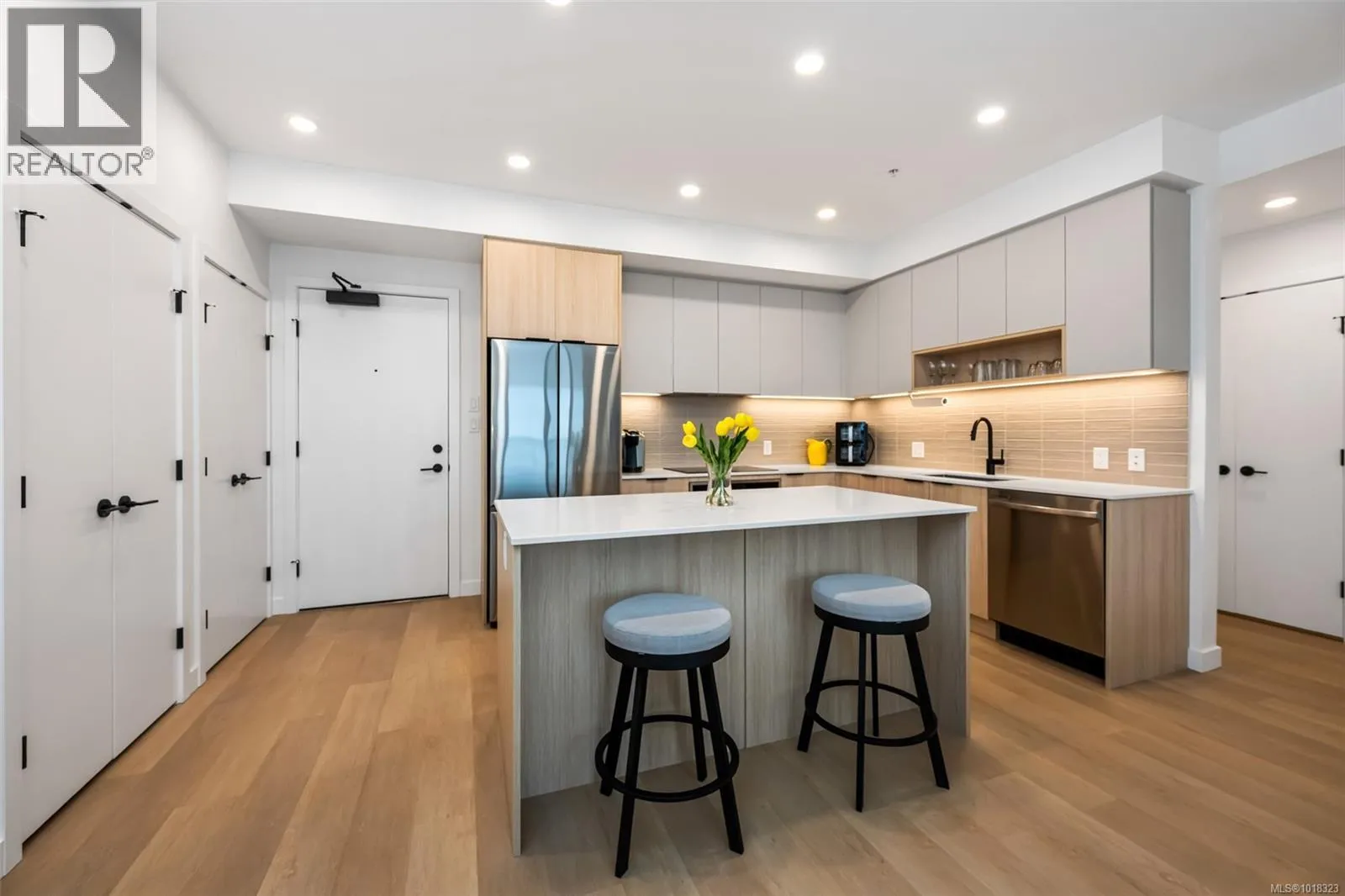Better Than New, No GST! Welcome to Eliza at Royal Bay where contemporary design meets coastal lifestyle. Top floor, 2 bedroom, 2 bathroom, 2 parking stalls ready for you to move on in. Enjoy panoramic ocean and mountain views from your private deck and inside enjoy modern finishes and large windows that flood the space with natural light. Entertain friends on the rooftop terrace with lounge areas, outdoor kitchen and common bbq, or in the owner's lounge complete with kitchen for larger gatherings. After your workout in the gym, take your dog (no size restrictions) for a wander through the beautiful community of Royal Bay or down to the beach and then stop in at the dog wash station to get fido clean fresh for the day. Groceries, cafes, dining, and so much more just out the lobby doors, everything you need is steps away. Life at Eliza is about ease, connection and the best of West Coast Living, all wrapped up into one perfect package. (id:27476)