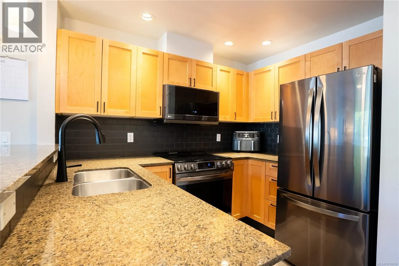 Welcome to Unit 103 at 631 Brookside Road â a thoughtfully designed 826 sq. ft. ground-level condo offering modern comfort in a highly desirable neighbourhood. Featuring 2 bedrooms and 2 bathrooms, this home is perfectly laid out for both functionality and privacy. Step into the open-concept living and dining area with 9-foot ceilings that create a bright and airy feel, seamlessly connecting to the kitchen with full-sized appliances and ample counter space. The primary bedroom includes a walk-in closet and a 4-piece ensuite, beautifully updated with quartz counters, while the second bedroom and nearby 3-piece bath offer modern finishes and ideal accommodation for guests or a home office. A convenient laundry area with additional storage completes the interior. Comfort is prioritized year-round with not one, but two efficient heat pump heads, providing both heating and cooling throughout the home. Enjoy the outdoors with two private patios â perfect for morning coffee or entertaining with friends. With secure entry, well-planned flow, and proximity to Westshore amenities, schools, trails, and easy transit, this home offers the perfect balance of comfort and convenience. Whether youâre a first-time buyer, downsizer, or investor, this is an excellent opportunity to own in one of Colwoodâs most accessible locations. (id:27476)