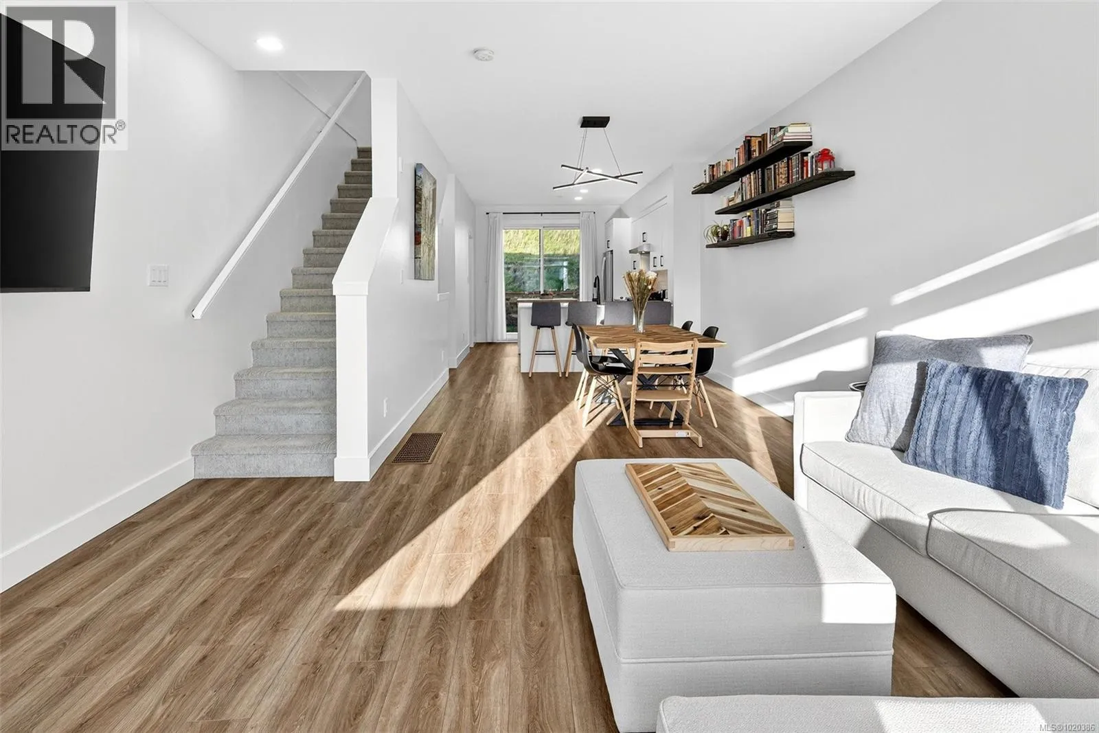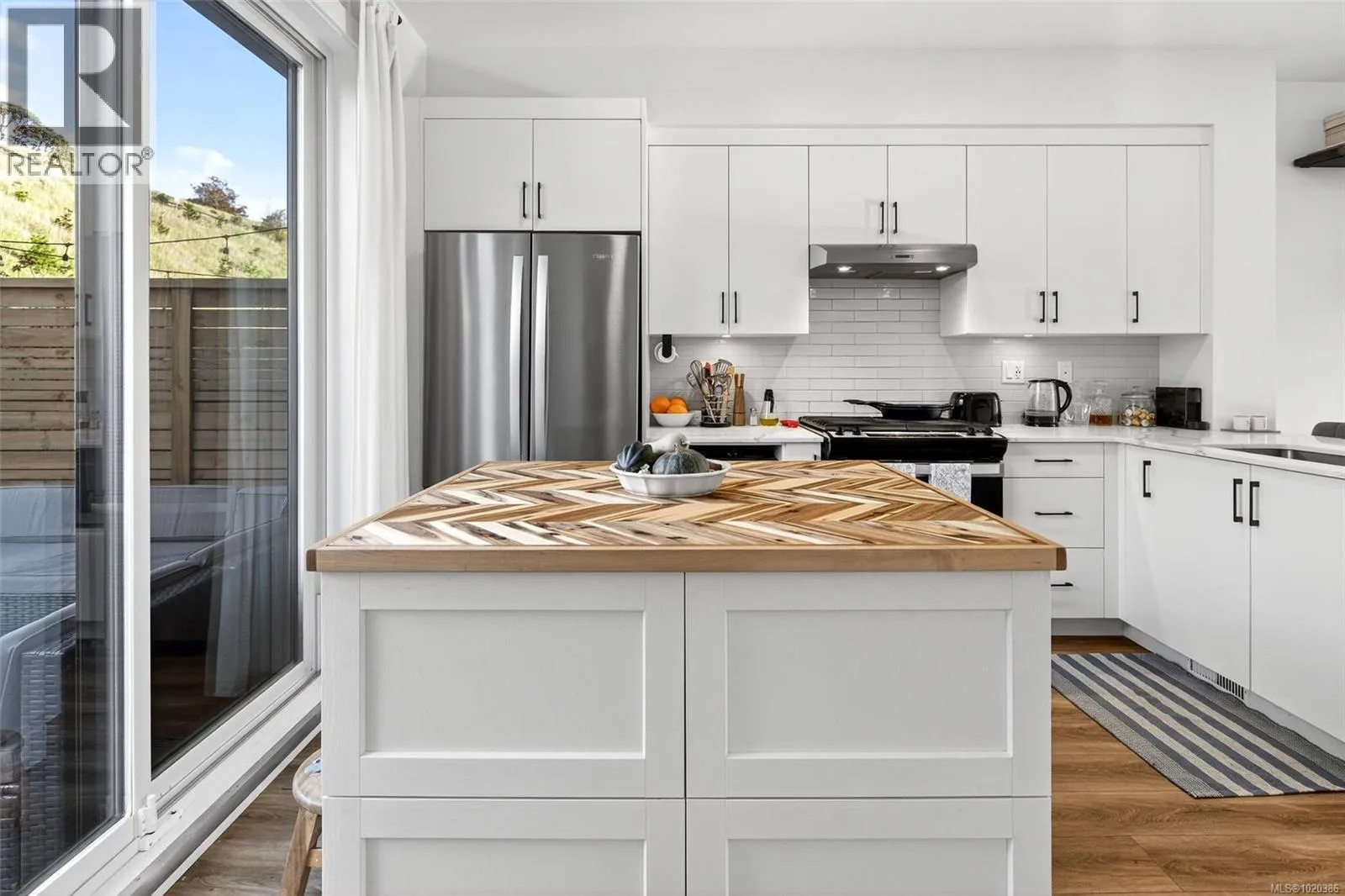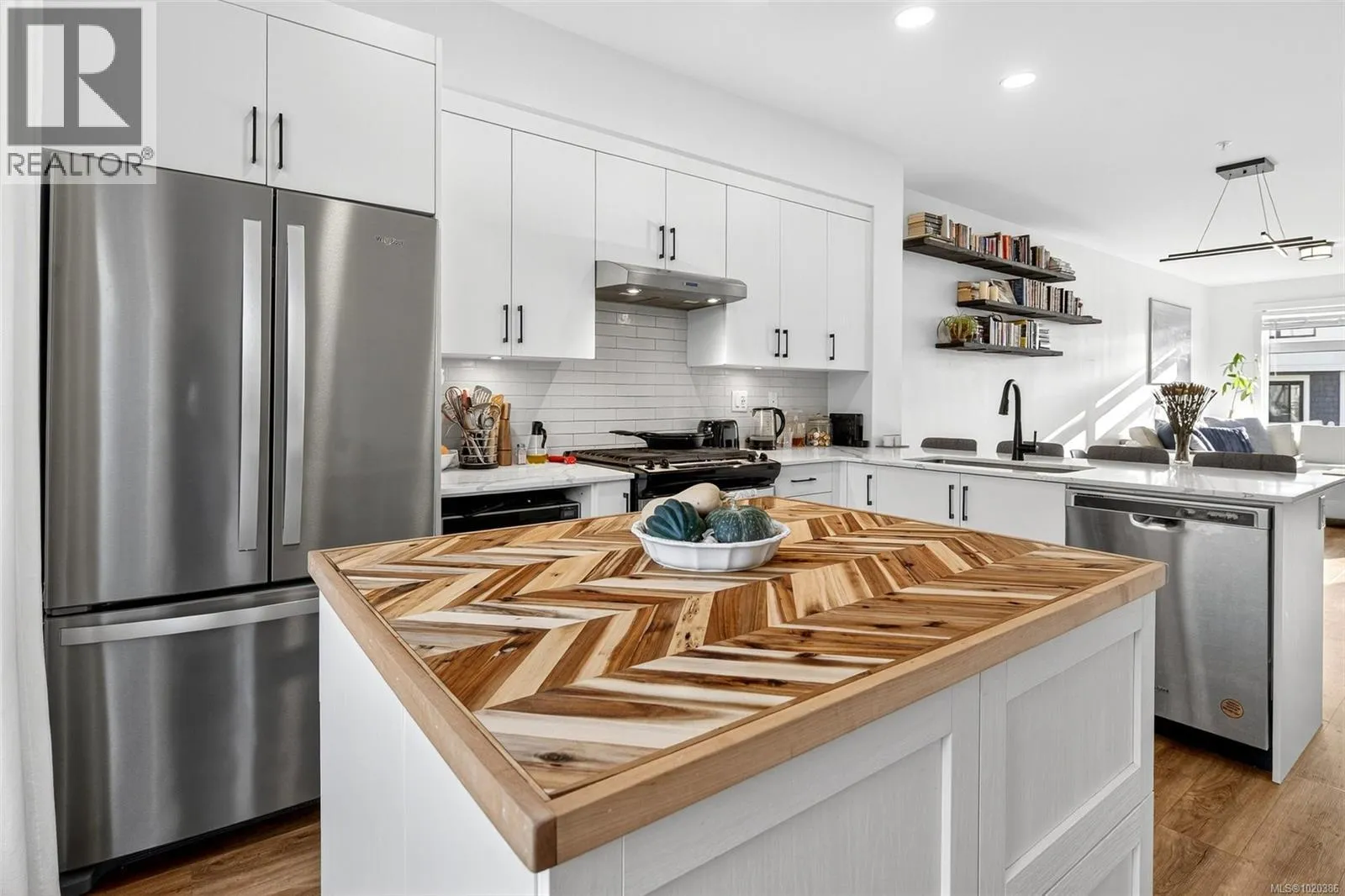 Like New but no GST! Immaculately kept Royal Bay townhome with south facing living area that is bathed in natural light. This property represents exceptional value in a private and quiet community. Get all the features of a detached home at a fraction of the cost. Lower level features large storage space, tandem double car garage that can be converted into an office, gym, or studio space while maintaining parking space. Main living area is open concept with luxury flooring, built in shelving, and movable kitchen island that has customizable storage. Primary bedroom faces the private back yard and is not with-in sight of other homes. Primary Ensuite is sprawling and luxurious, featuring heated tile floors, frameless glass shower, and floating double vanity. This property stands out as one of few positioned perfectly to maintain privacy with-in the community. Seller is open to customizing the home to meet your specific needs. Reach out today to book your private tour. (id:27476)