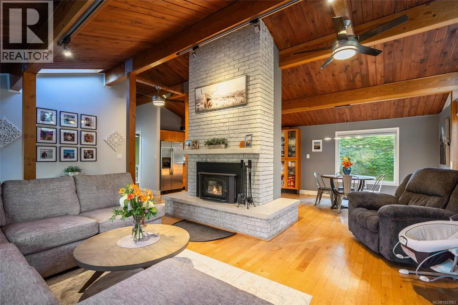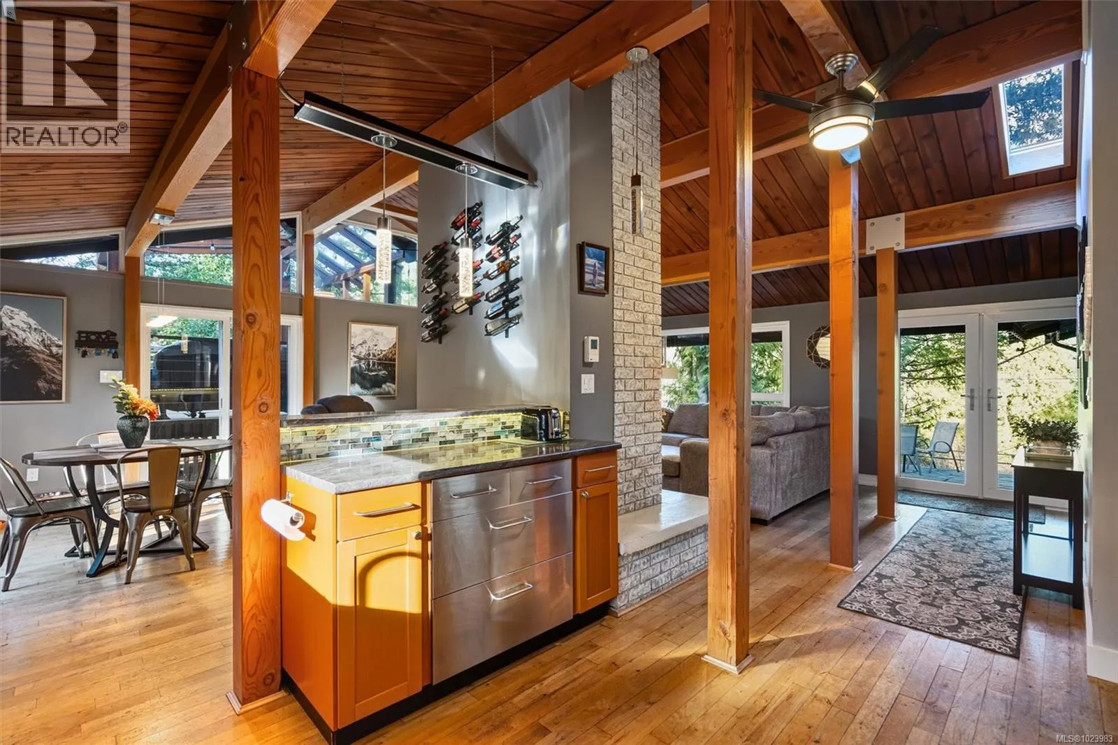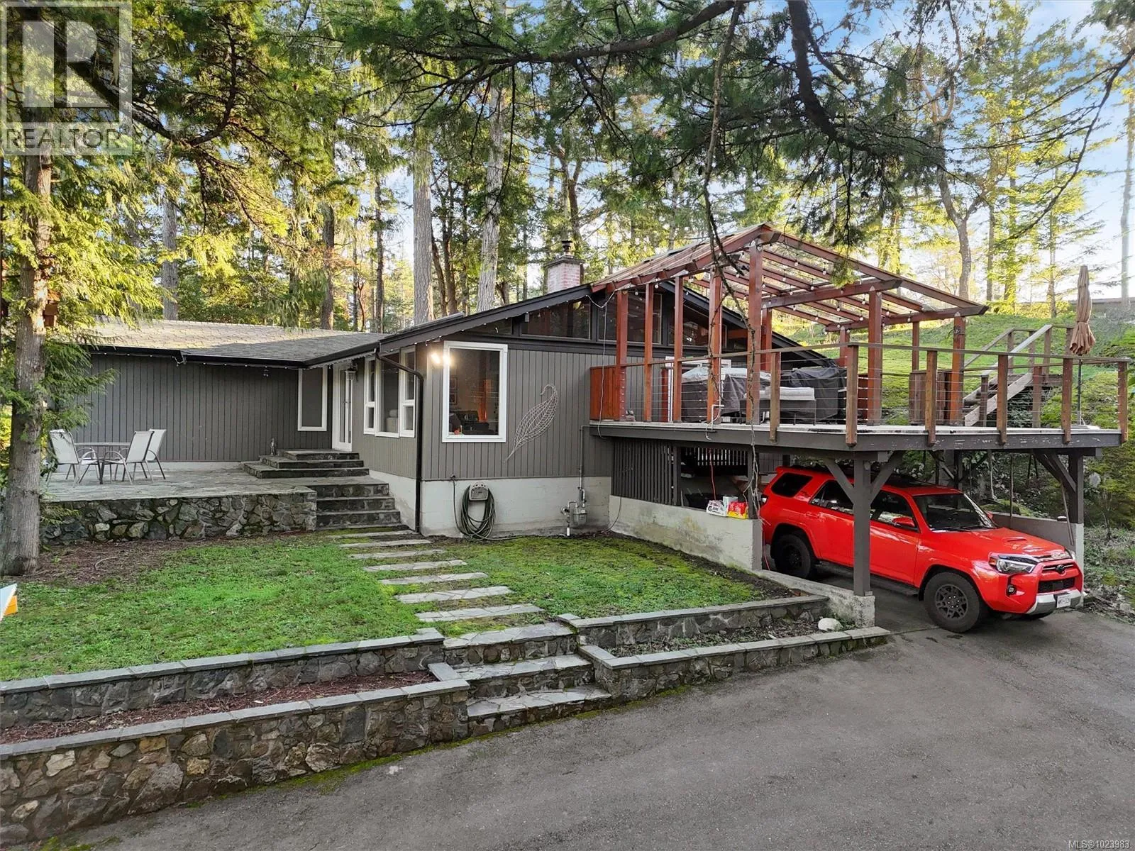 Welcome to 665 Latoria Roadâan exceptional 1.09-acre property ideally positioned at the entrance to Olympic View Golf Course, just minutes from Royal Bay and downtown Langford. This thoughtfully renovated rancher offers 3 bedrooms and 2 bathrooms within a beautifully designed open-concept layout featuring wood floors, vaulted post-and-beam ceilings, a cozy wood-burning fireplace, and a heat pump. Multiple patios in nearly every orientation allow you to enjoy sun throughout the day, while mature landscaping creates private outdoor seating areas and walking paths that fully embrace the propertyâs natural setting. A separate workshop provides excellent flexibility for hobbies, working from home, or a personal gym. Here, privacy and space come without sacrificing convenienceâan increasingly rare opportunity. (id:27476)