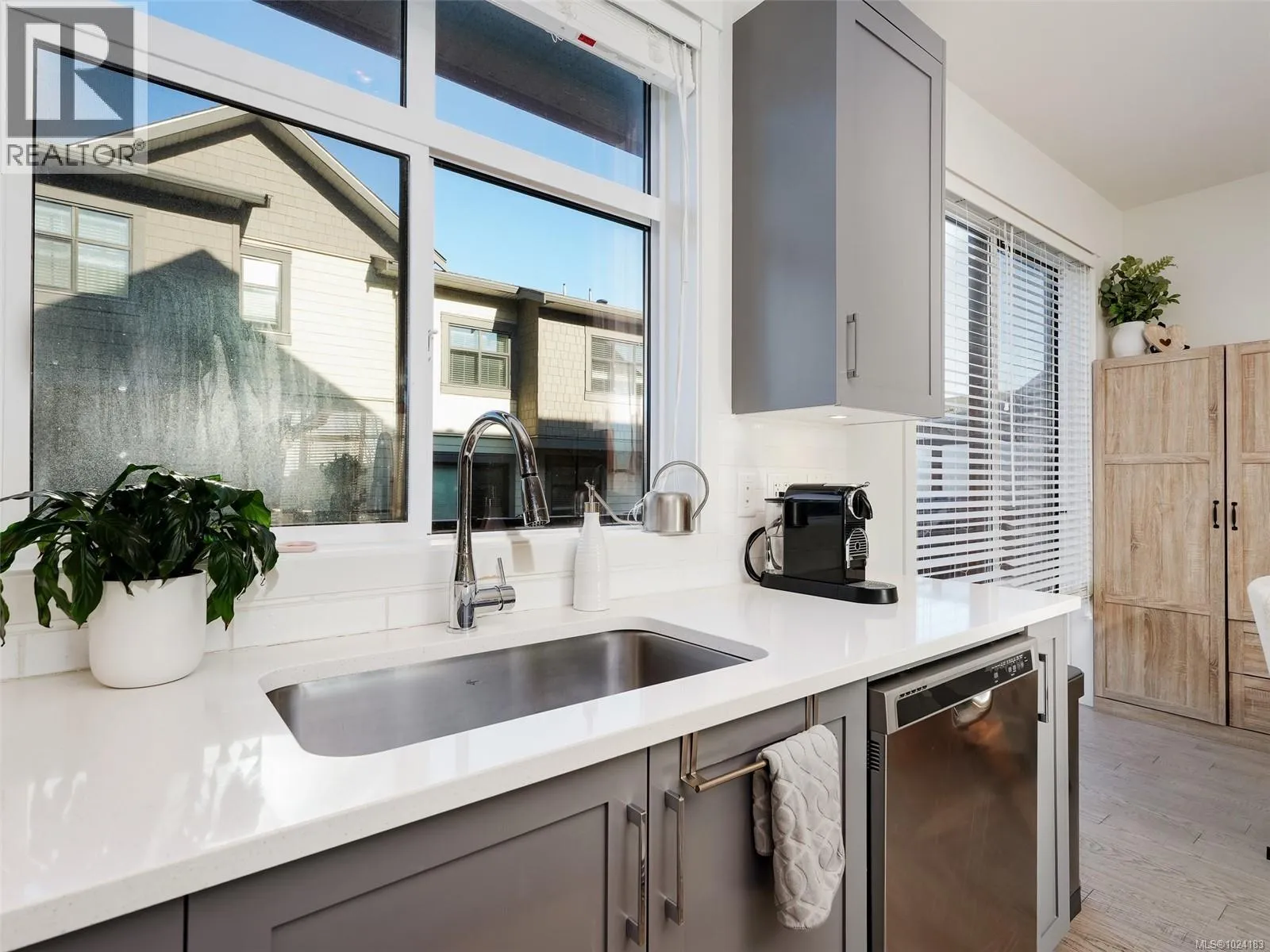 Experience modern coastal living in this stylish, sun-drenched 3-level townhome, ideally located in the heart of the vibrant Royal Bay neighborhood. Enjoy the convenience of being steps from Royal Beach Park, a brand new shopping center, and a top-rated secondary schoolâeverything your family needs is right at your doorstep. This thoughtfully designed home offers 1,500 sq. ft. of contemporary living space, featuring two spacious bedrooms, each with its own private en-suite bathroomâperfect for comfort and privacy. Entertain with ease on the open-concept main floor, where hardwood floors flow seamlessly through the living and dining areas. The gourmet kitchen boasts quartz countertops, a modern range, and direct access to a private patioâideal for morning coffee or evening gatherings. Additional highlights include a double car garage at the rear, a low-maintenance fenced front yard, and sleek, modern finishes throughout. This is your opportunity to enjoy the best of seaside living in a growing, family-friendly community. (id:27476)