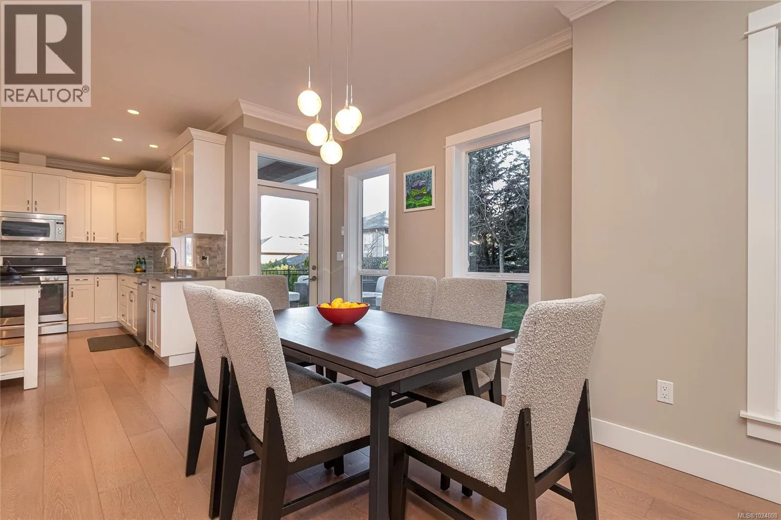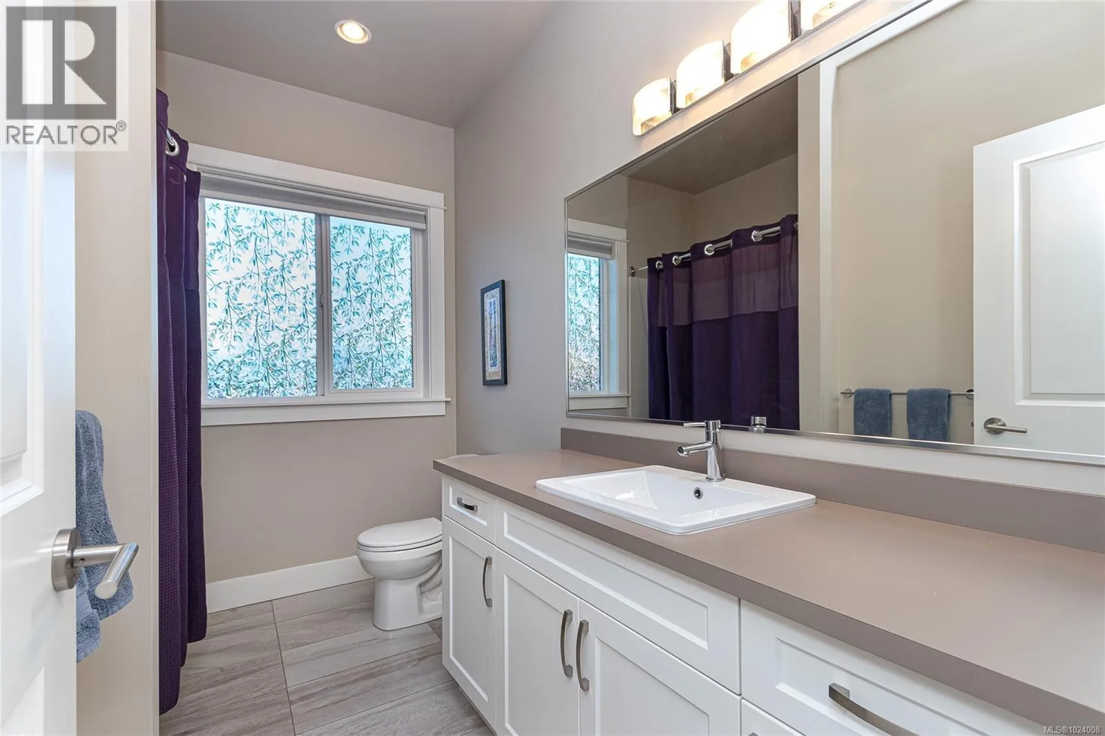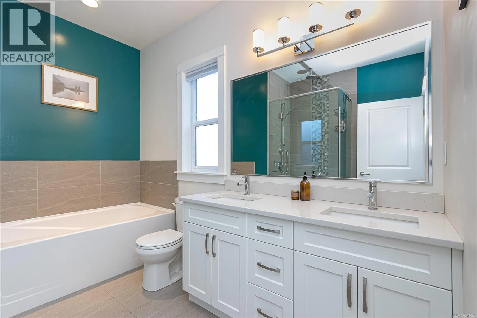 The perfect family home awaits in the peaceful Bezanton Park area of Colwood. This thoughtfully designed, 2014-built home offers a rare and sought-after floor plan with four spacious bedrooms on the upper level. Tucked away on a quiet cul-de-sac beside a natural green space park, enjoy exceptional privacy while taking in forest views through massive floor-to-ceiling windows that flood the home with natural light and nature. Just up the street is Coleman Park and playgroundâideal for local kids. The no-step entry main floor features a spacious, well-laid-out open living area perfect for family life and entertaining. The kitchen includes quartz countertops, a walk-in pantry, a freestanding granite-top island, a natural gas stove, and a window over the sink overlooking the backyard. The roomy living area showcases a natural gas fireplace and serene wooded park outlook. A versatile family room works perfectly as a media room, home office, guest bedroom, or playroom. Upstairs, the primary suite enjoys park views and a spa-inspired 6-piece ensuite with a rain head shower, soaker tub, and twin sinks. Comfort is enhanced with in-floor radiant heating throughout the homeânot just in the bathrooms. Additional highlights include easy-care landscaping, an EV charger in the double garage, walkable public transit, and a short bike ride to beaches and most amenities. Get ready for summer and get into 3649 Coleman Pl. (id:27476)