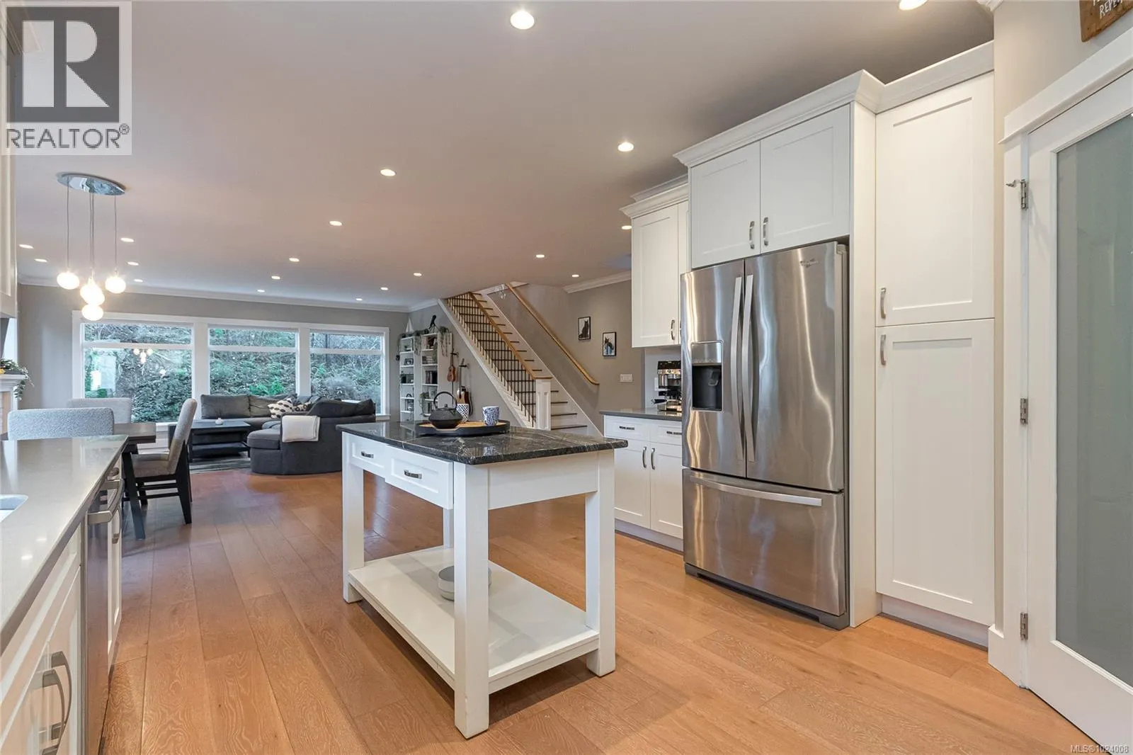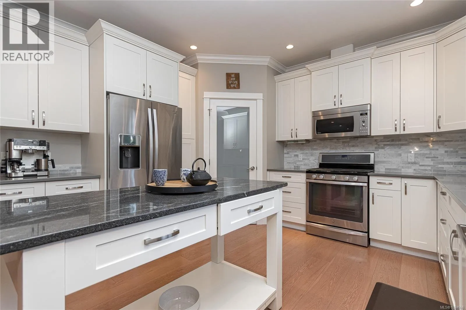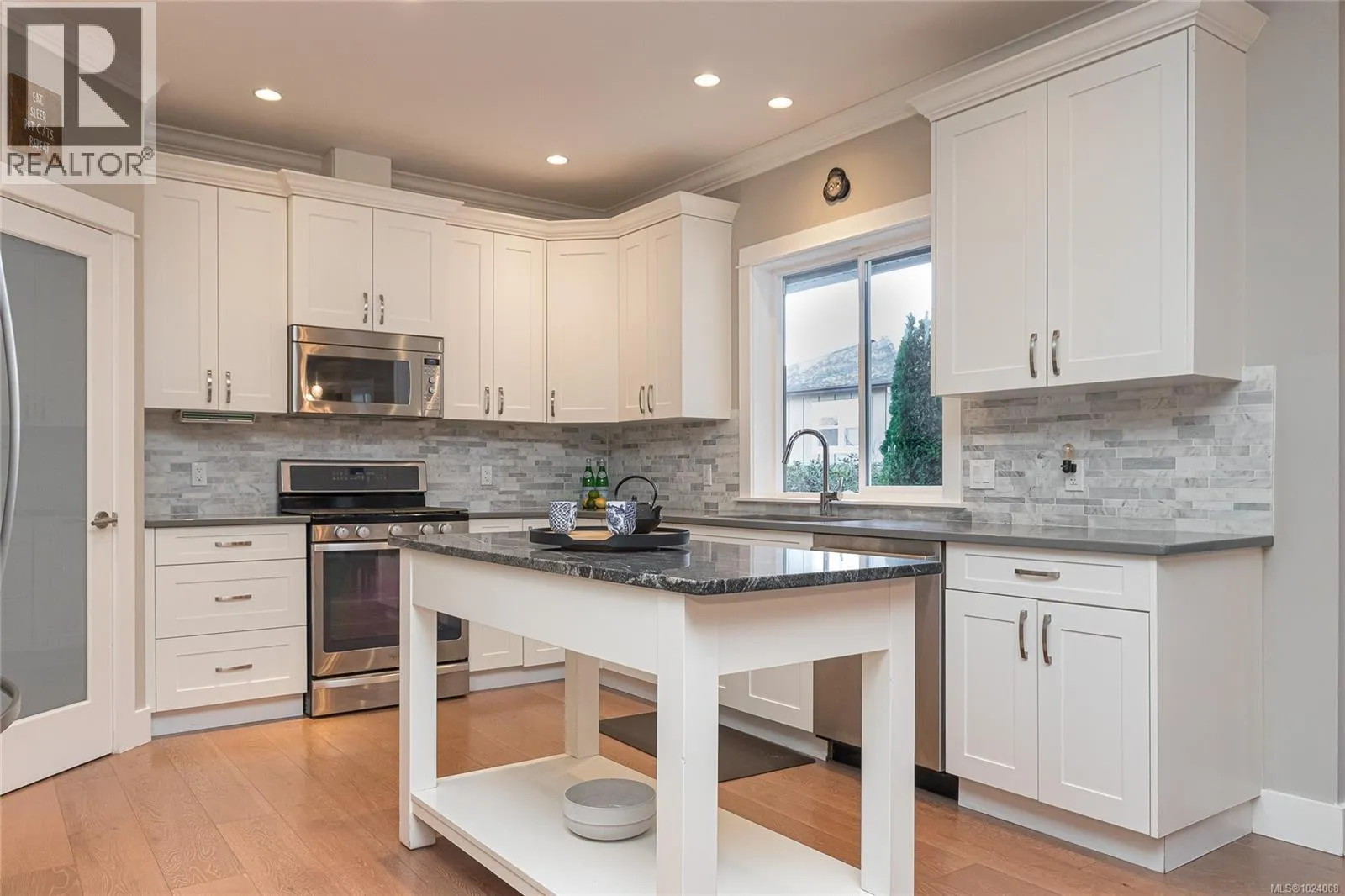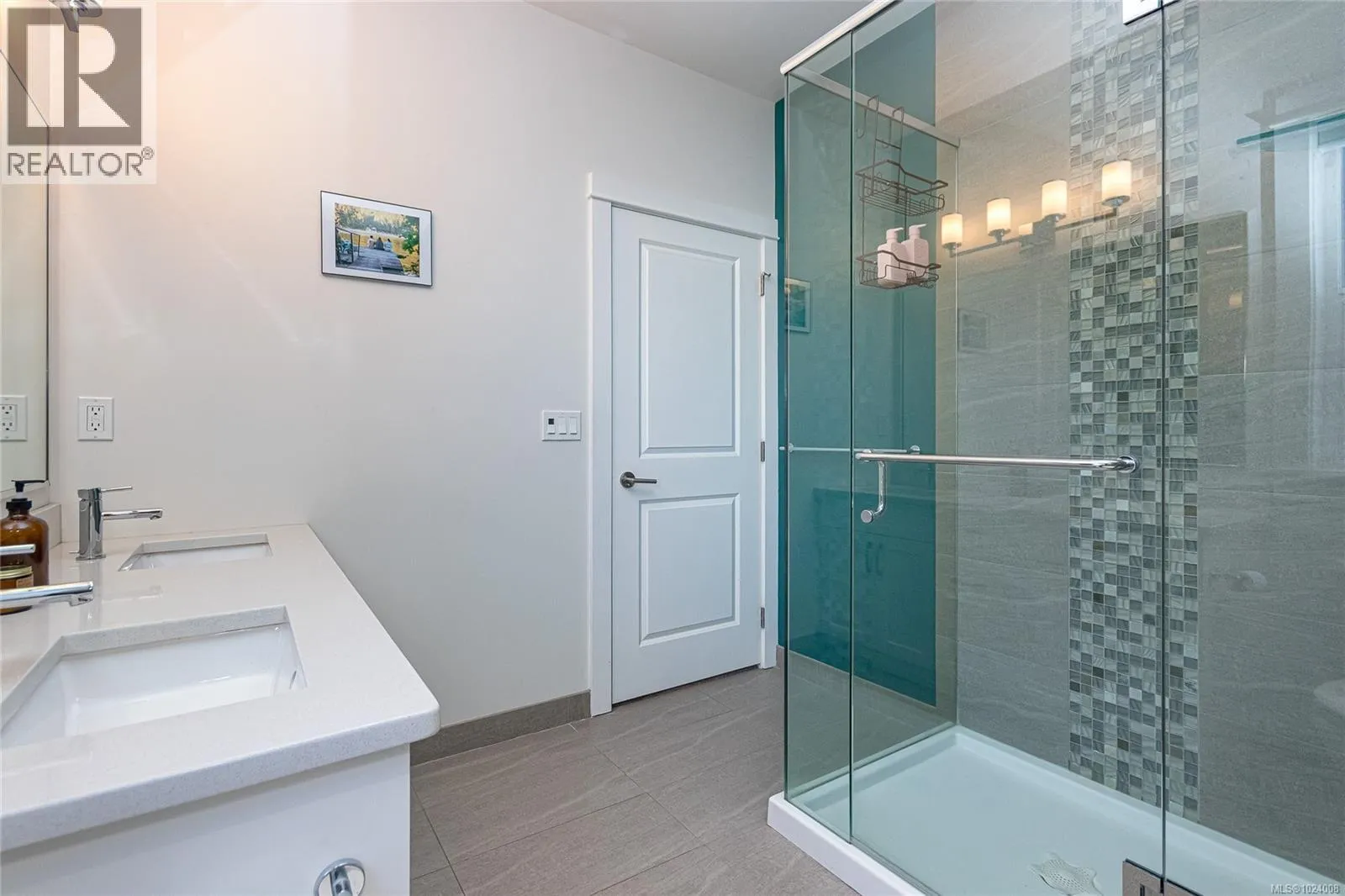 The perfect family home awaits in the peaceful Bezanton Park area of Colwood. This thoughtfully designed, 2014-built home offers a rare and sought-after floor plan with four spacious bedrooms on the upper level. Tucked away on a quiet cul-de-sac beside a natural green space park, enjoy exceptional privacy while taking in forest views through massive floor-to-ceiling windows that flood the home with natural light and nature. Just up the street is Coleman Park and playgroundâideal for local kids. The no-step entry main floor features a spacious, well-laid-out open living area perfect for family life and entertaining. The kitchen includes quartz countertops, a walk-in pantry, a freestanding granite-top island, a natural gas stove, and a window over the sink overlooking the backyard. The roomy living area showcases a natural gas fireplace and serene wooded park outlook. A versatile family room works perfectly as a media room, home office, guest bedroom, or playroom. Upstairs, the primary suite enjoys park views and a spa-inspired 6-piece ensuite with a rain head shower, soaker tub, and twin sinks. Comfort is enhanced with in-floor radiant heating throughout the homeânot just in the bathrooms. Additional highlights include easy-care landscaping, an EV charger in the double garage, walkable public transit, and a short bike ride to beaches and most amenities. Get ready for summer and get into 3649 Coleman Pl. (id:27476)