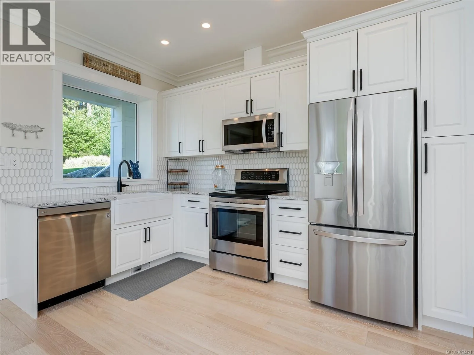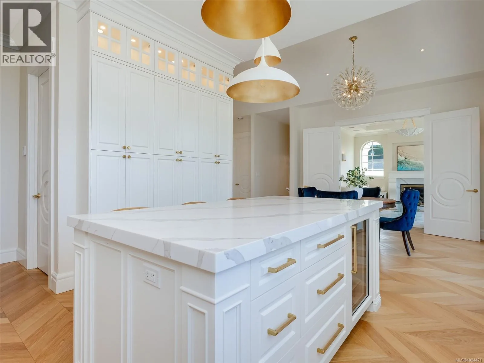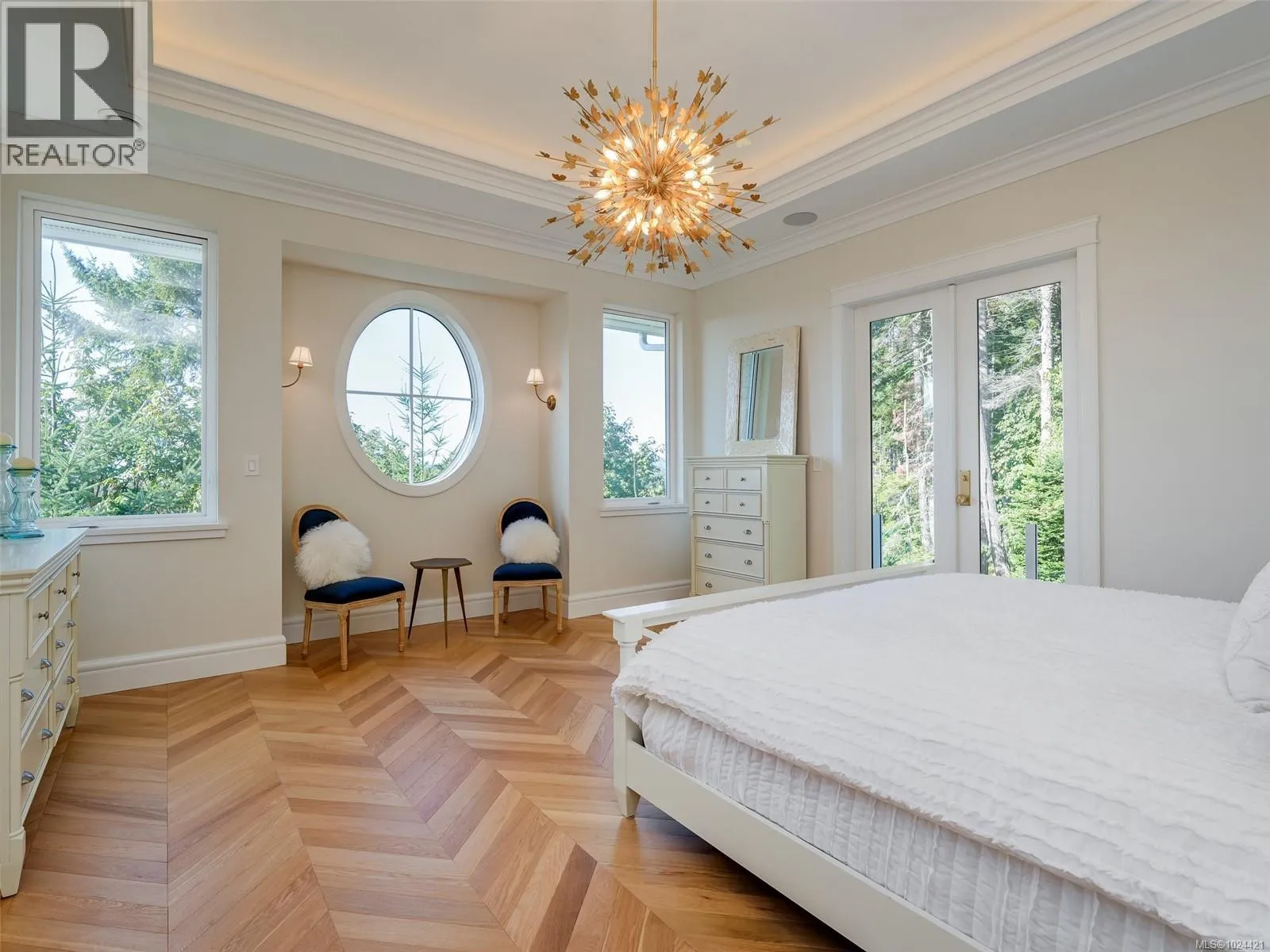 EXQUISITE HOME WITH BREATHTAKING VIEWS! Attn to detail and tasteful style throughout this 4700+sqft, 5 bdrm, 6 bthrm home, including 1 or 2 bdrm suite. The grand entrance with arched ceilings, hardwood floors, arched windows, natural light & open floor plan create comfortable living. The kitchen has gorgeous maple cabinetry, premium appliances, Restoration Hardware, Kohler taps & pot filler, and back lit quartz with translucent veining! The open living dining area has coffered ceilings, visual comfort lighting, metrie fashion doors, & gas fireplace. Main level has 2 primary bdrms, showcasing tray ceilings, soft lighting, mother-of-pearl tiling, his-&-her walk-in closets, & spa like ensuites. Bonus features incl a large family area with kitchenette, plenty of storage, ICF insulation, 2 heat pumps for year round energy efficient comfort, & a HUGE space above the garage for ??? All perched on .28 of an acre in Royal Bay, bordering a park and just mins to shopping, Schools, & Beaches. (id:27476)