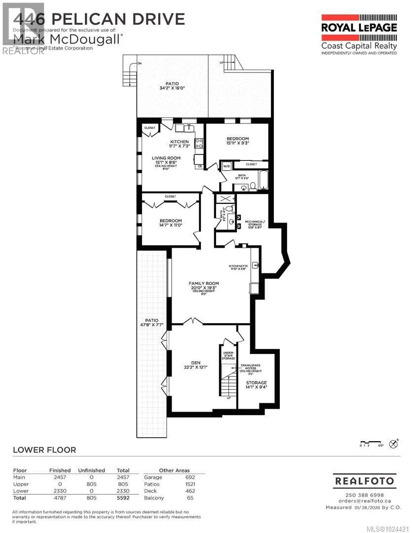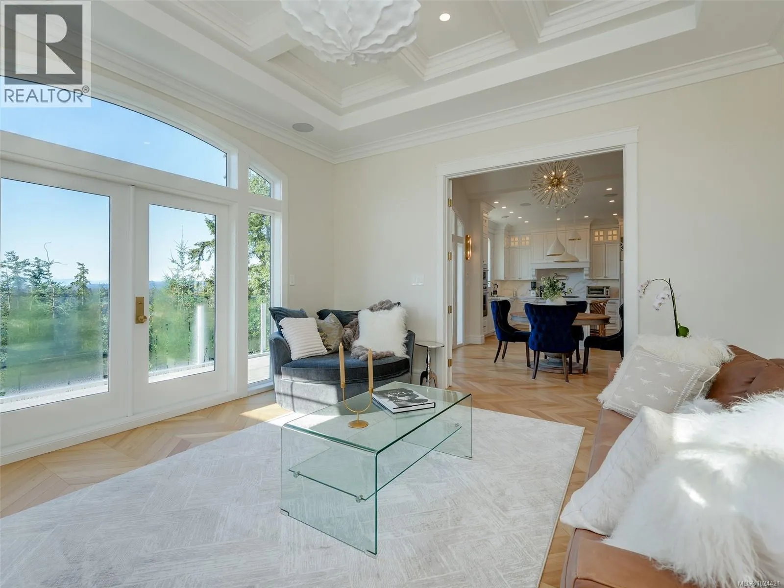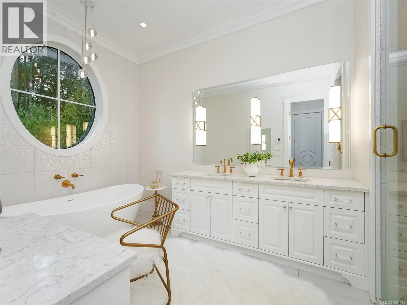 EXQUISITE HOME WITH BREATHTAKING VIEWS! Attn to detail and tasteful style throughout this 4700+sqft, 5 bdrm, 6 bthrm home, including 1 or 2 bdrm suite. The grand entrance with arched ceilings, hardwood floors, arched windows, natural light & open floor plan create comfortable living. The kitchen has gorgeous maple cabinetry, premium appliances, Restoration Hardware, Kohler taps & pot filler, and back lit quartz with translucent veining! The open living dining area has coffered ceilings, visual comfort lighting, metrie fashion doors, & gas fireplace. Main level has 2 primary bdrms, showcasing tray ceilings, soft lighting, mother-of-pearl tiling, his-&-her walk-in closets, & spa like ensuites. Bonus features incl a large family area with kitchenette, plenty of storage, ICF insulation, 2 heat pumps for year round energy efficient comfort, & a HUGE space above the garage for ??? All perched on .28 of an acre in Royal Bay, bordering a park and just mins to shopping, Schools, & Beaches. (id:27476)