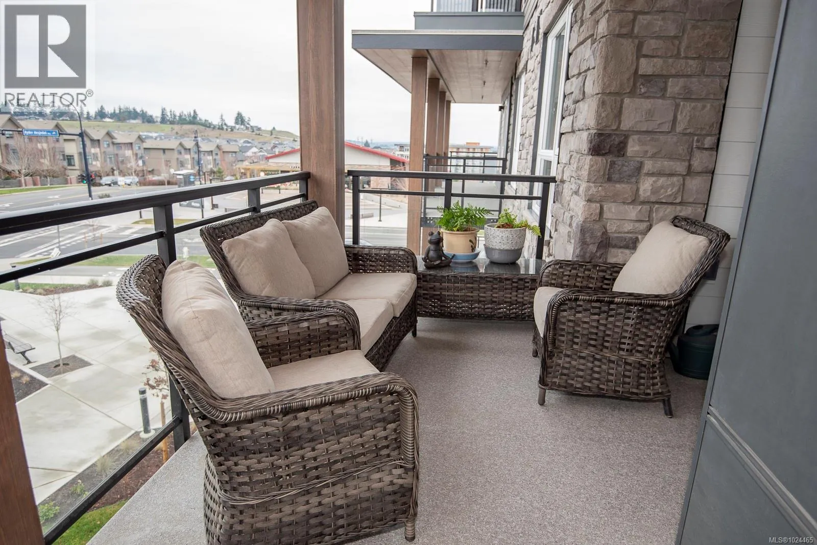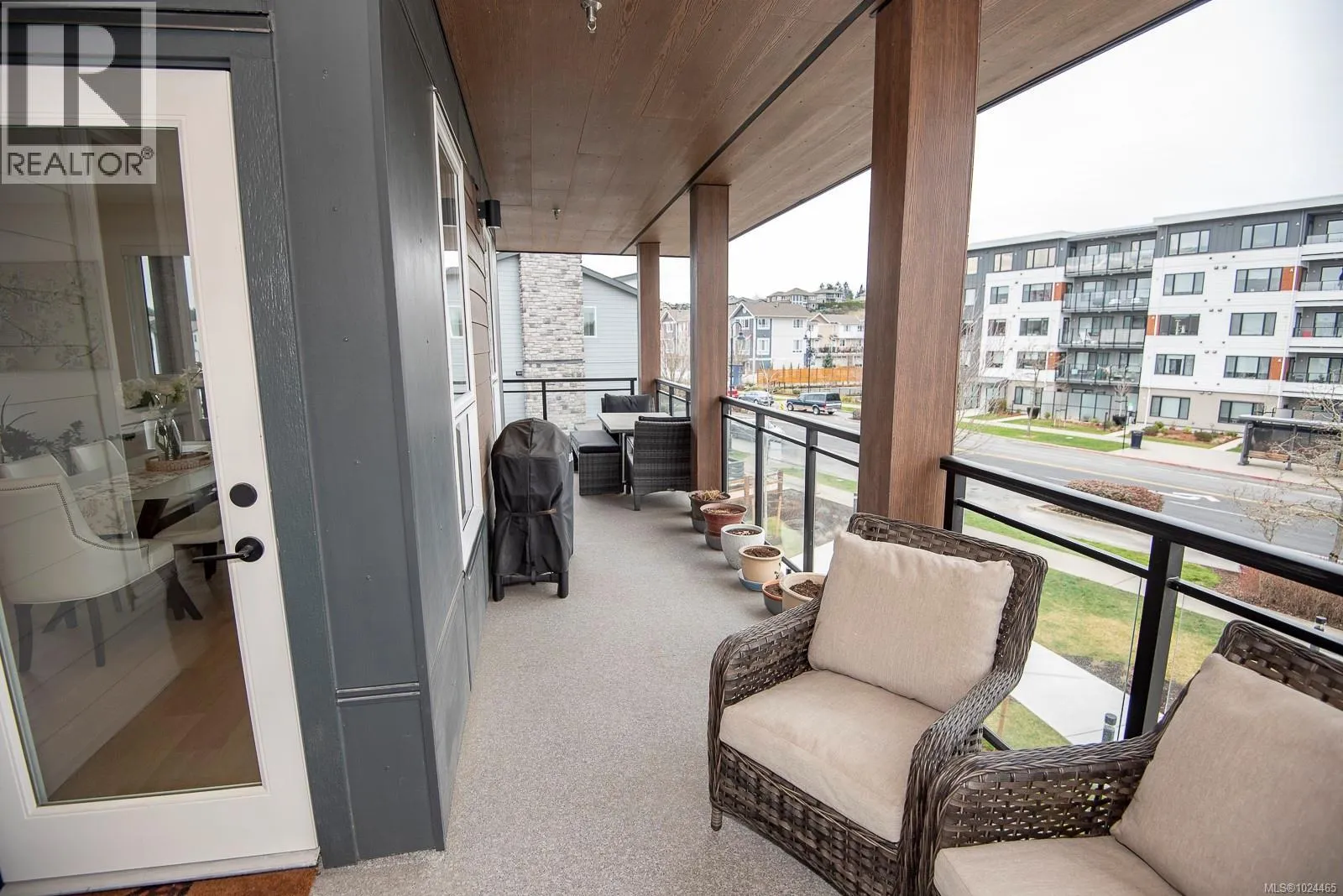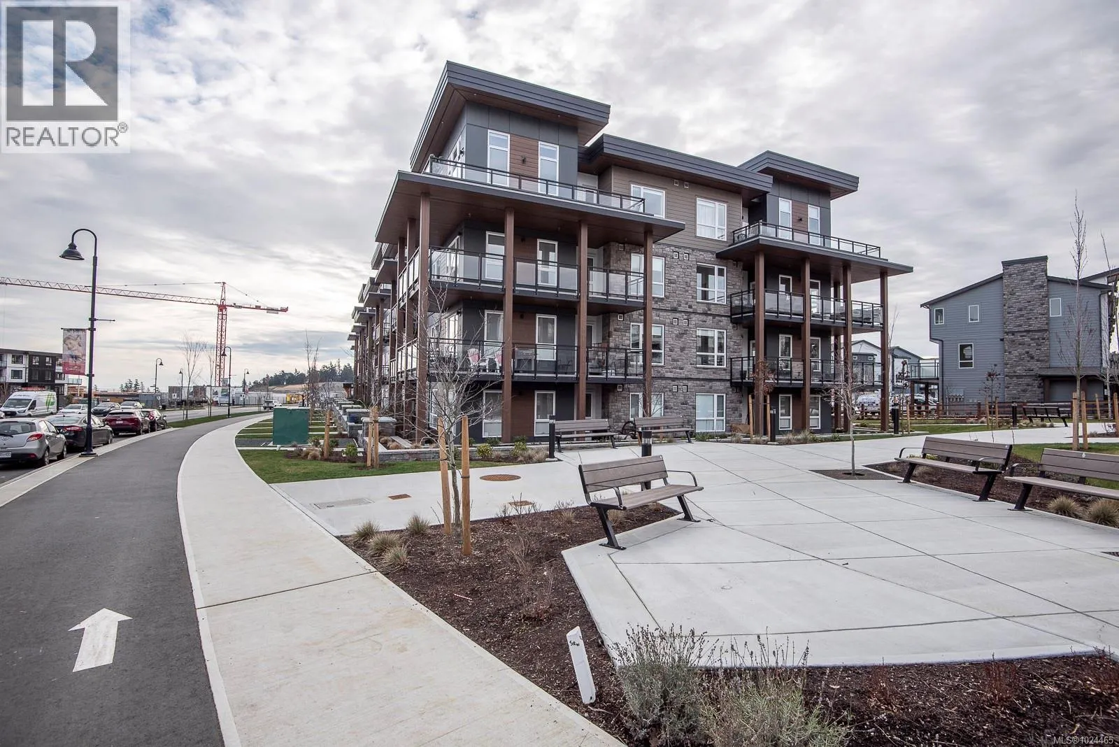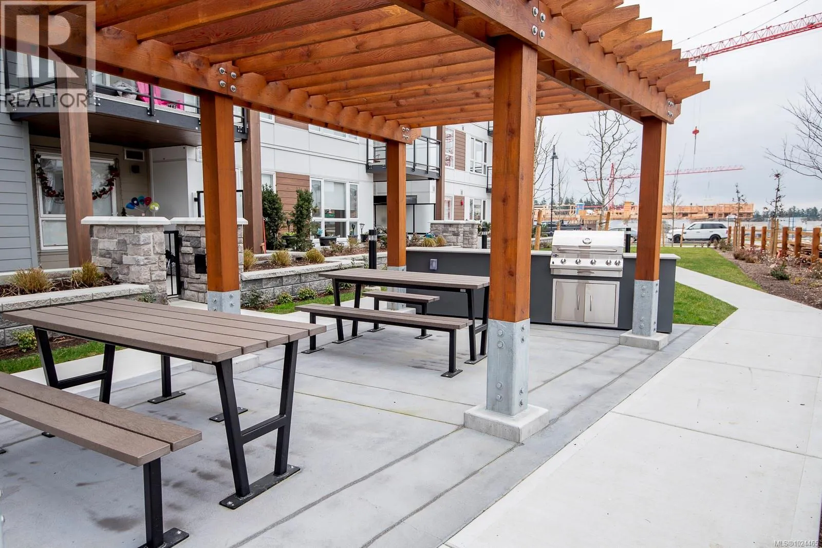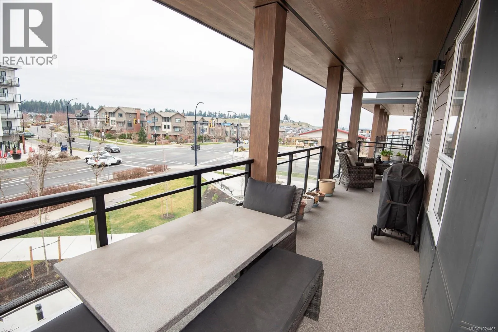 Experience the best of west coast living in the Eliza at Royal Bay. This spacious 2 bed, 2 bath corner suite has the largest floorplan in the building plus a covered 277 sq. ft. west-facing deck where you can enjoy a morning cup of coffee & the gorgeous sunsets. The beautifully designed interior space offers a relaxing palette of colors w/lots of natural light, a dream kitchen w/quartz counters & SS appliances, soft-close cabinetry, elegant finishing materials, generous primary bdrm. Amenities for residents at the Eliza incl. a fully equipped fitness facility/gym, pet washing station, roof top patio w/BBQ kitchen, 2 social lounges, community garden plots & a ground level common patio & BBQ area. Includes 2 secured parking stalls, 2 bike storage racks & a storage locker plus itâs close to everything in this vibrant seaside neighborhoodâ¦.the beach, parks, schools, walking/running/biking trails, golf, grocery stores, cafes/restaurants, shops. This is a good oneâ¦come and see! (id:27476)