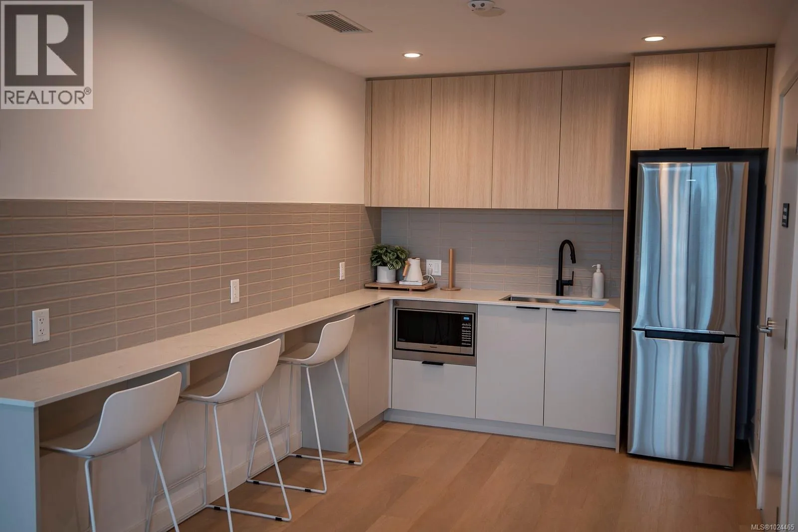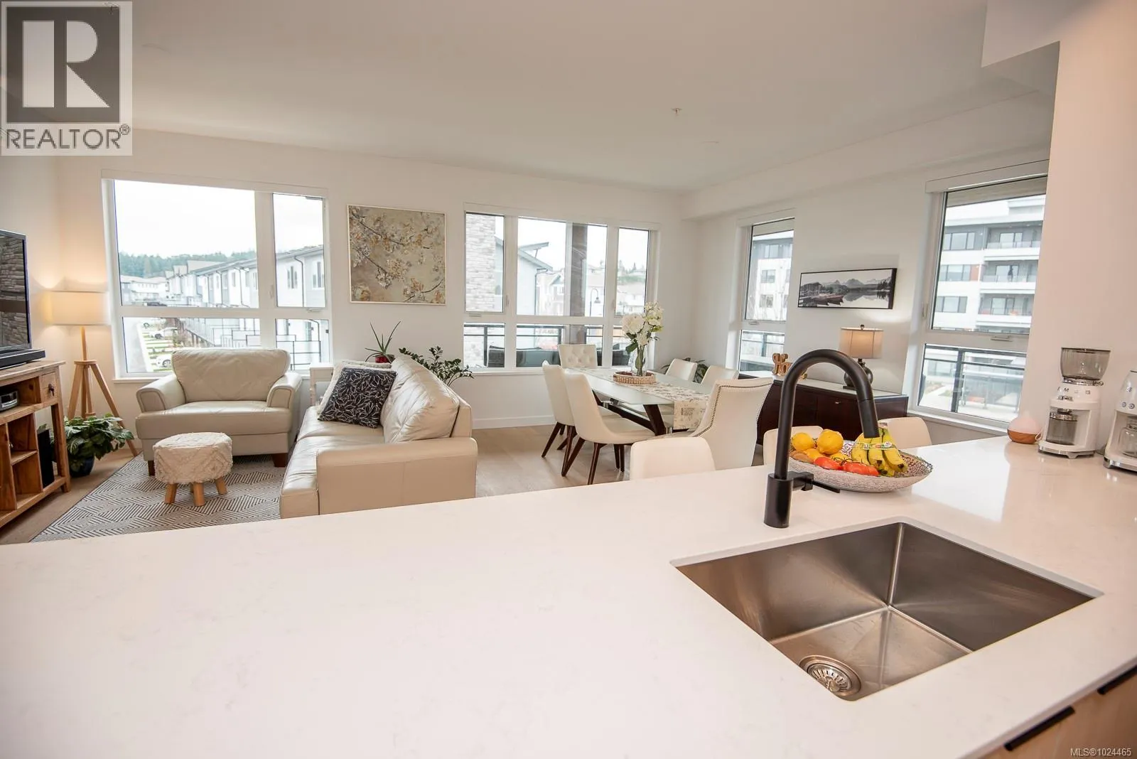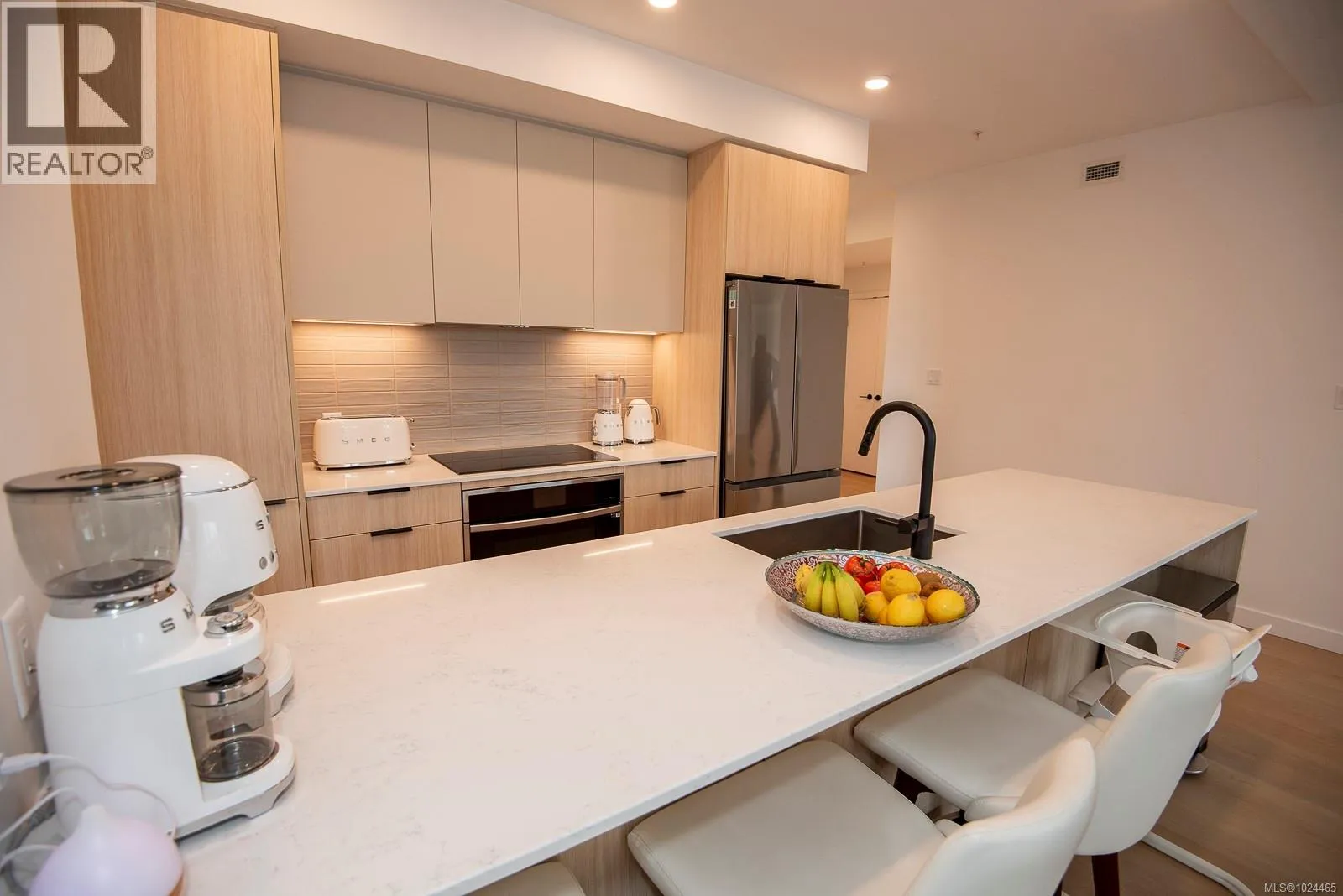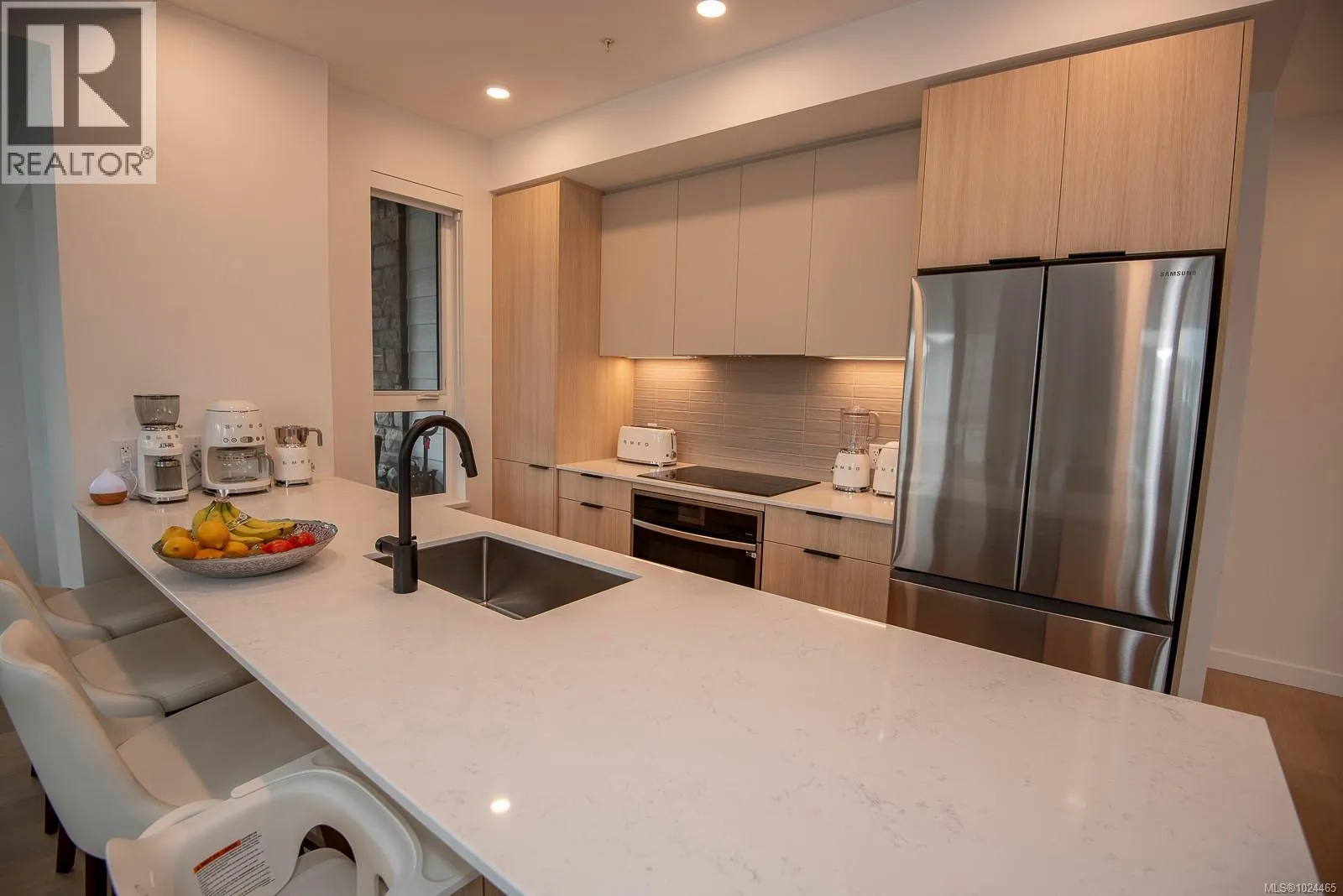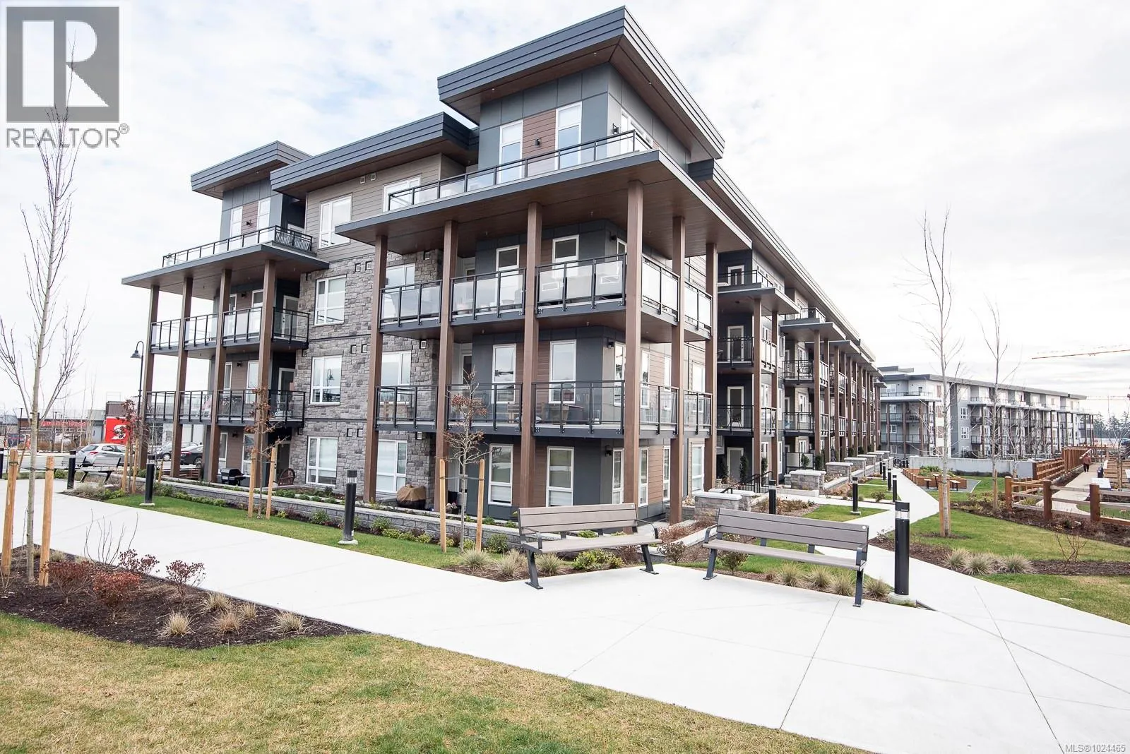 Experience the best of west coast living in the Eliza at Royal Bay. This spacious 2 bed, 2 bath corner suite has the largest floorplan in the building plus a covered 277 sq. ft. west-facing deck where you can enjoy a morning cup of coffee & the gorgeous sunsets. The beautifully designed interior space offers a relaxing palette of colors w/lots of natural light, a dream kitchen w/quartz counters & SS appliances, soft-close cabinetry, elegant finishing materials, generous primary bdrm. Amenities for residents at the Eliza incl. a fully equipped fitness facility/gym, pet washing station, roof top patio w/BBQ kitchen, 2 social lounges, community garden plots & a ground level common patio & BBQ area. Includes 2 secured parking stalls, 2 bike storage racks & a storage locker plus itâs close to everything in this vibrant seaside neighborhoodâ¦.the beach, parks, schools, walking/running/biking trails, golf, grocery stores, cafes/restaurants, shops. This is a good oneâ¦come and see! (id:27476)