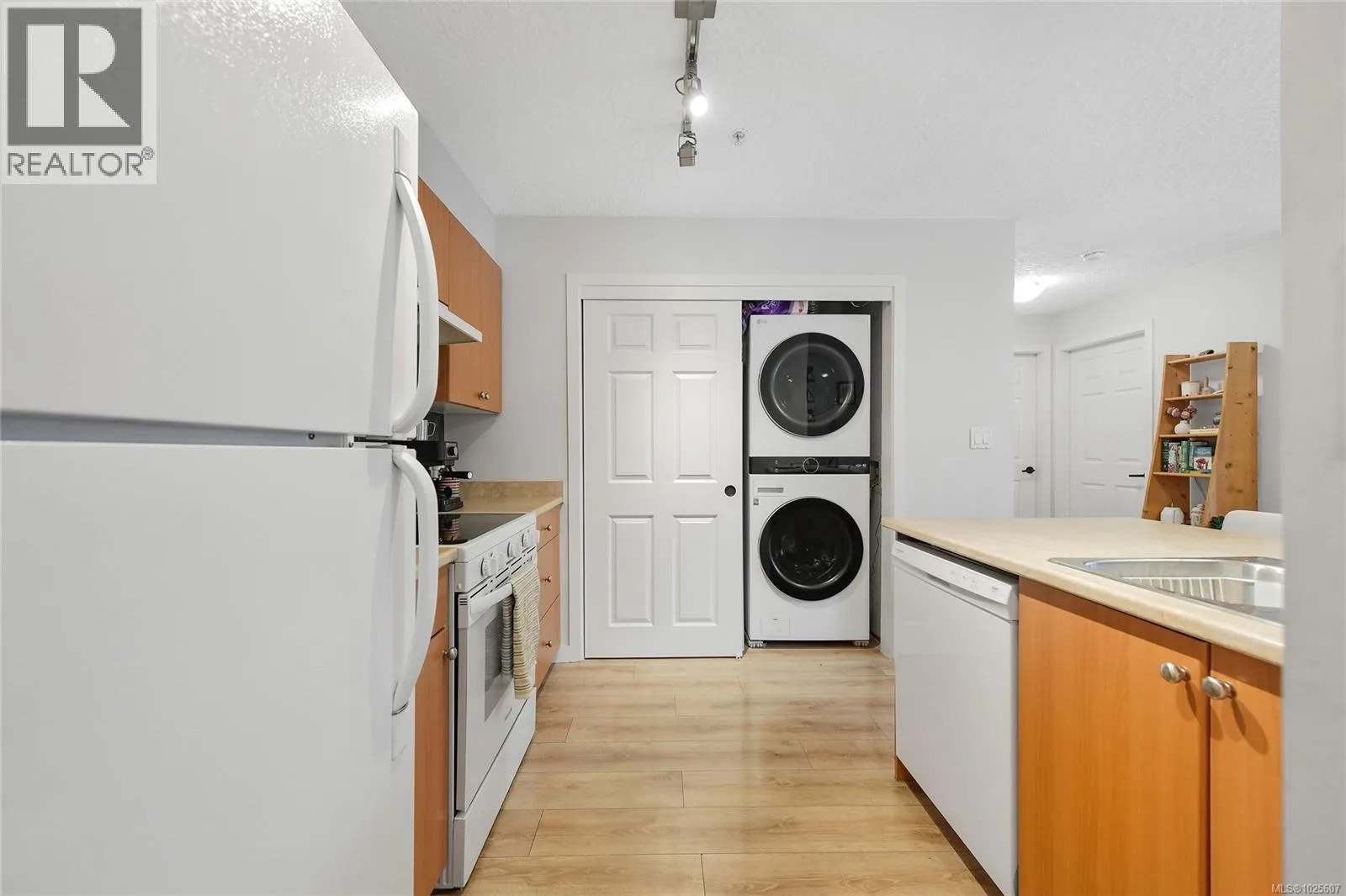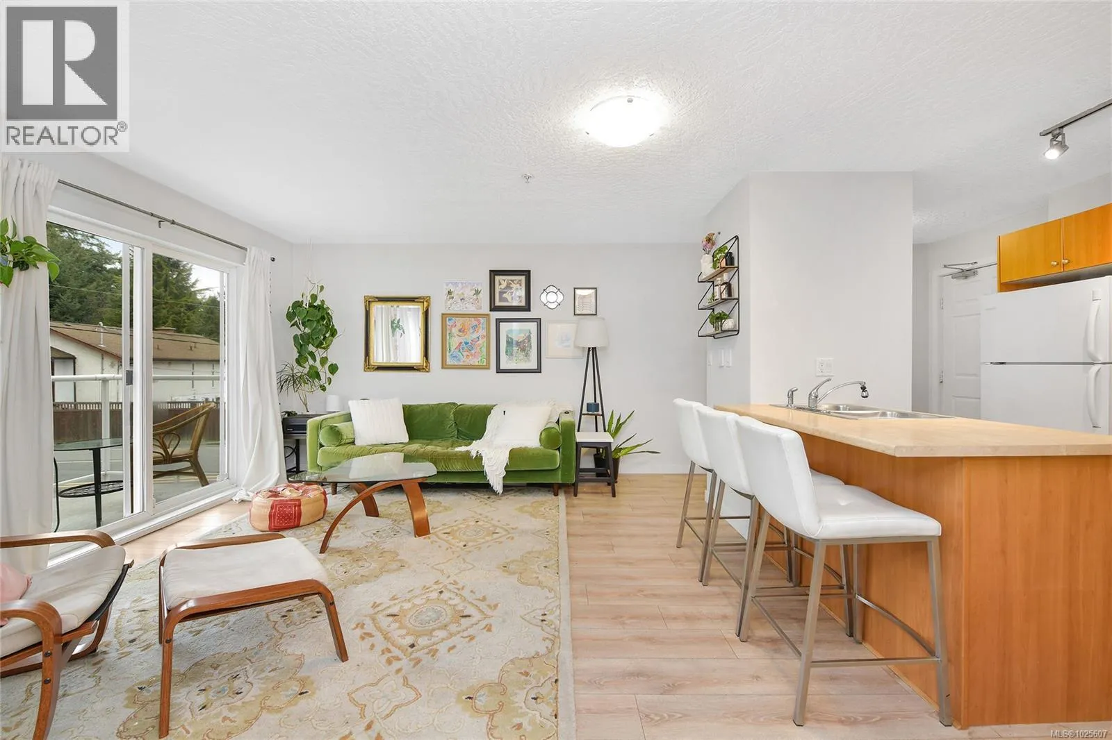 Bright and beautifully maintained condo in the sought-after Wale Cove community. This unit offers a thoughtful, well designed layout filled with natural light throughout. The sunny kitchen and living area open onto a generously sized balcony, container gardening, or unwinding outdoors. Both bedrooms are spacious and inviting, featuring large closets, peaceful garden views, and oversized windows that create a bright, calming atmosphere. With three unshared walls, the home feels notably private and quiet. Pride of ownership is evident throughout, with the unit kept exceptionally tidy and well cared for over the years. Ample storage, in-suite laundry area, and a highly functional layout make everyday living easy and comfortable. A separate storage locker and secure parking are included. Centrally located in Colwood, close to major amenities, parks, recreation centres, Esquimalt Lagoon, Royal Roads University, and more. This is a move-in-ready unit in a fantastic location. (id:27476)