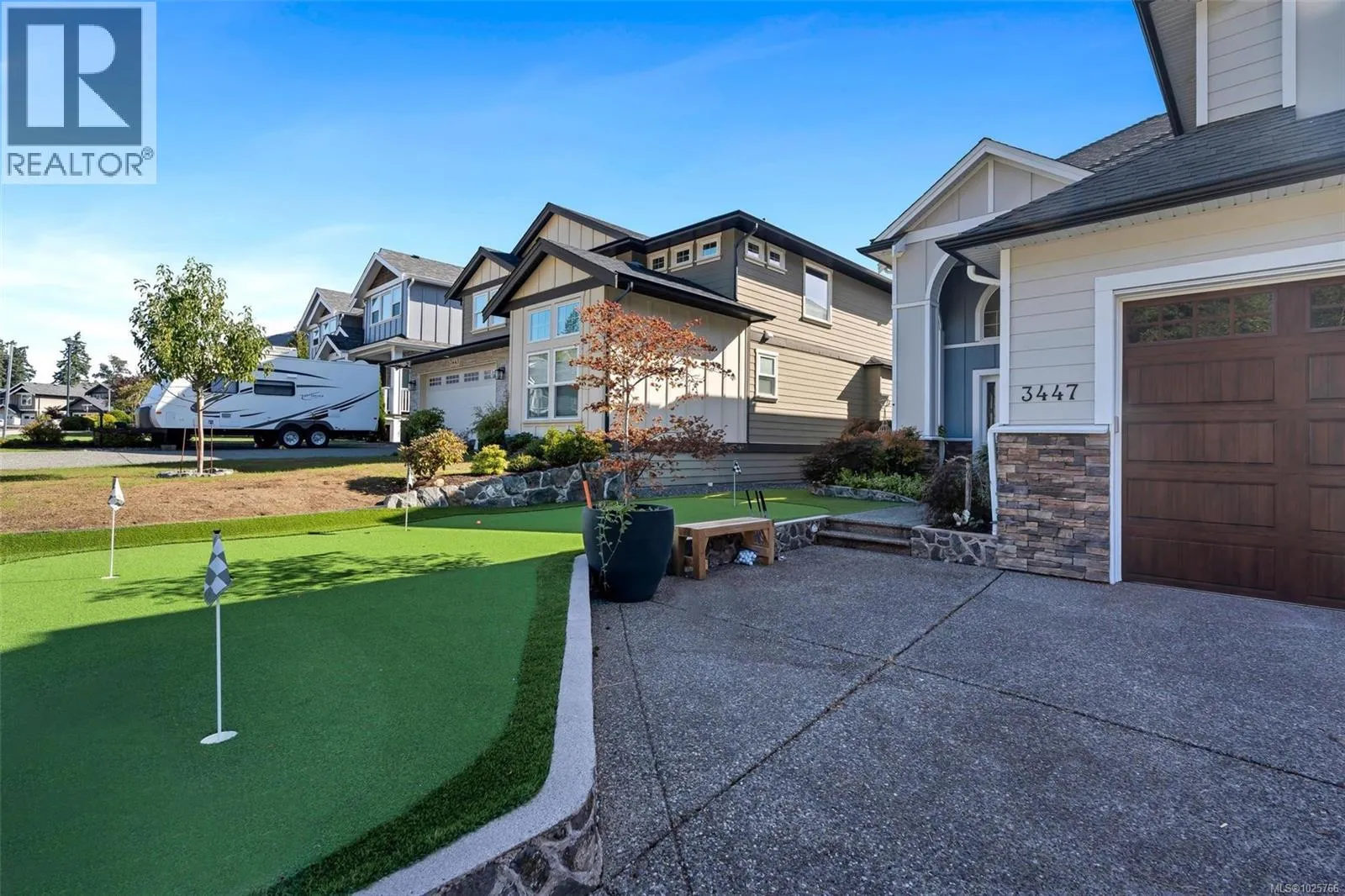 Welcome to 3447 Resolution Way, a custom-built home that shows like new, on a massive 7,931 sq ft lot. Inside, you'll find the perfect floorplan - greeted by dramatic 18ft foyer & hardwood floors throughout. The chefâs kitchen features granite counters, imported backsplash, premium appliances & abundant storage. The island opens to the nearly 20ft dining room, perfect for gatherings, all overlooking a cozy sunken living room with stone gas fireplace. The main floor also offers powder room, laundry & oversized double garage. Upstairs has 3 beds, 2 baths and a huge family room w/wet bar, gas fireplace and covered patio. Primary suite has custom walk-in closet & 5pc ensuite w/soaker tub, dual vanities & walk-in shower. Outside provides endless parking (RV hookup ready), putting green & low-maintenance yard w/covered patio plus private courtyard. The detached garage/carriage house offers legal one-bed suite above & lower in-law. Minutes to ocean, schools & amenities-this is a must-see! (id:27476)