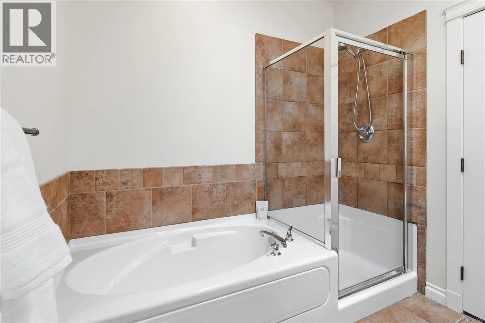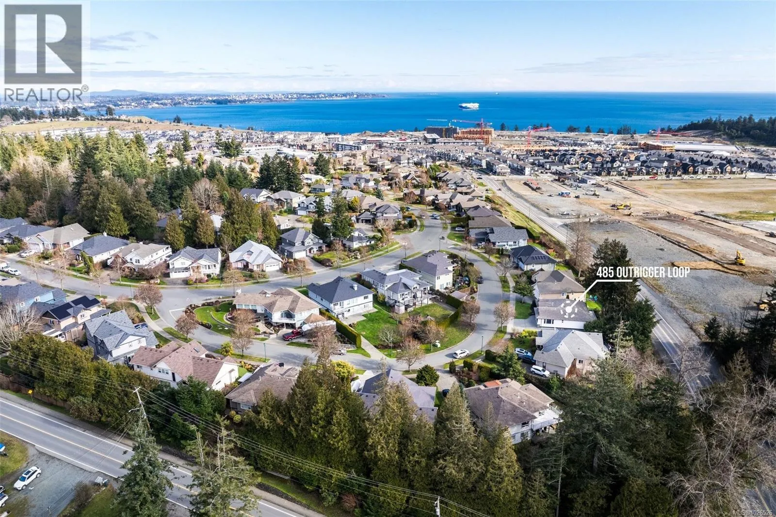 A dramatic entry with soaring ceilings sets the tone in this beautifully designed family home. Created for effortless main-level living, the spacious primary suite is thoughtfully positioned on the main floor with patio access, a walk-in closet, and a generous ensuite with soaker tub and separate shower. Separate living and dining rooms with gas fireplaces provide elegant space to host, while a powder room and laundry add everyday convenience. The kitchen and family room flow seamlessly to a balcony nestled amongst trees with gorgeous ocean and mountain views, extending your living outdoors. Downstairs offers two bedrooms, full bath, private patio, and a large rec room ideal for teens or guests. A self-contained legal suite with its own entrance and patio adds valuable income potential. Double car garage, tonnes of storage throughout, and parking for everyone! Surrounded by beaches, parks, trails, schools, and amenities, this Royal Bay home delivers style, flexibility, and location. (id:27476)