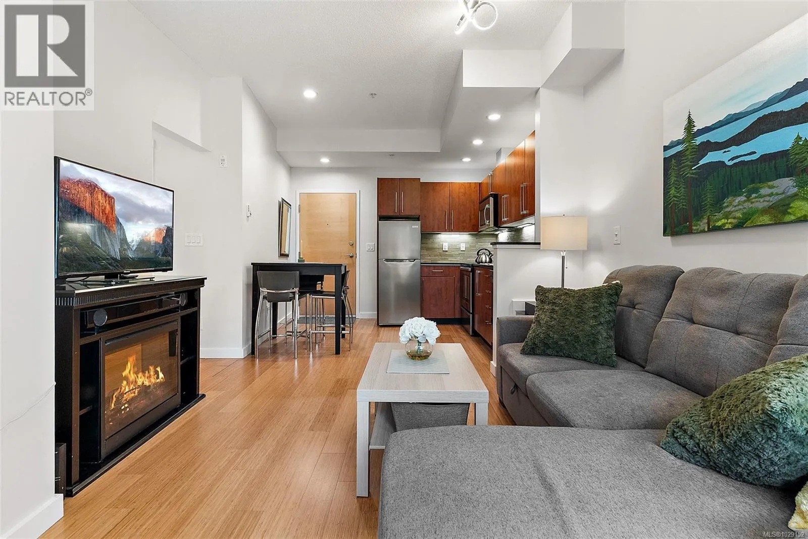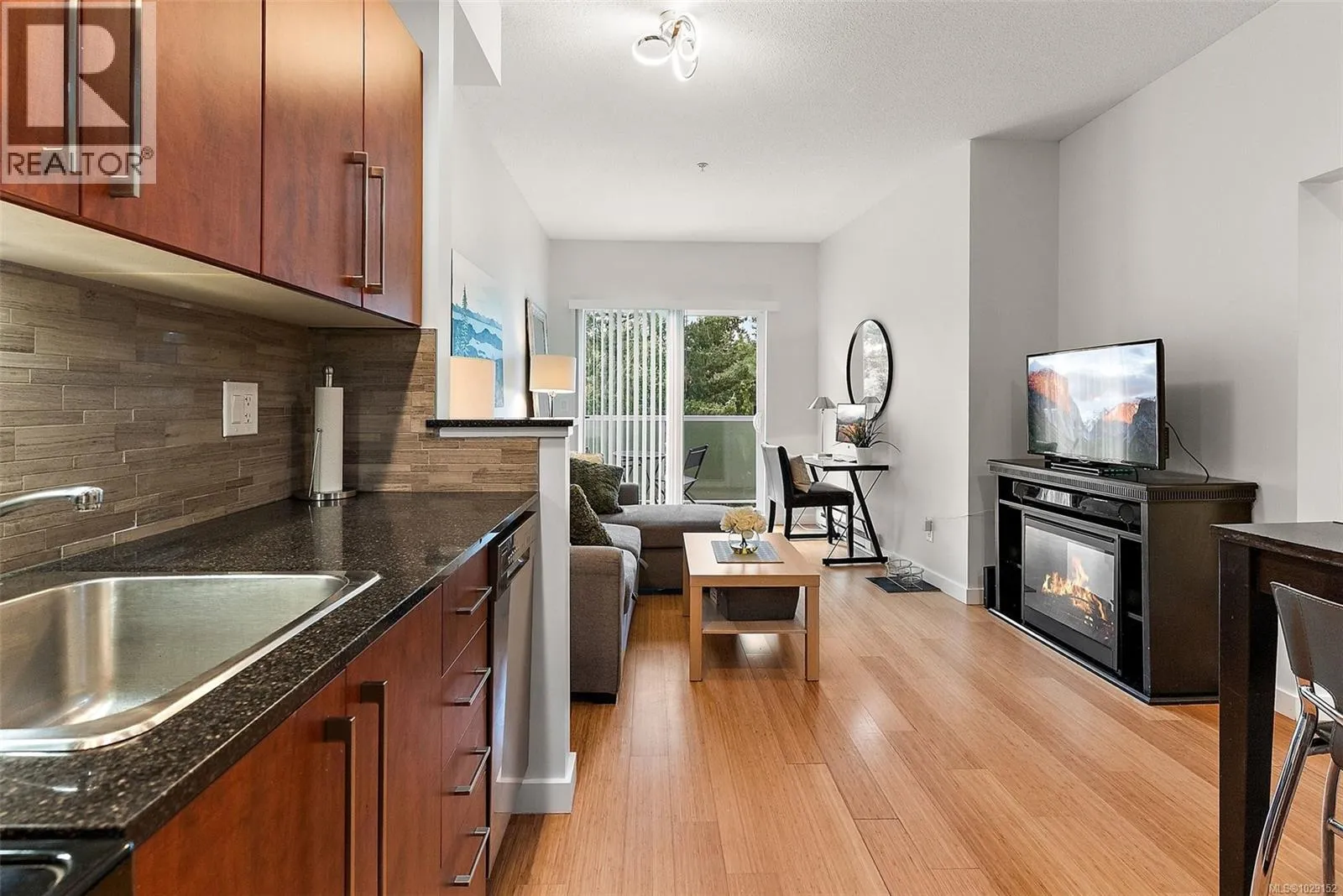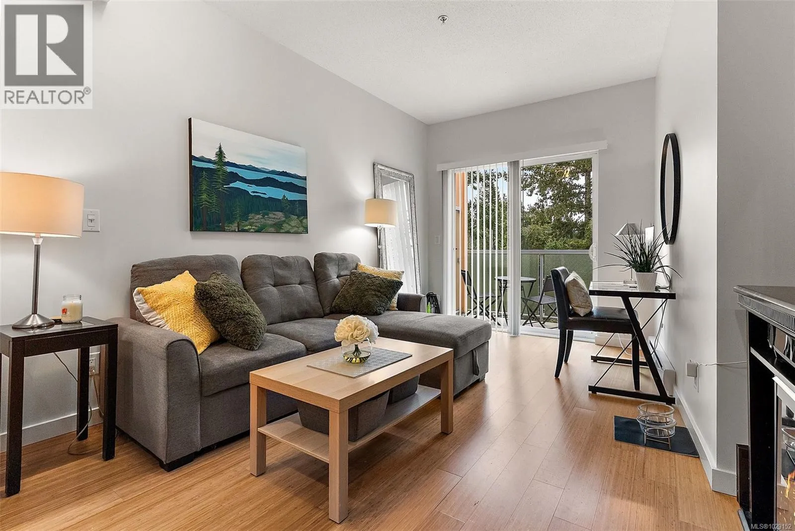 Come take a stroll through Latoria Walk, an eye-catching building on the western edge of Colwood. This top-floor unit has southwestern exposure off its covered patio. So, even with Veterans Parkway on your doorstep, the quiet patio faces a wild stretch of the Westshore. Olympic View Golf Course is the immediate neighbour, with Wittyâs Lagoon and the Sooke Hills beyond. Other features include nine-foot ceilings; a sleek, four-piece bathroom; in-suite laundry; electric fireplace; bamboo floors; and stylish finishings throughout. The well-managed strata provides secure, underground parking as well as a storage locker on the same floor. Latoria Walkâs lower level houses a convenient pharmacy and Red Barn Market grocery store (known for its range of tasty, in-house offerings). This location puts you just twenty minutes from events in downtown Victoria or from adventures in East Sooke Park. Closer to home, you can enjoy Esquimalt Lagoon, Thetis Lake, and endless amenities of the Westshore. (id:27476)