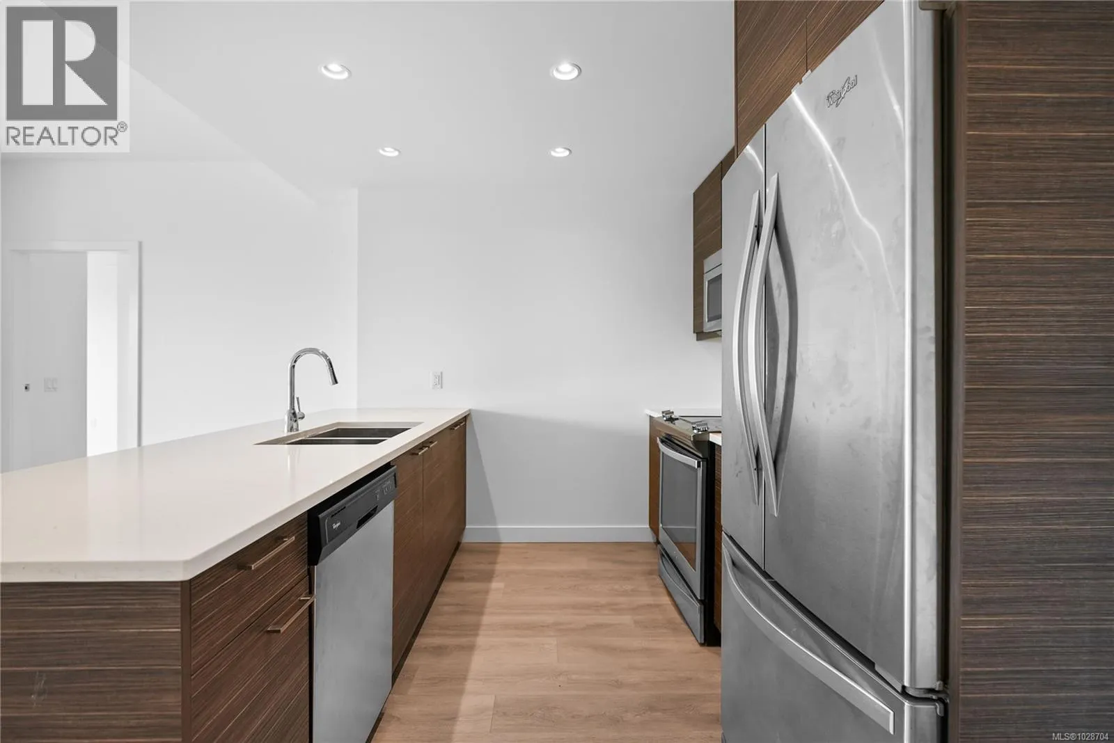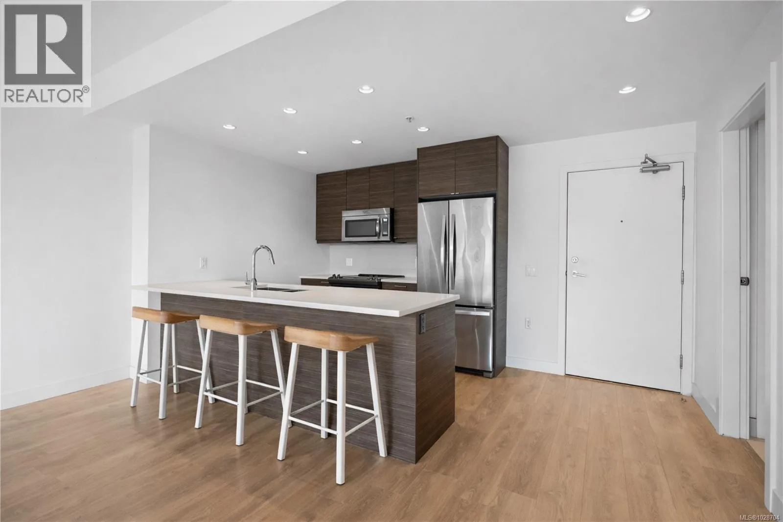 Townhome vibes, condo convenience! This bright stylish 2 bed, 2 bath home offers its own private exterior entrance and a efficient layout. Enjoy 9â ceilings, a sleek kitchen with large eating bar, stainless steel appliances, and quartz countertops. Both bedrooms are generously sized with ample closet space, and the primary features a 4-piece ensuite. Stay comfortable year-round with an energy-efficient heat pump providing heating and cooling. The sunny southwest-facing patio is perfect for relaxing and offers easy direct accessâno need to use the main entrance. Located in a walkable area close to groceries, parks, the Galloping Goose Trail, Juan de Fuca Rec Centre, and the ocean. Pet-friendly and rentals allowedâideal for homeowners or investors. (id:27476)