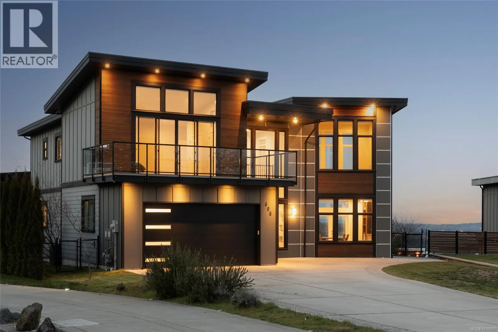 Perched on desirable Triangle Mountain, 696 Demel Place is a stunning 2018 single family home offering more than 3,500 sq ft of thoughtfully designed living space. Built for entertaining and well suited to big families, the main floor has an airy, expansive feel with a huge kitchen, generous gathering areas, and oversized windows throughout that beautifully frame the views from nearly every angle. A large office on the main level adds flexibility for working from home or study space. Upstairs features 4 bedrooms and 3 bathrooms, including 3 bedrooms with their own ensuites. The primary suite is a true standout, offering the best views in the house, its own balcony, vaulted ceilings, a large ensuite, and a walk-in closet. The fourth bedroom also works perfectly as a media room or games room. Complete with a double garage, this is an impressive home in a sought-after location (id:27476)