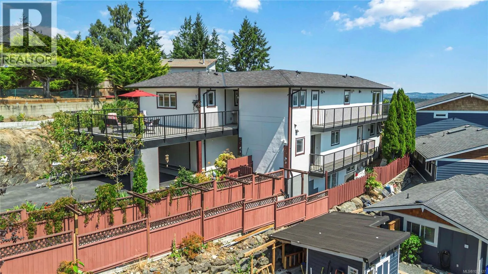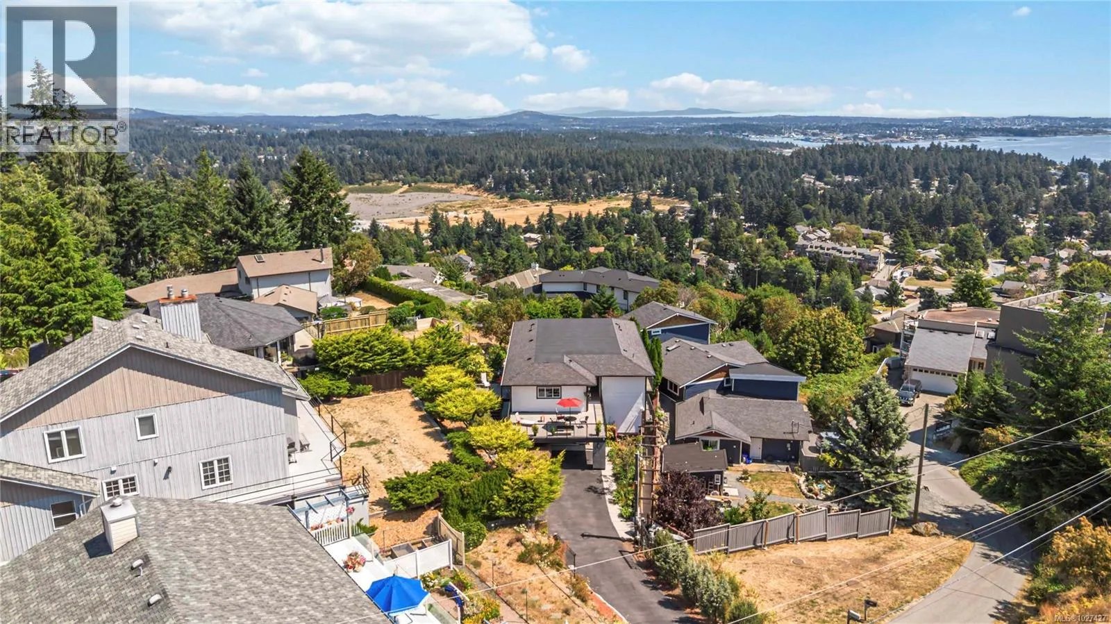 This exceptional 4630 square foot home offers an accessible elevator to all 3 levels and includes 2 fully self-contained 2-bedroom suitesâideal for multigenerational living or substantial rental income. Take in sweeping views of the Juan de Fuca Strait, Victoriaâs Inner Harbour, and majestic Mount Baker from numerous vantage points as multiple sundecks invite you to enjoy the ever-changing coastal landscape. Built in 2019, the flexible floor plan boasts 3 kitchens, 8 bathrooms, 2 offices, and spacious living areas that can be easily reconfigured to suit your needs, including expanding the main level suite to host 2 bedrooms. Additional features include a large double garage, a hot tub, a 400-amp service, pellet and propane stoves, and a central vacuum system. Perched on sought-after Triangle Mountain with transit close by and Westshore amenities just minutes away, this rare and unique home offers luxurious space, ultimate flexibility, and show-stopping views. (id:27476)