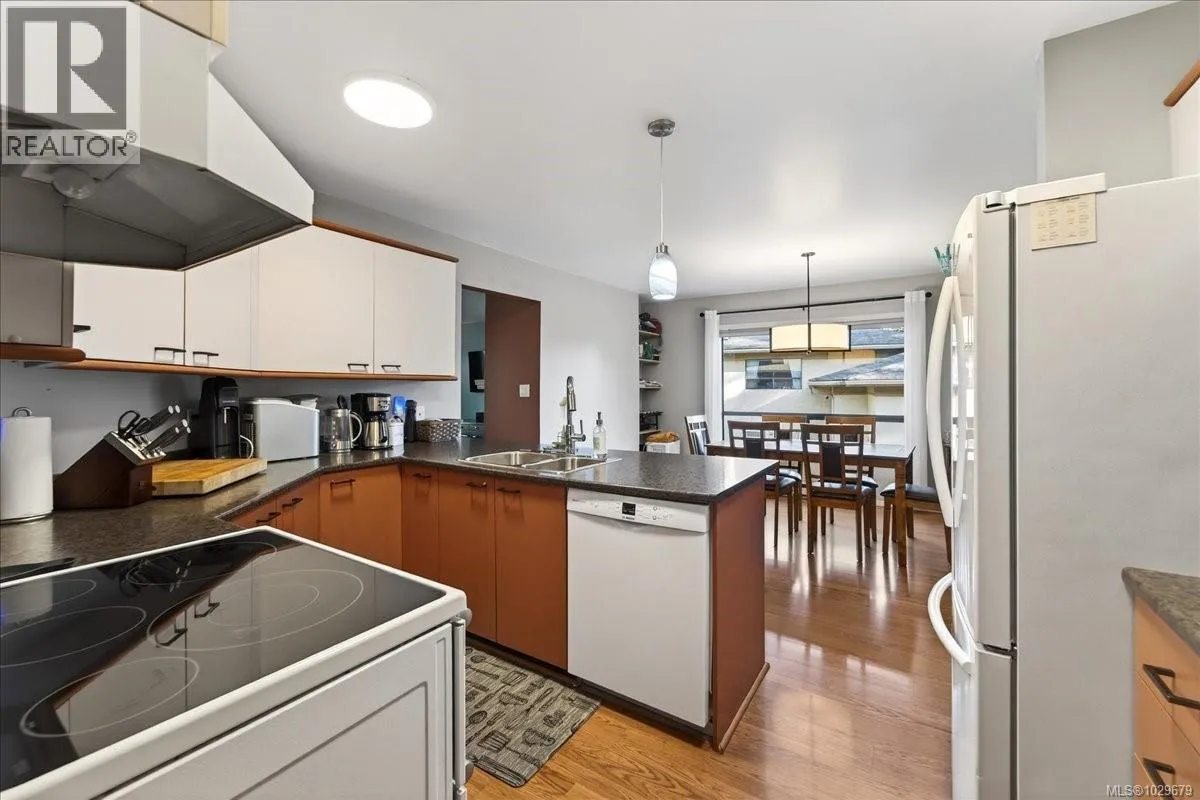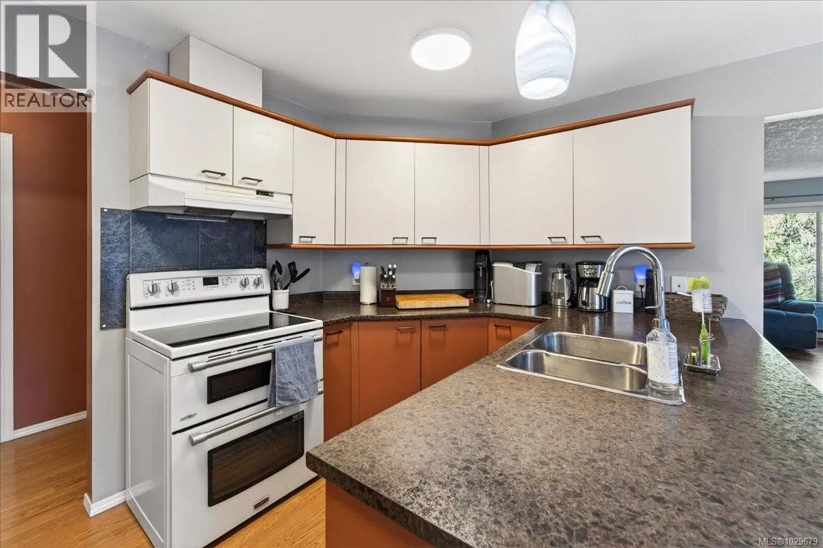 Tucked away in a quiet, well-managed beautifully maintained 3+ acres, park-like grounds, this centrally located townhome offers the perfect blend of privacy and convenience. This bright single-level home features approximately 1,400 sq. ft. of thoughtfully designed living space, including 2 bedrooms and 2 bathrooms. Kitchen with a breakfast bar, seamlessly connecting the dining area to a spacious living room complete with a cozy propane fireplace. Step outside to your own private deckâideal for morning coffee or summer BBQs. The generous primary suite easily accommodates a king-sized bed and features walk-in closet, and a 4-piece ensuite. Additional highlights include a single-car garage, ample storage, and a functional laundry/mudroom. This well-run strata offers on-site RV parking and beautifully landscaped grounds. Major updates include new roofs (2022) and a new control panel for the septic system. Located just steps to Westshore Centre, Belmont Market, transit, and all everyday amenitiesâthis is easy, low-maintenance living in a peaceful setting. Quick possession possible. (id:27476)