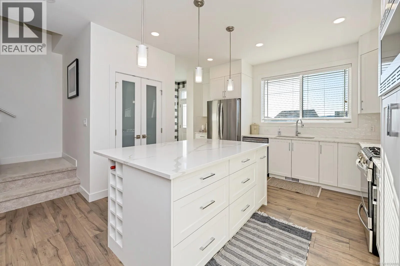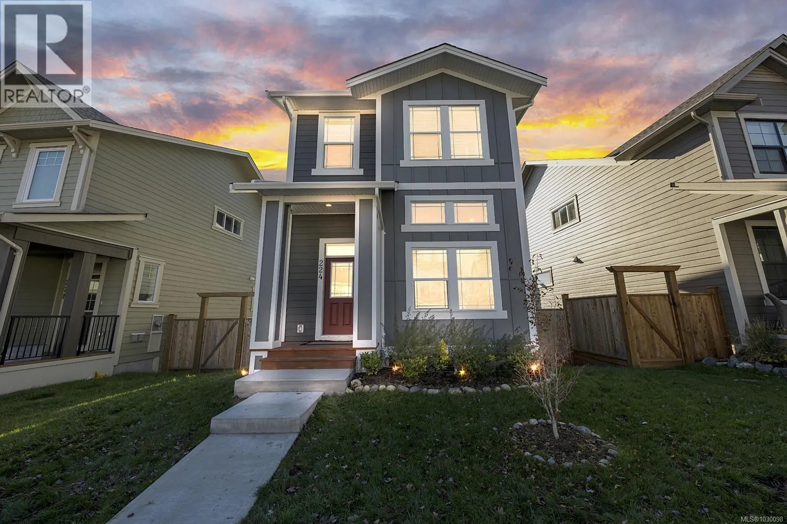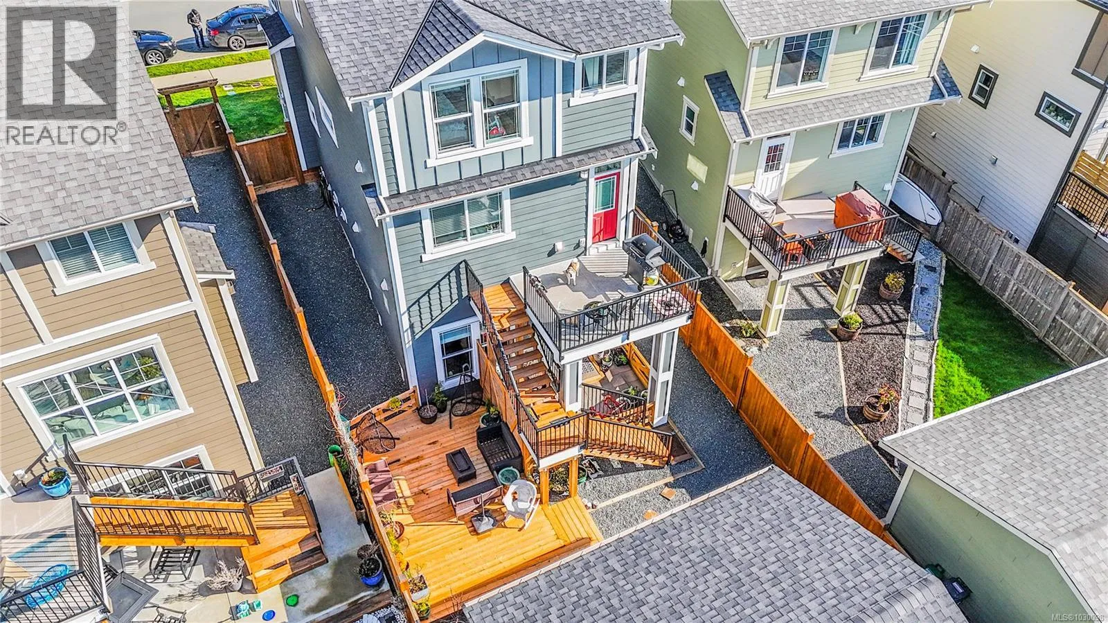 Built in 2020, this 4 bedroom, 4 bathroom home offers modern construction, quality finishes, & a practical layout in the heart of Royal Bay. The main living area features impressive 12-foot ceilings, a gas fireplace, and large windows that bring in plenty of natural light. The kitchen is finished with high-end appliances & contemporary finishes, making it a great space for everyday living or entertaining. Step out onto the south-facing deck to take in mountain views & enjoy sunny afternoons. Upstairs, the spacious primary bedroom includes a walk-in closet, a private ensuite, & beautiful ocean and mountain views. The lower level features a fully self-contained 1-bedroom suite with its own entrance & laundry. At the rear of the property, youâll find a double car garage accessed from the laneway, providing two secure parking spaces. Proudly offered at $1,149,900, this home represents excellent value in the growing Royal Bay community, just minutes from shops, schools, parks, and the ocean (id:27476)