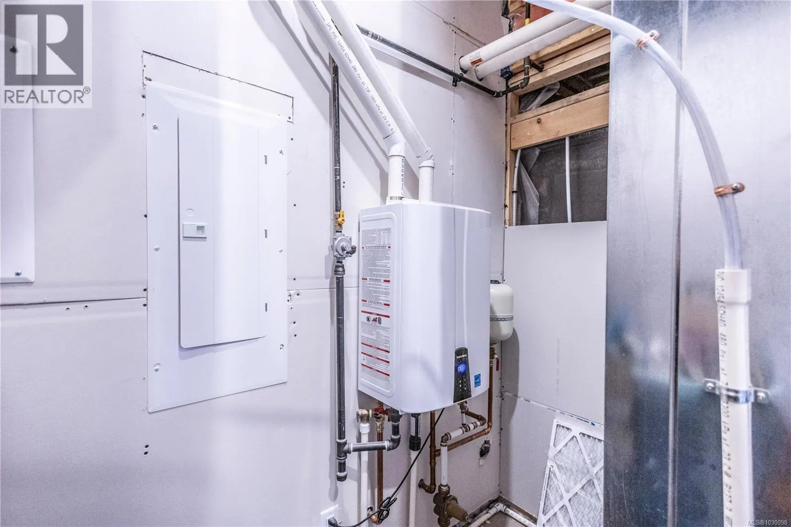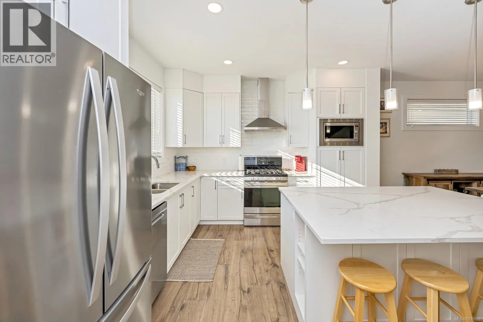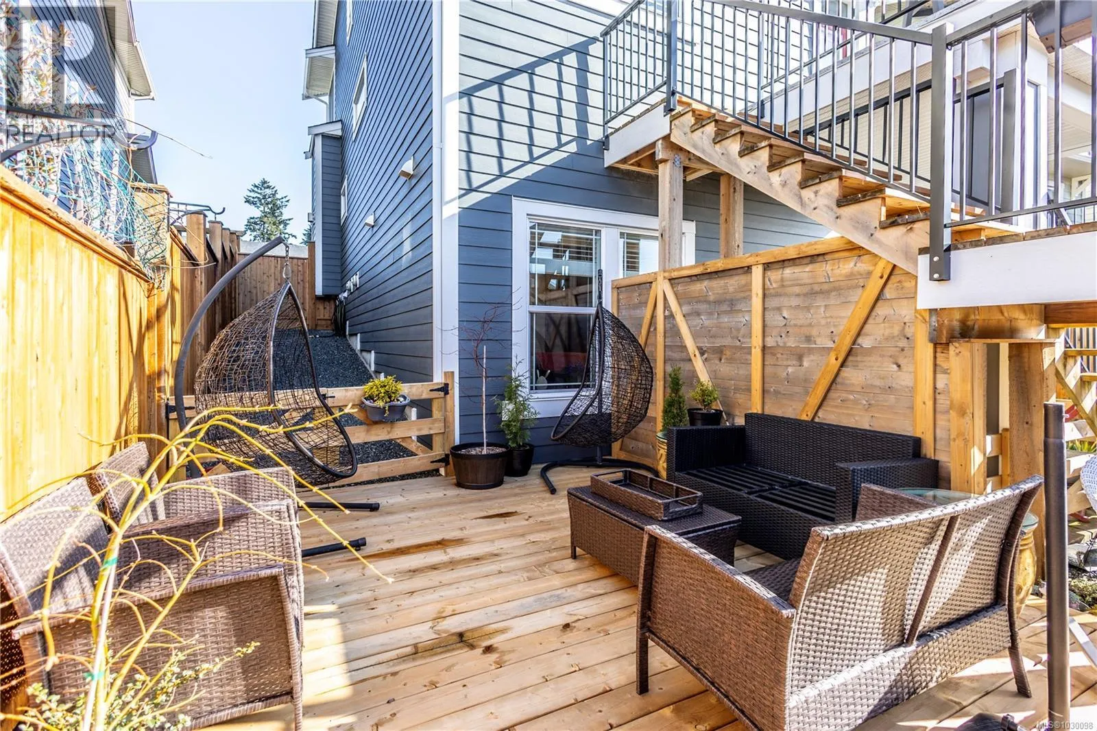 Built in 2020, this 4 bedroom, 4 bathroom home offers modern construction, quality finishes, & a practical layout in the heart of Royal Bay. The main living area features impressive 12-foot ceilings, a gas fireplace, and large windows that bring in plenty of natural light. The kitchen is finished with high-end appliances & contemporary finishes, making it a great space for everyday living or entertaining. Step out onto the south-facing deck to take in mountain views & enjoy sunny afternoons. Upstairs, the spacious primary bedroom includes a walk-in closet, a private ensuite, & beautiful ocean and mountain views. The lower level features a fully self-contained 1-bedroom suite with its own entrance & laundry. At the rear of the property, youâll find a double car garage accessed from the laneway, providing two secure parking spaces. Proudly offered at $1,149,900, this home represents excellent value in the growing Royal Bay community, just minutes from shops, schools, parks, and the ocean (id:27476)
