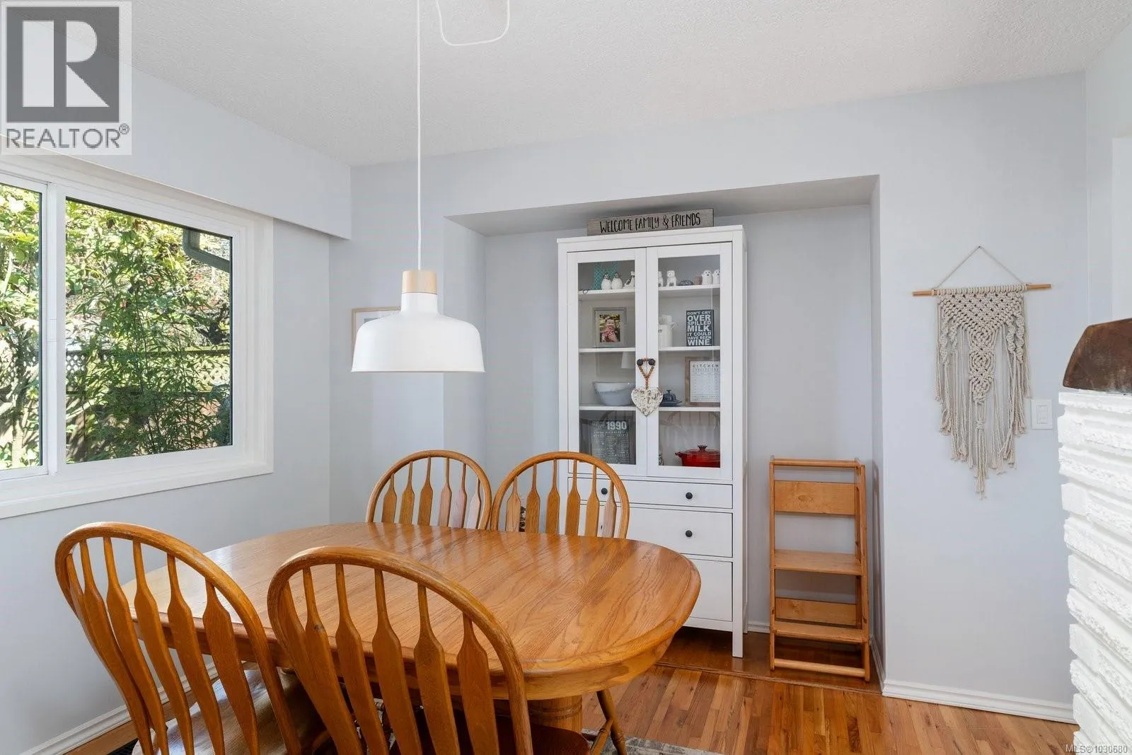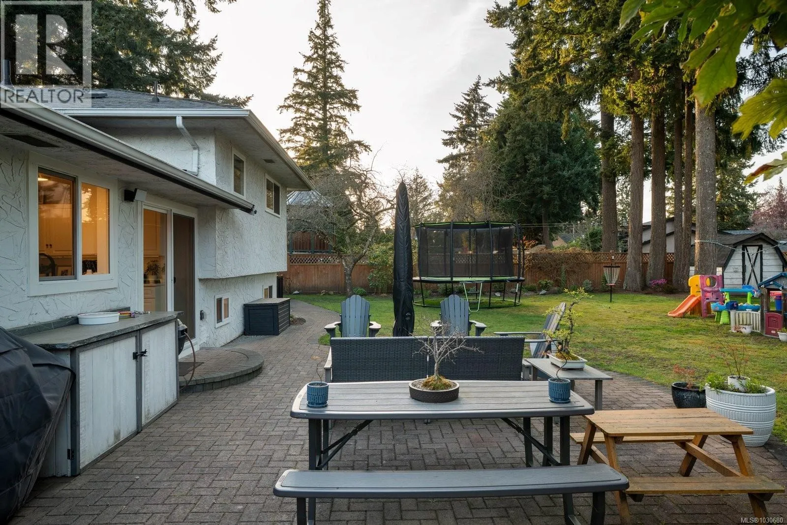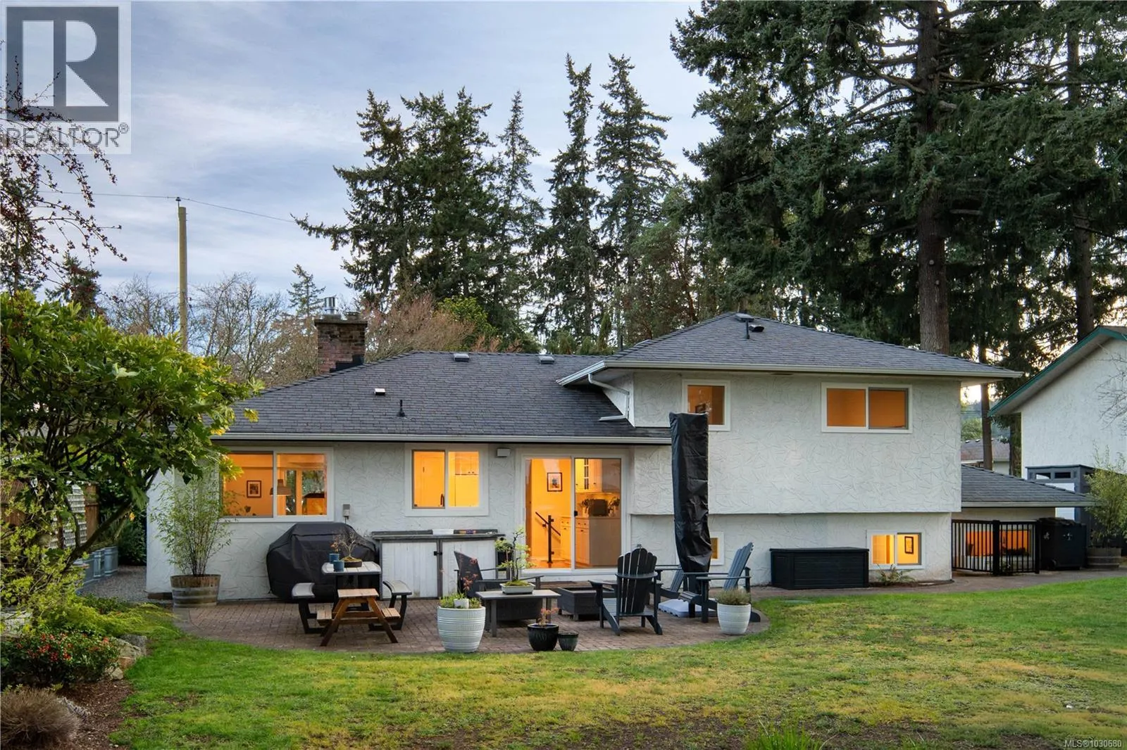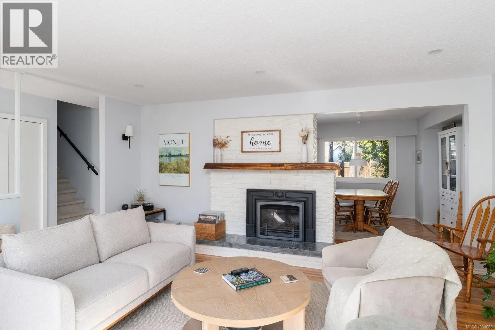 Nestled on a quiet cul-de-sac, this beautifully updated home offers exceptional privacy framed by mature trees and a picturesque park-like backyard. Showcasing a functional layout with warm hardwood floors throughout the main level, a cozy gas fireplace and a large bay window that fills the space with natural light. The kitchen is both stylish and inviting, flowing seamlessly to an expansive patio thatâs perfect for entertaining or simply enjoying the peaceful surroundings. The meticulously maintained yard is a true highlight featuring a lush lawn, mature plants & landscape lighting throughout which creates a private outdoor retreat. Upstairs youâll find three well-proportioned bedrooms including a comfortable primary with ensuite along with a full bathroom. The home has been lovingly updated with new carpet and refreshed bathrooms combining comfort with modern touches. The lower level offers excellent versatility with a media room, full bathroom, updated laundry area and separate entry that adds flexibility. An oversized crawlspace and attached garage provide abundant storage and practicality. Located just minutes from Westshore Town Centre, Belmont Market, parks, schools and outdoor attractions like Royal Roads, Esquimalt Lagoon and the Galloping Goose Trail, this home blends tranquility with easy access to everyday amenities and downtown Victoria which is only 30 minutes away. (id:27476)