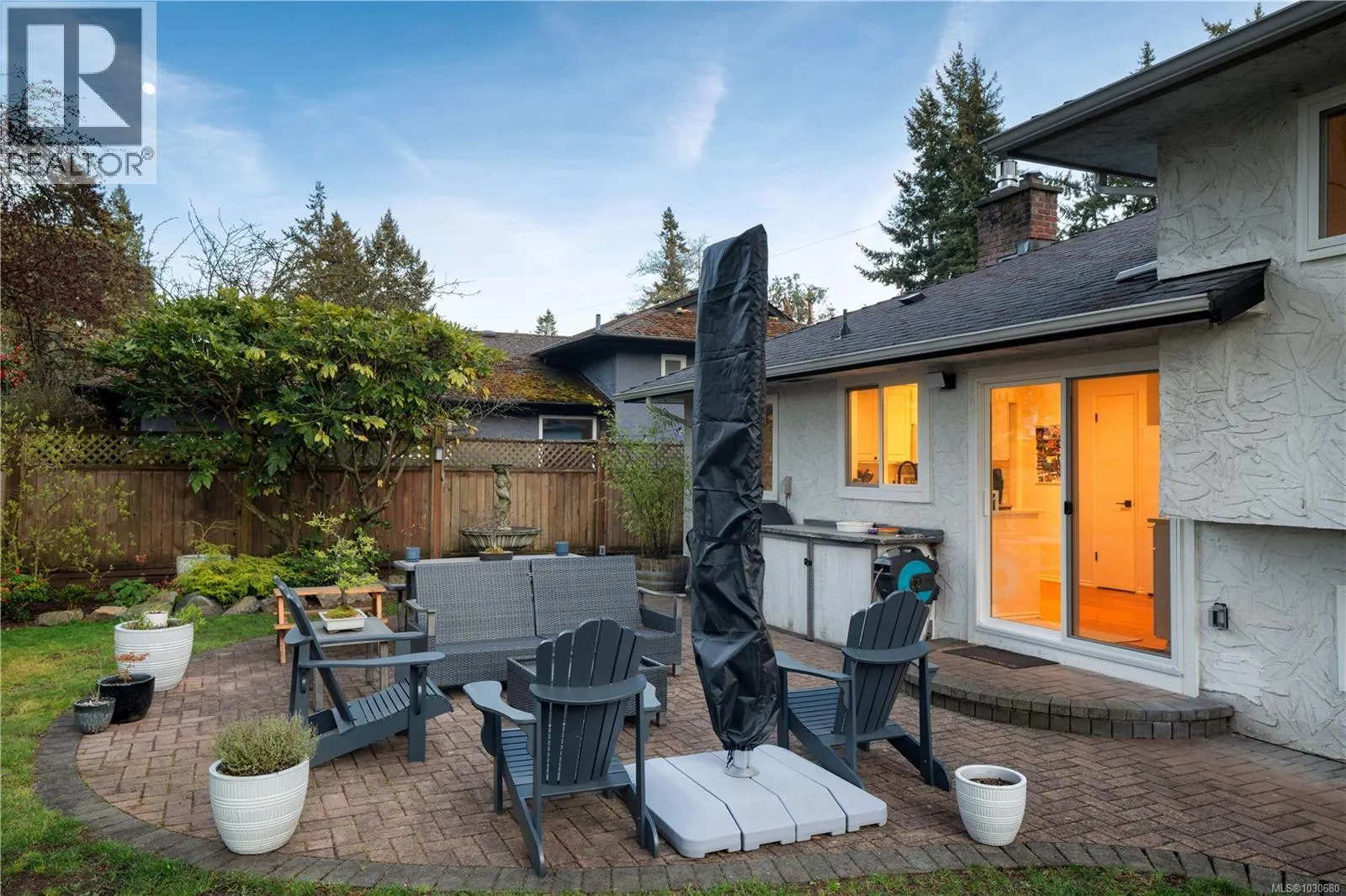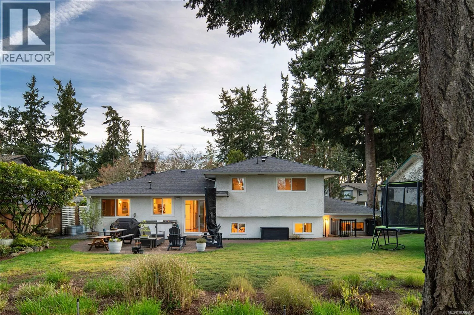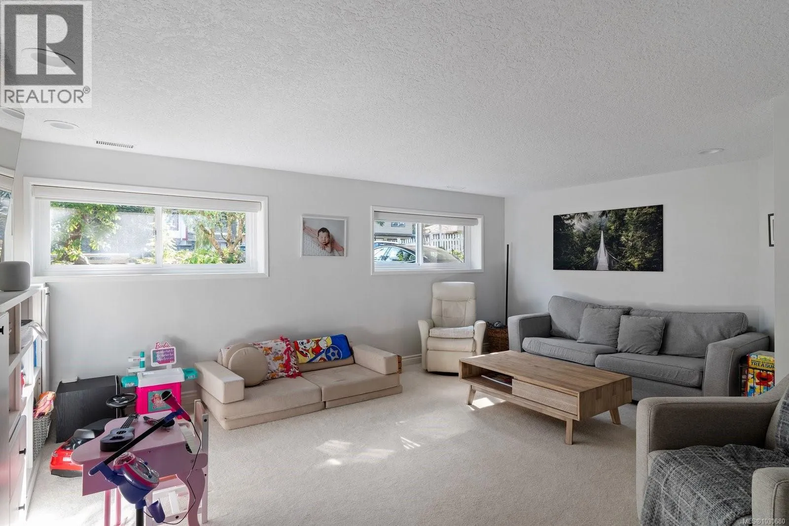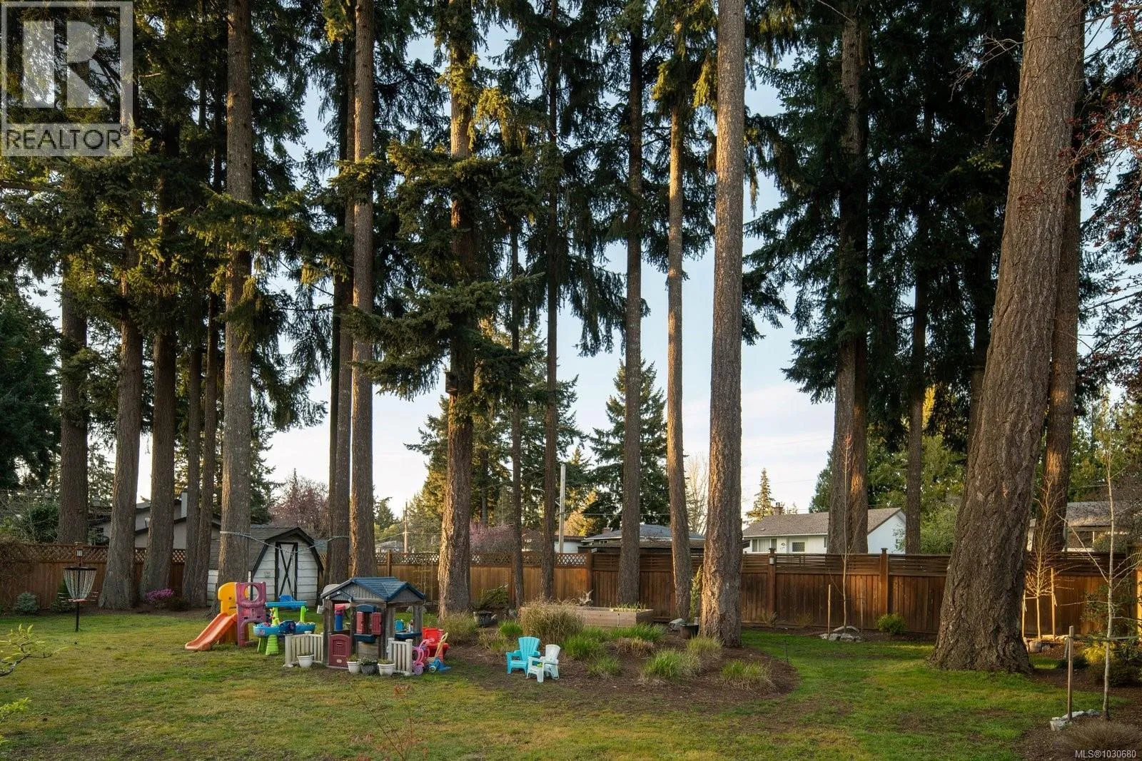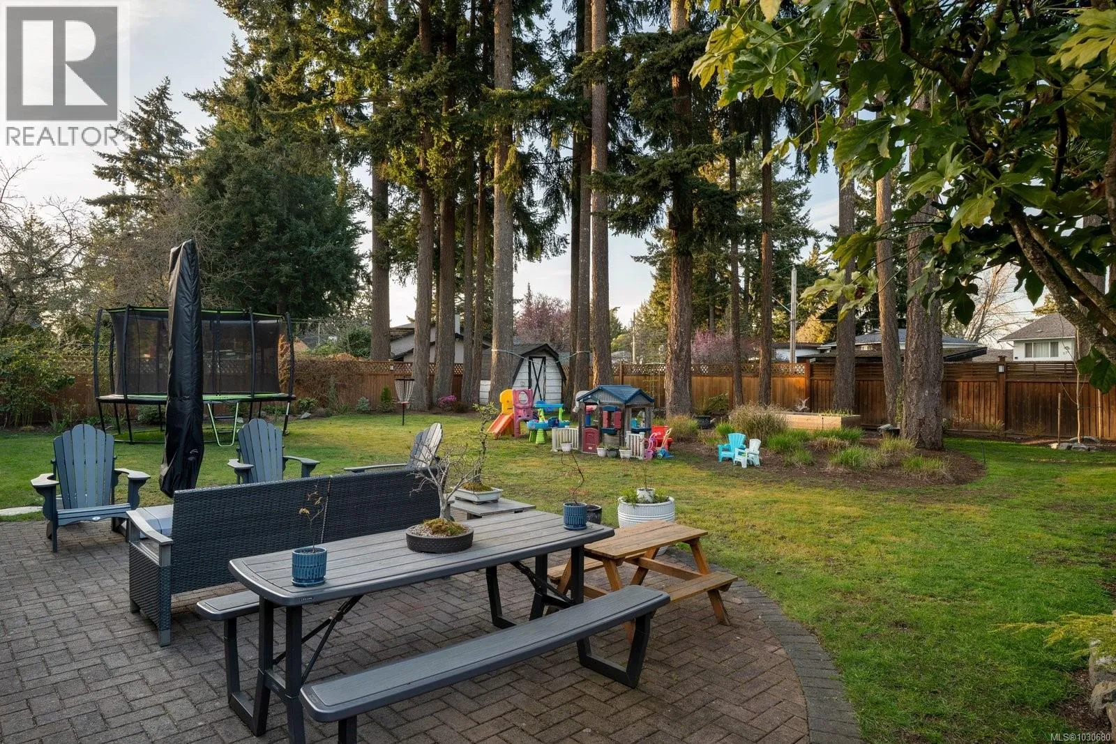 Nestled on a quiet cul-de-sac, this beautifully updated home offers exceptional privacy framed by mature trees and a picturesque park-like backyard. Showcasing a functional layout with warm hardwood floors throughout the main level, a cozy gas fireplace and a large bay window that fills the space with natural light. The kitchen is both stylish and inviting, flowing seamlessly to an expansive patio thatâs perfect for entertaining or simply enjoying the peaceful surroundings. The meticulously maintained yard is a true highlight featuring a lush lawn, mature plants & landscape lighting throughout which creates a private outdoor retreat. Upstairs youâll find three well-proportioned bedrooms including a comfortable primary with ensuite along with a full bathroom. The home has been lovingly updated with new carpet and refreshed bathrooms combining comfort with modern touches. The lower level offers excellent versatility with a media room, full bathroom, updated laundry area and separate entry that adds flexibility. An oversized crawlspace and attached garage provide abundant storage and practicality. Located just minutes from Westshore Town Centre, Belmont Market, parks, schools and outdoor attractions like Royal Roads, Esquimalt Lagoon and the Galloping Goose Trail, this home blends tranquility with easy access to everyday amenities and downtown Victoria which is only 30 minutes away. (id:27476)