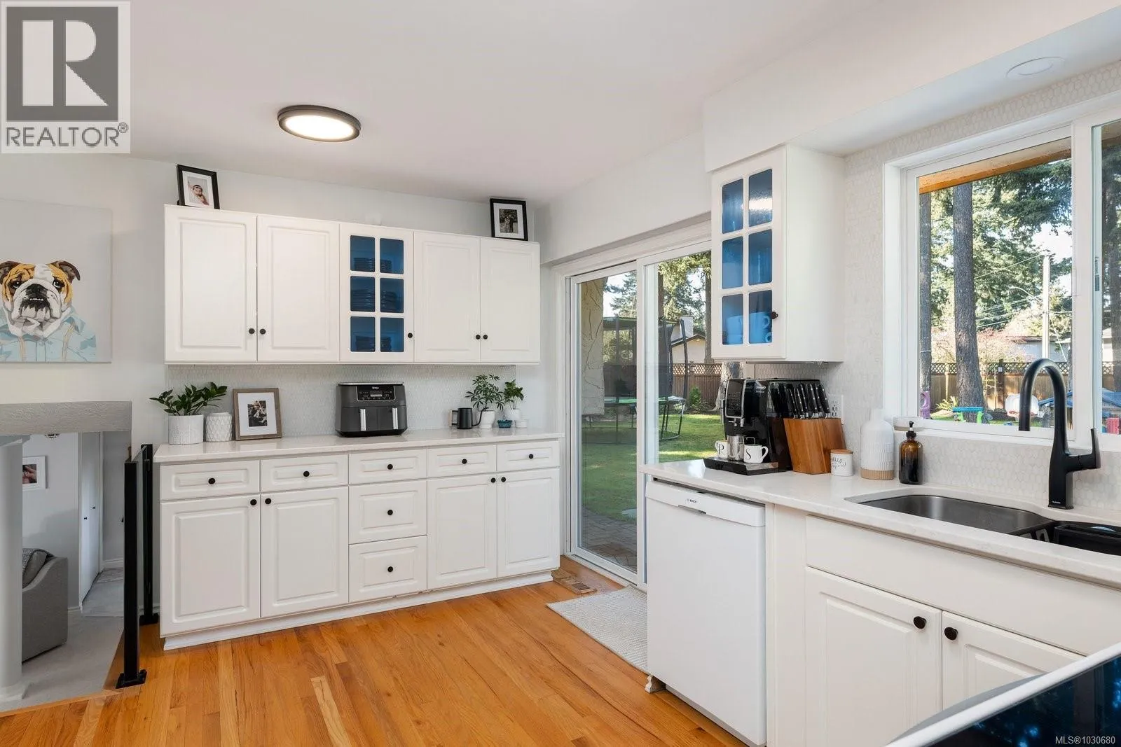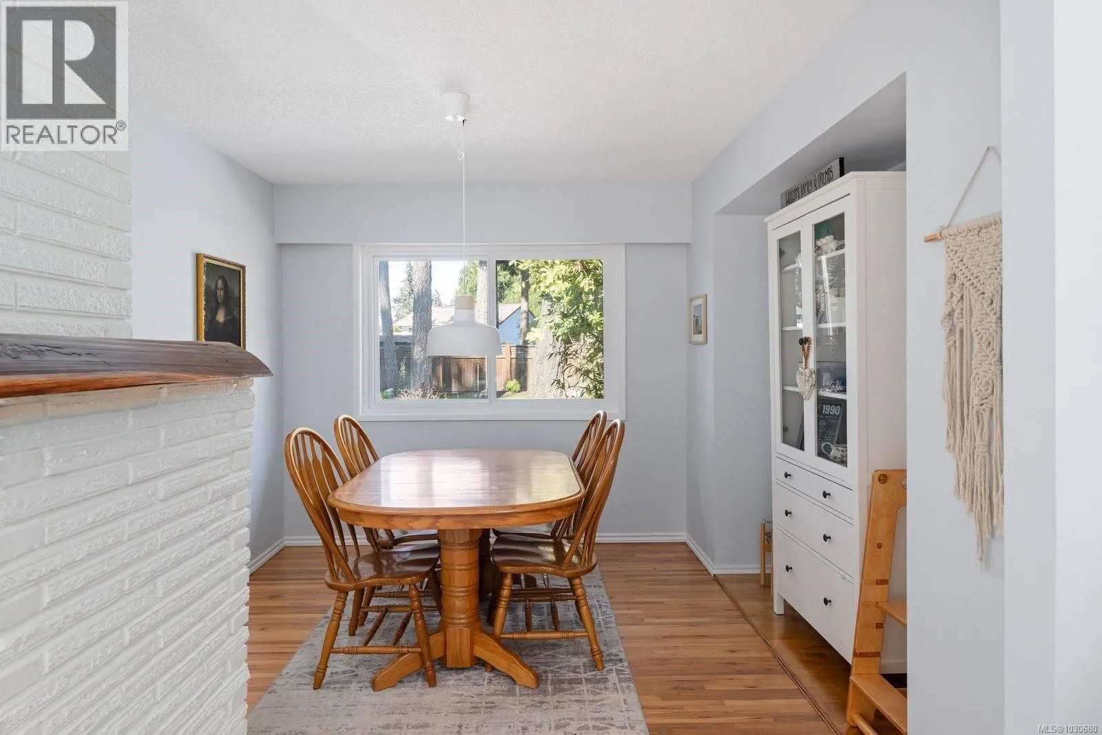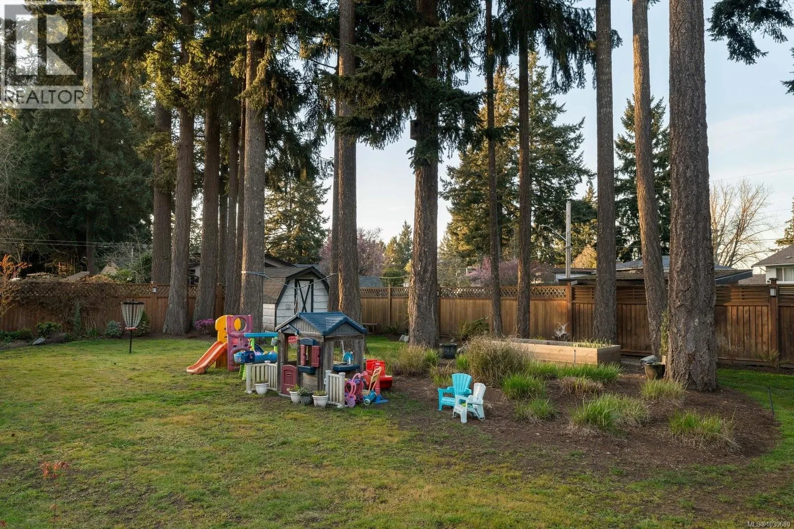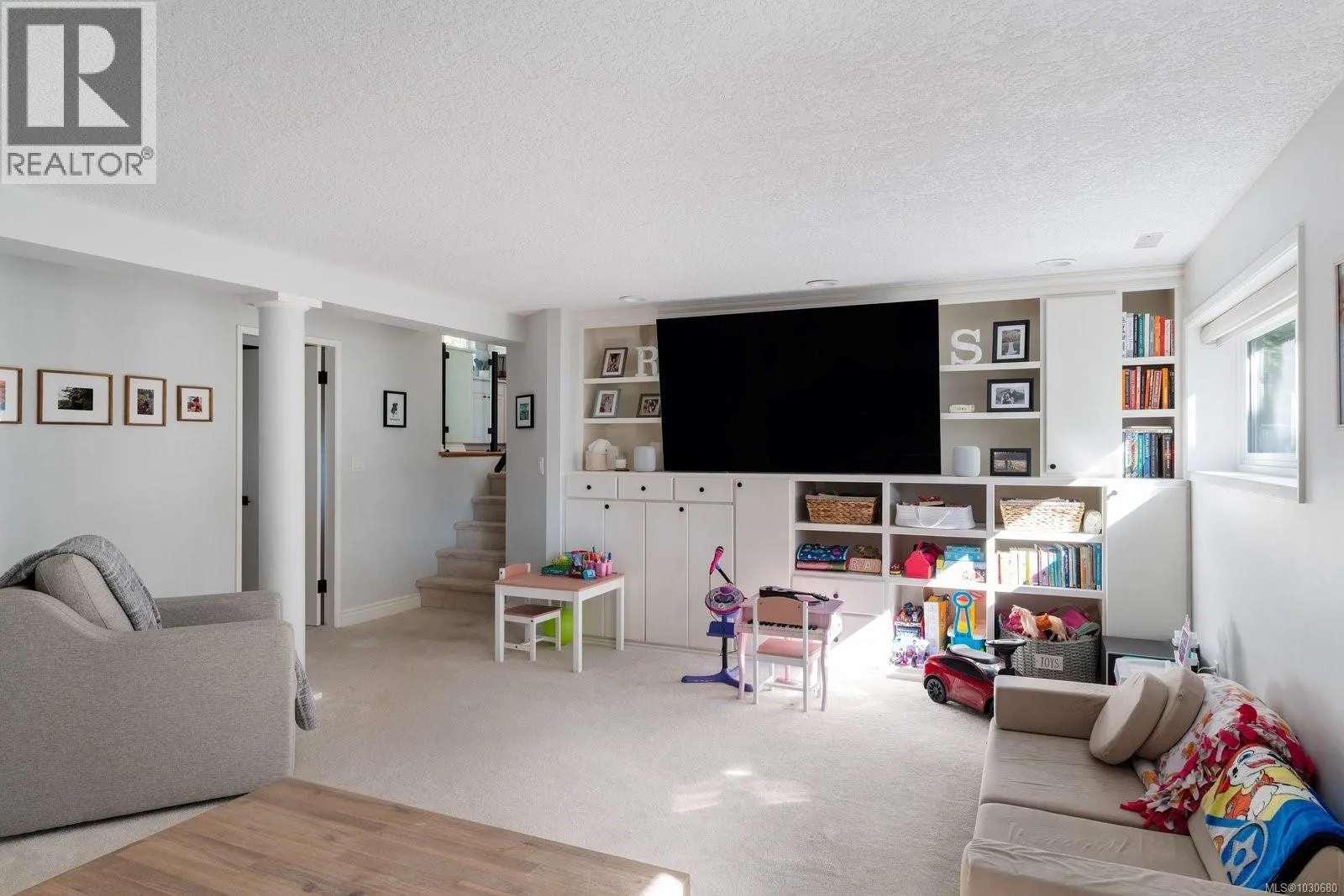Nestled on a quiet cul-de-sac, this beautifully updated home offers exceptional privacy framed by mature trees and a picturesque park-like backyard. Showcasing a functional layout with warm hardwood floors throughout the main level, a cozy gas fireplace and a large bay window that fills the space with natural light. The kitchen is both stylish and inviting, flowing seamlessly to an expansive patio thatâs perfect for entertaining or simply enjoying the peaceful surroundings. The meticulously maintained yard is a true highlight featuring a lush lawn, mature plants & landscape lighting throughout which creates a private outdoor retreat. Upstairs youâll find three well-proportioned bedrooms including a comfortable primary with ensuite along with a full bathroom. The home has been lovingly updated with new carpet and refreshed bathrooms combining comfort with modern touches. The lower level offers excellent versatility with a media room, full bathroom, updated laundry area and separate entry that adds flexibility. An oversized crawlspace and attached garage provide abundant storage and practicality. Located just minutes from Westshore Town Centre, Belmont Market, parks, schools and outdoor attractions like Royal Roads, Esquimalt Lagoon and the Galloping Goose Trail, this home blends tranquility with easy access to everyday amenities and downtown Victoria which is only 30 minutes away. (id:27476)