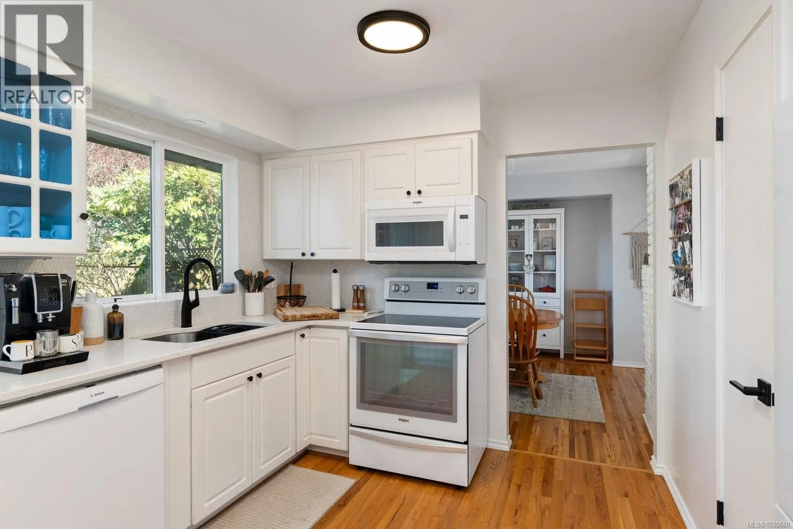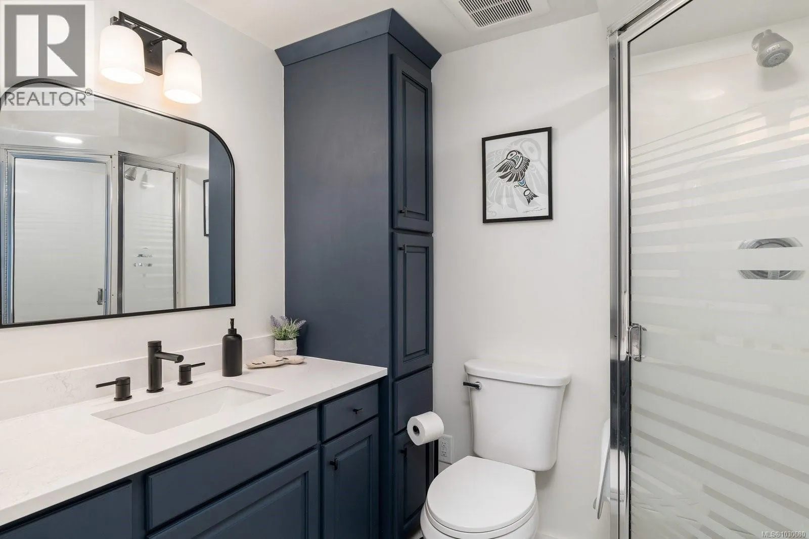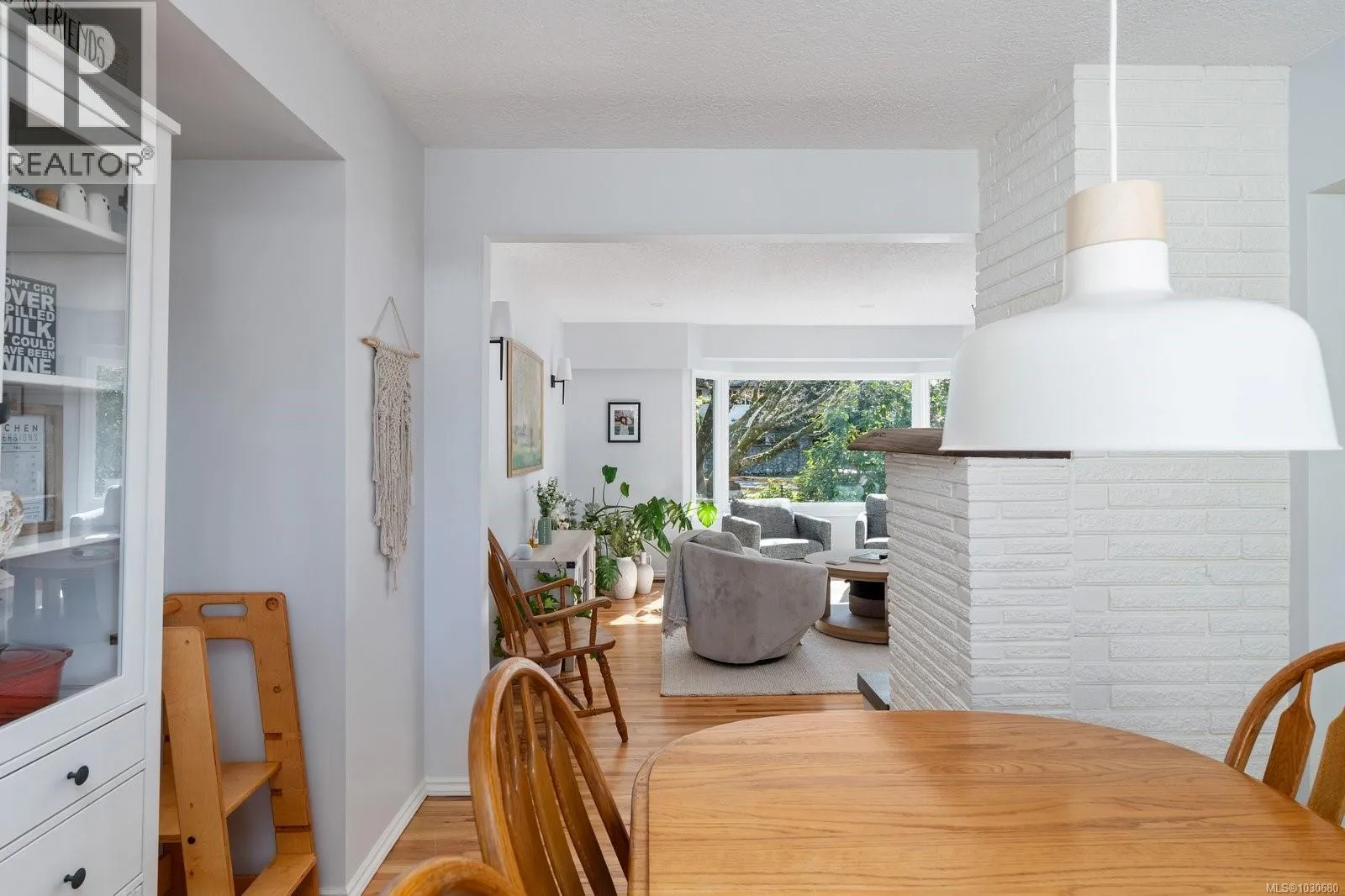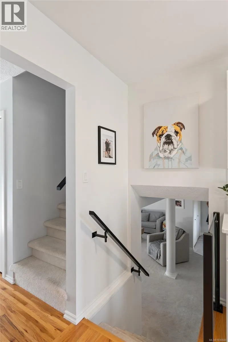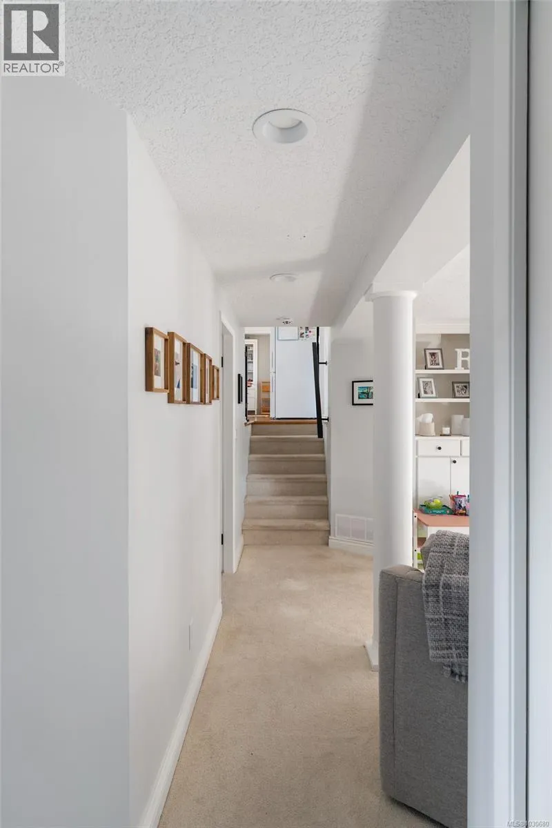 Nestled on a quiet cul-de-sac, this beautifully updated home offers exceptional privacy framed by mature trees and a picturesque park-like backyard. Showcasing a functional layout with warm hardwood floors throughout the main level, a cozy gas fireplace and a large bay window that fills the space with natural light. The kitchen is both stylish and inviting, flowing seamlessly to an expansive patio thatâs perfect for entertaining or simply enjoying the peaceful surroundings. The meticulously maintained yard is a true highlight featuring a lush lawn, mature plants & landscape lighting throughout which creates a private outdoor retreat. Upstairs youâll find three well-proportioned bedrooms including a comfortable primary with ensuite along with a full bathroom. The home has been lovingly updated with new carpet and refreshed bathrooms combining comfort with modern touches. The lower level offers excellent versatility with a media room, full bathroom, updated laundry area and separate entry that adds flexibility. An oversized crawlspace and attached garage provide abundant storage and practicality. Located just minutes from Westshore Town Centre, Belmont Market, parks, schools and outdoor attractions like Royal Roads, Esquimalt Lagoon and the Galloping Goose Trail, this home blends tranquility with easy access to everyday amenities and downtown Victoria which is only 30 minutes away. (id:27476)