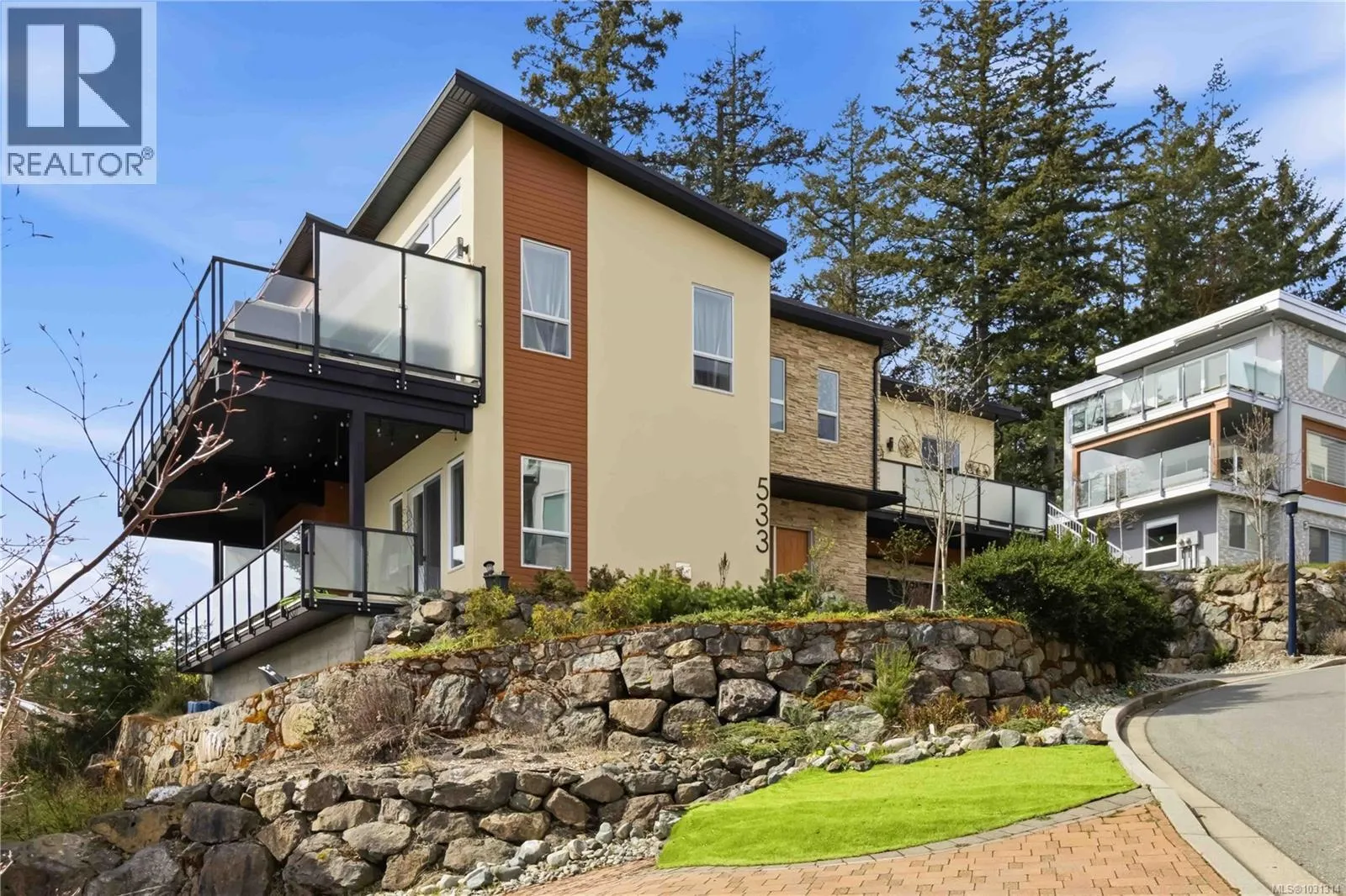 PHOTOS will never do this view justice-A MUST SEE! *PANORAMIC OCEAN, CITY & OLYMPIC MTN VIEWS are perfectly framed by EXPANSIVE floor-to-ceiling windows & oversized double sliding doors...seamlessly connecting the interior of this GORGEOUS 2020 home to the outdoors & the views it's surrounded by. Lovely combination of covered & open deck space! Flexible floorplan... 3BD on main w/lower level Games Room which would make an excellent alternate Primary BD w/ensuite (no closet). PLUS a lovely legal 1BD ocean view SUITE complete w/it's OWN: private deck, off street parking, sep hydro meter, ductless heat pump! TONS OF NATURAL LIGHT THROUGHOUT to showcase the GORGEOUS FINISHINGS. VAULTED ceilings, HW floors on main & stairs, Forced air &Heat Pump, HW On-Demand. QUIET PRIVATE LOCATION-Low maintenance yard. ENJOY walking trails throughout Royal Bay that lead to the Oceanfront,Shopping Centre,Latoria Creek Trail & more! Schools/bus within walking distance. All SqFt approx -buyer verify (id:27476)