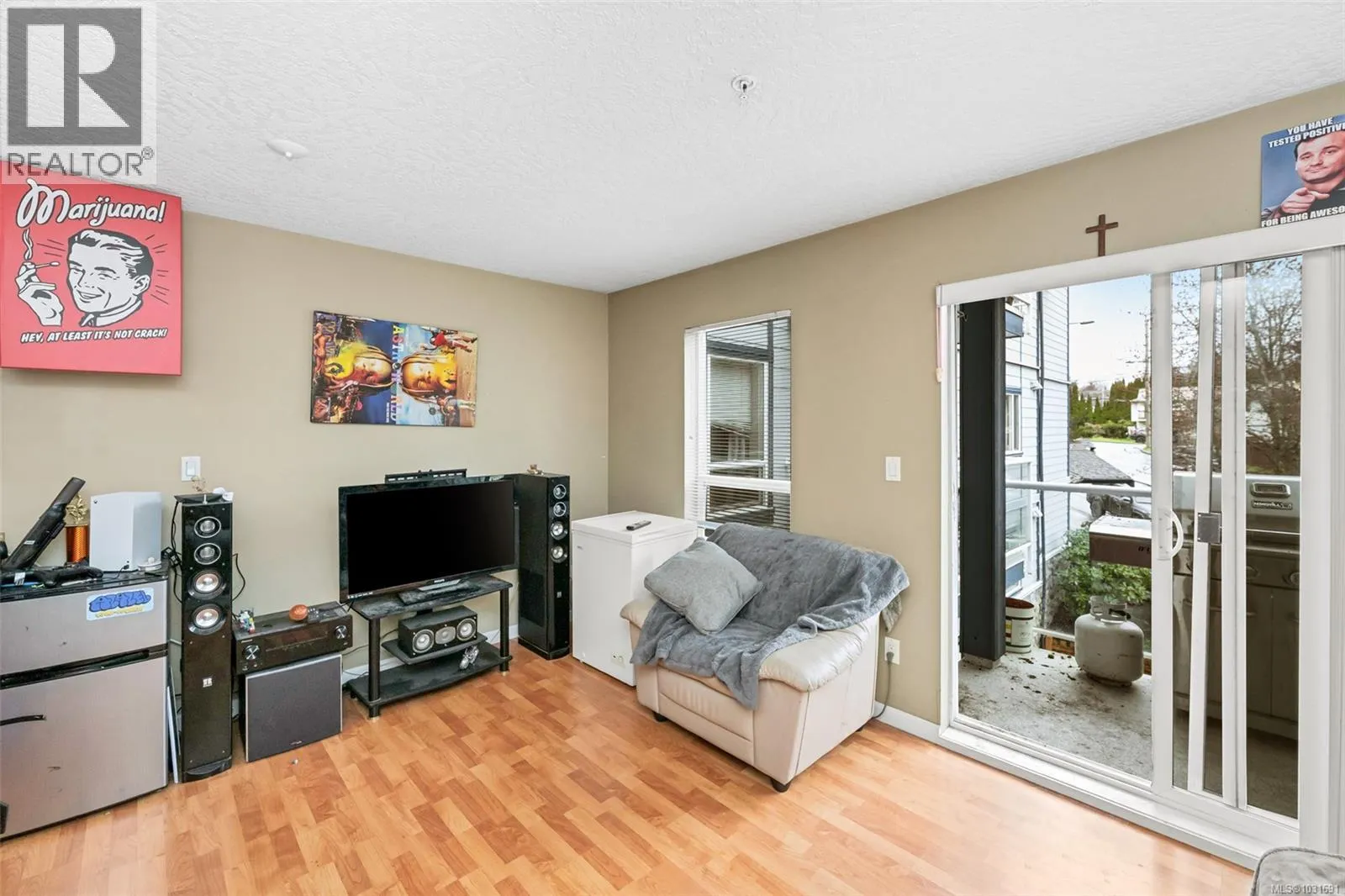 Welcome to this bright and inviting 2 bedroom, 1 bath condo in the heart of Colwood. Ideally located for an active lifestyle, youâre just minutes from shopping, hiking trails, beaches, and easy routes into Victoria or up island. The northwest exposure keeps the home cool in summer while still offering plenty of natural light. The appealing layout features an open-concept modern kitchen with stainless steel appliances and an island with bar seating, flowing into the living room with direct access to the balconyâperfect for summer BBQs. Enjoy in-suite laundry, generous in-unit storage, and a well-run strata with no age restrictions, rentals allowed, and one dog (up to 15 kg) or one cat permitted. This home includes secure covered parking and a separate storage locker. (id:27476)