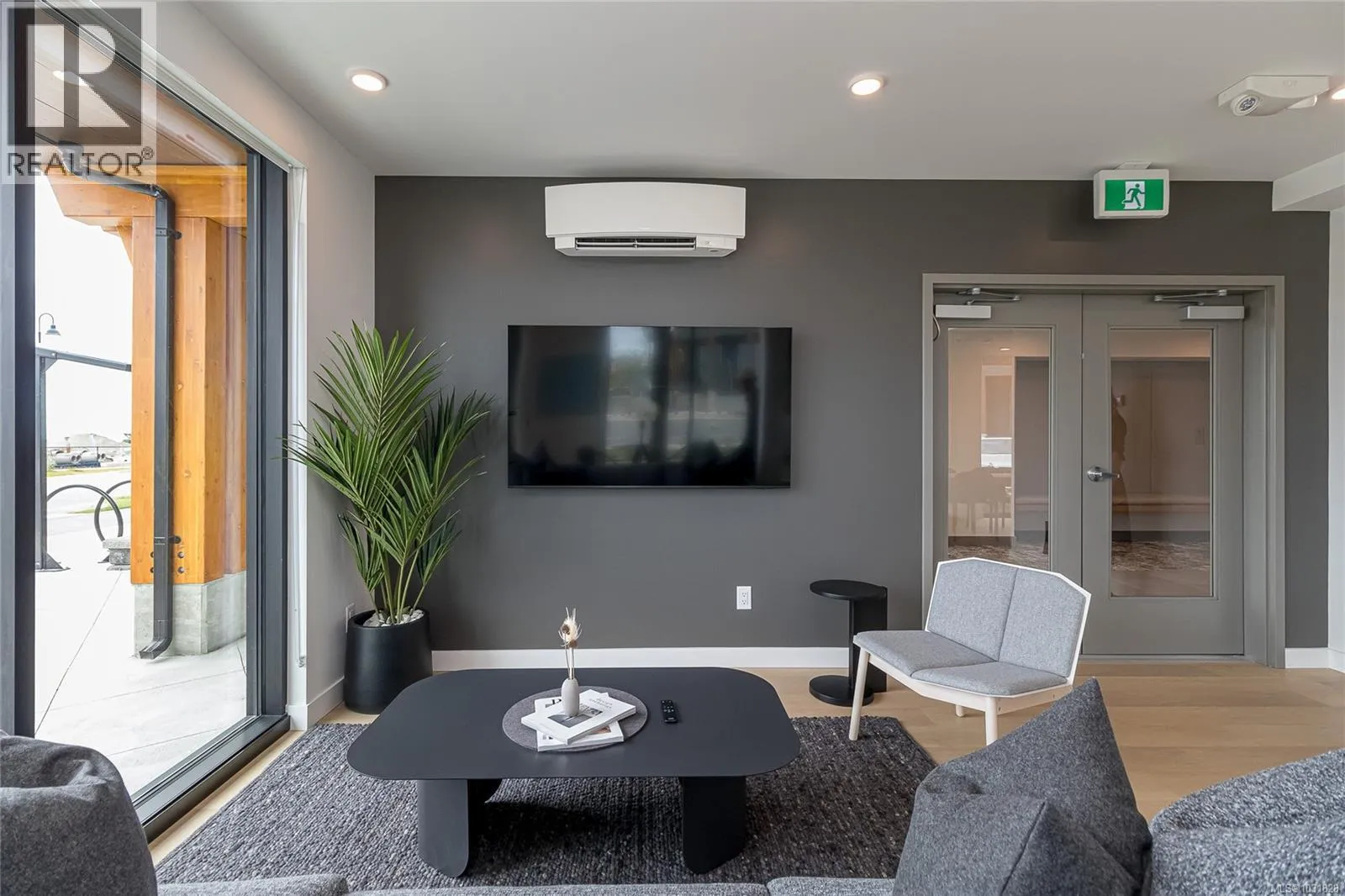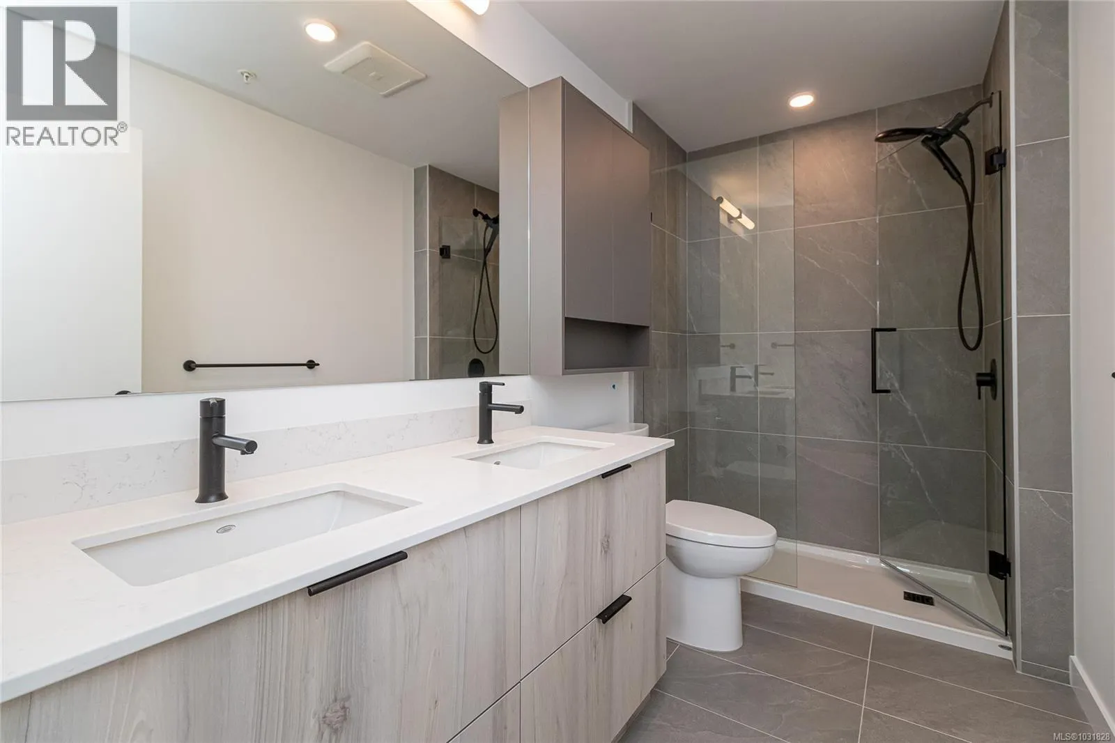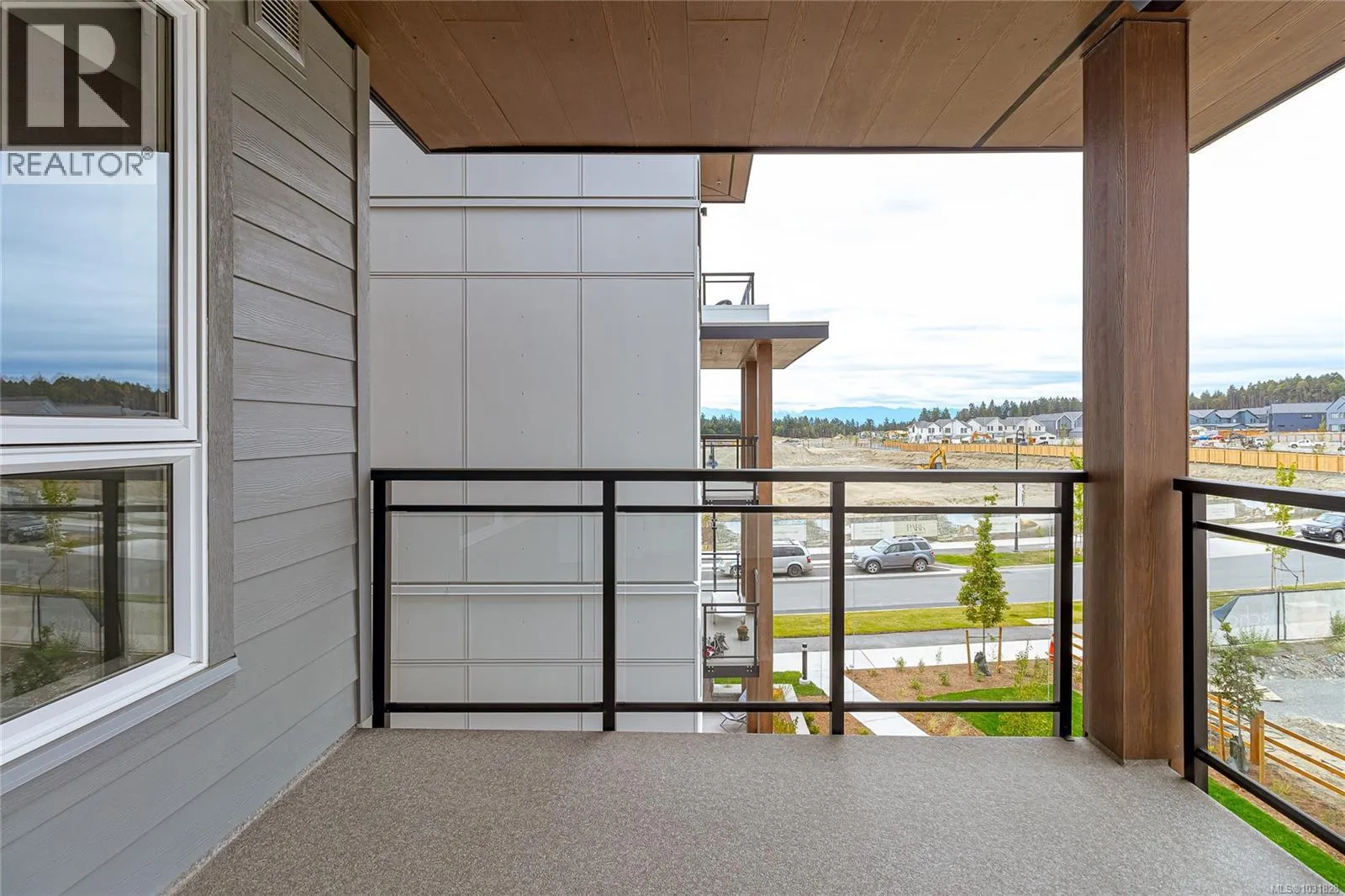 Welcome to The Eliza at Royal Bay! This spacious 2 bed, 2 bath condo offers a bright, open-concept layout with high ceilings and large windows. The modern kitchen features a large island, quartz countertops, and high-end appliancesâperfect for entertaining. The primary bedroom includes a well-appointed ensuite, with a second bedroom ideal for guests or home office. This unit Includes 2 parking stalls with EV charging. Building amenities feature a fitness centre, rooftop terrace, party room, and community garden plots. Located just steps to The Commons retail village with groceries, dining, and everyday amenities. The Eliza is surrounded by parks, green space, and extensive walking and biking trails. A fantastic opportunity to enjoy coastal community living in Royal Bay! (id:27476)